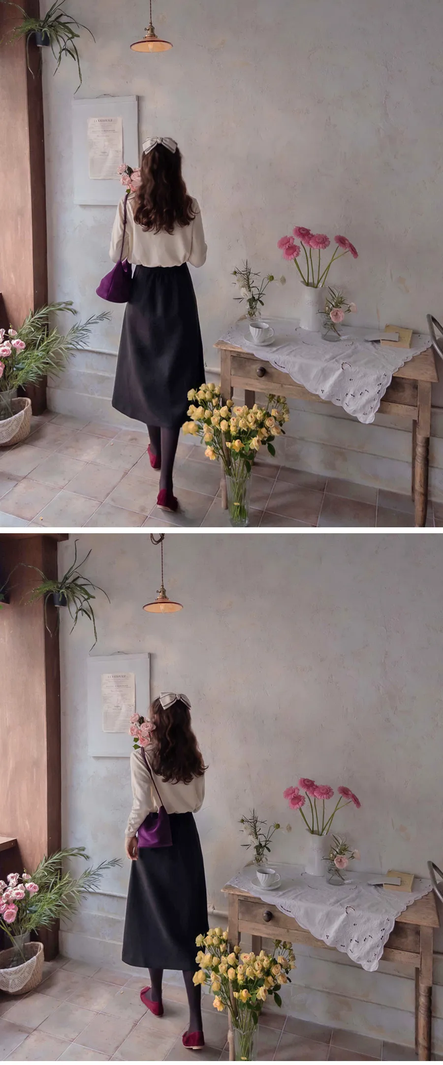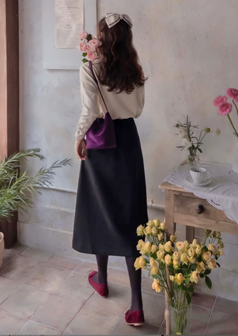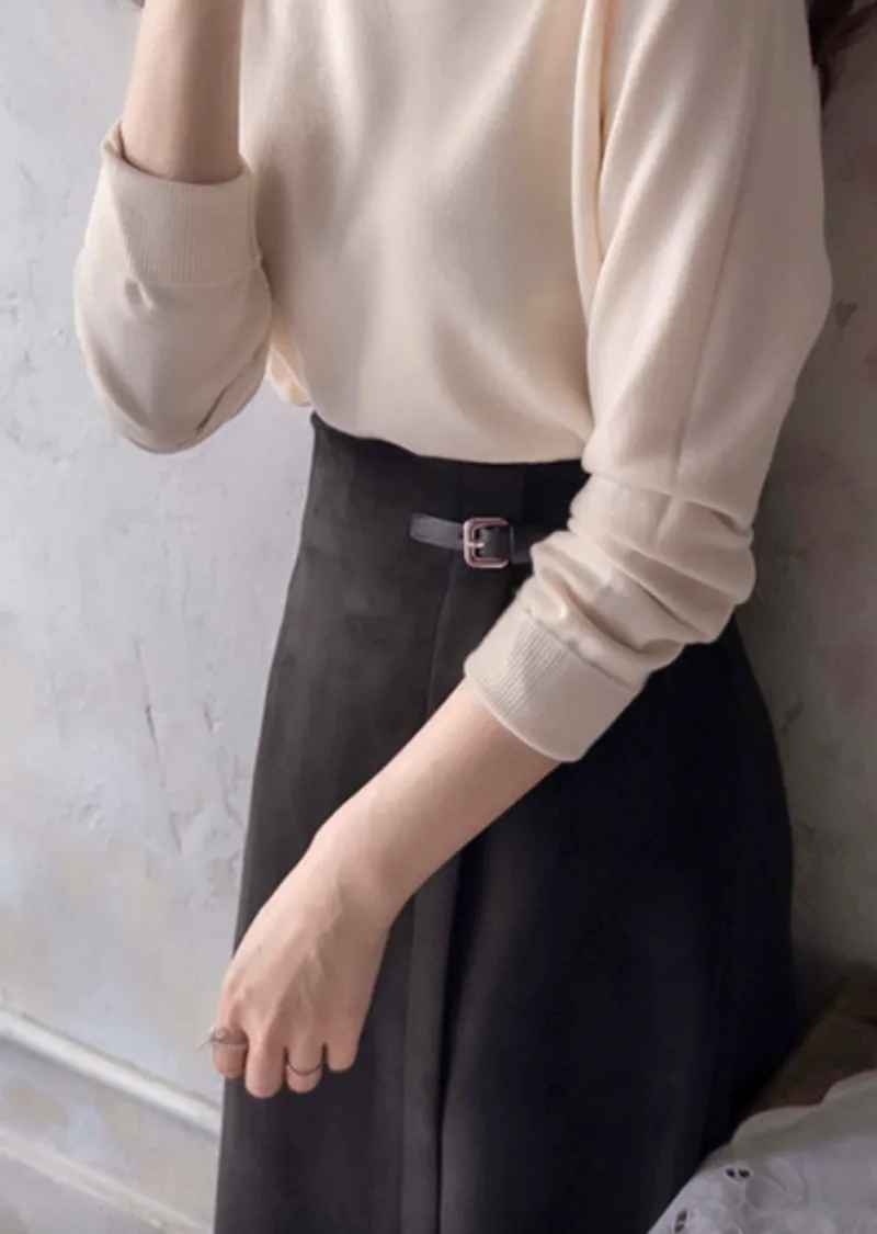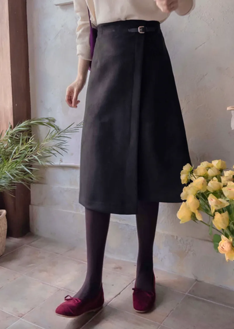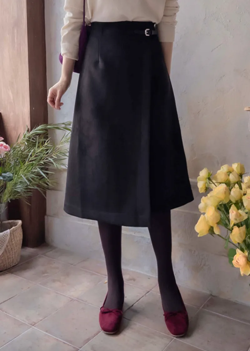 古典情調側釦裝飾線條剪裁麂皮中長裙
