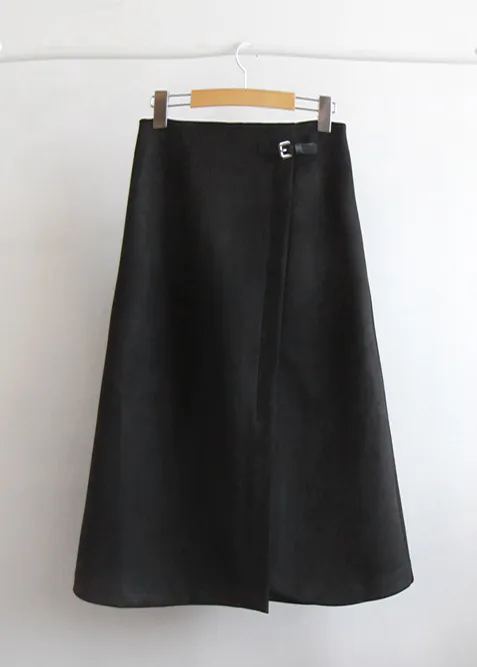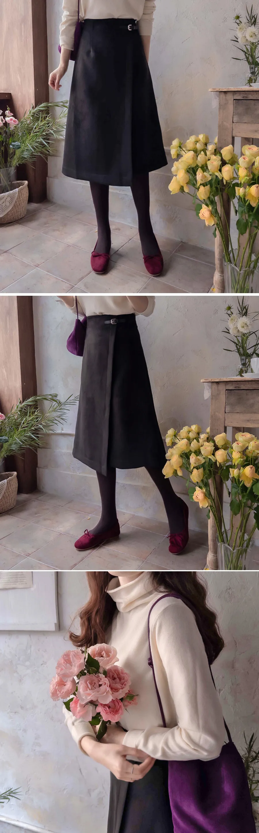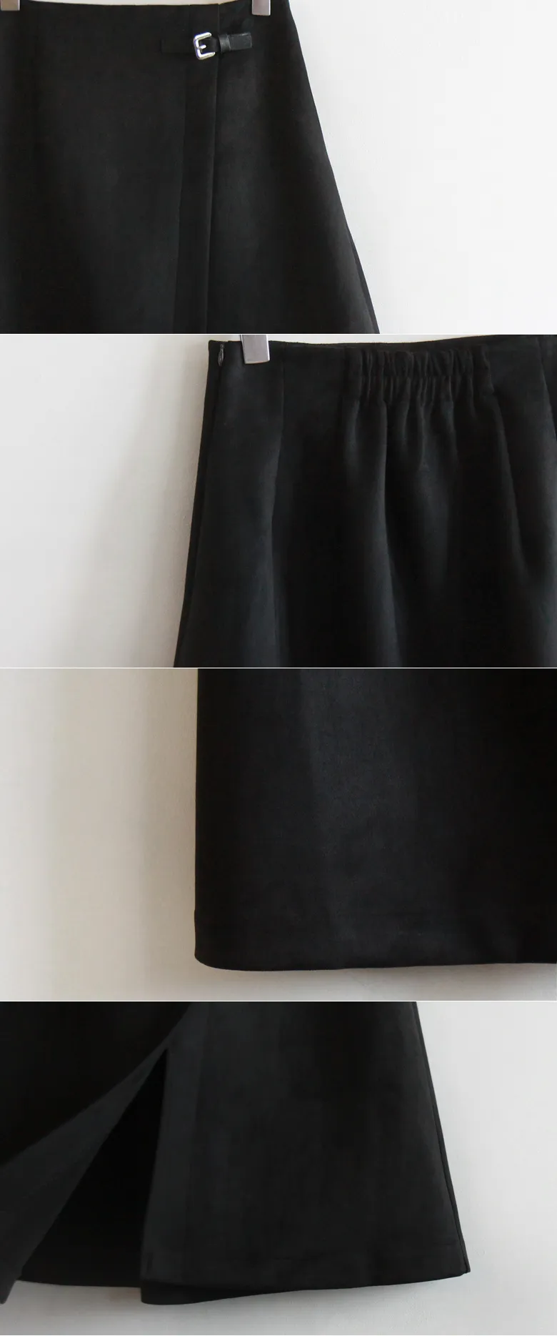 【腰後方部分帶子處理】【側邊拉鍊配置】【搭扣裝飾也很漂亮】【麂皮裙充滿古典情調♡】【這條裙子很有季節感,線條也很漂亮】【麂皮觸感柔軟面料] [推薦作為本季的優雅裙]