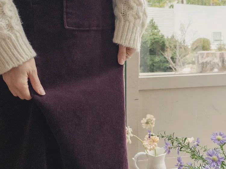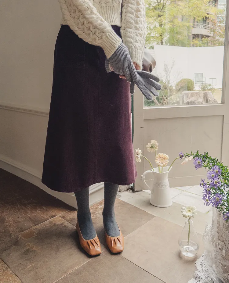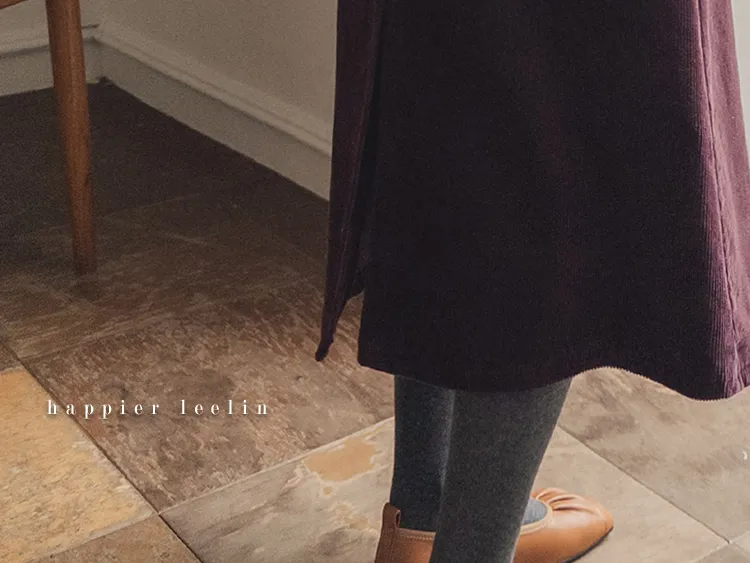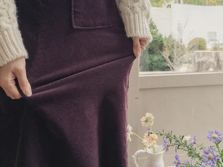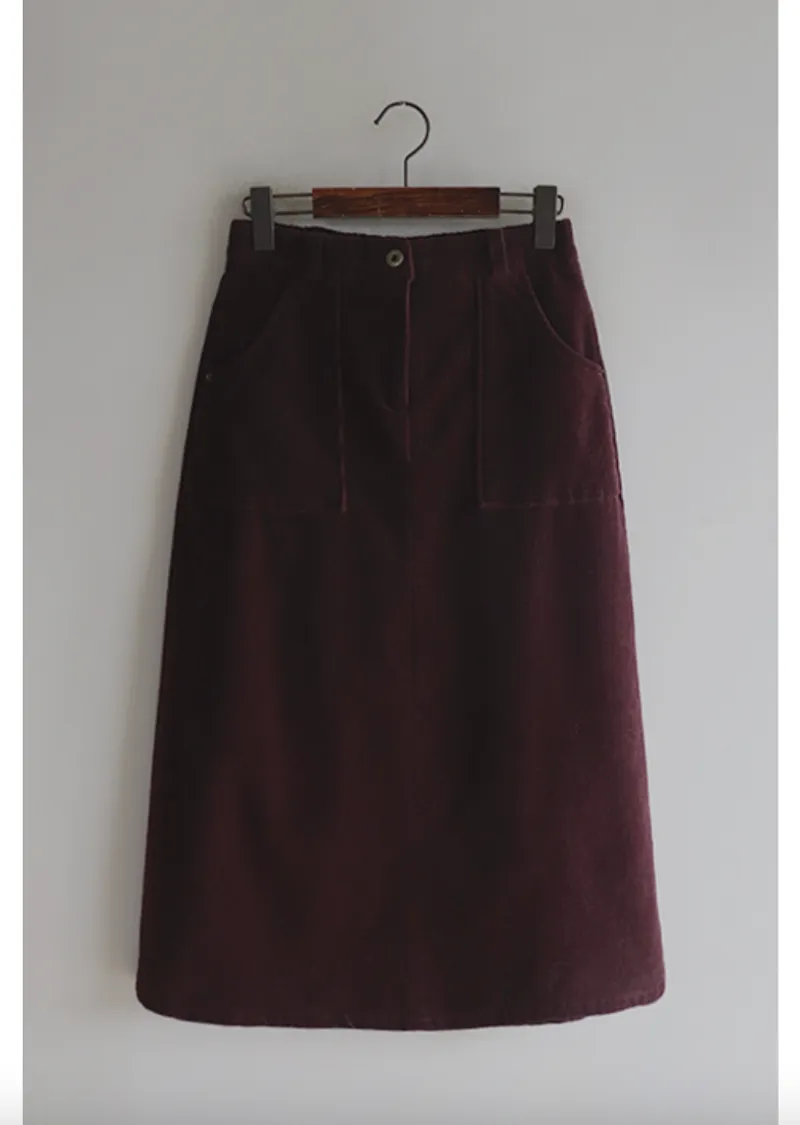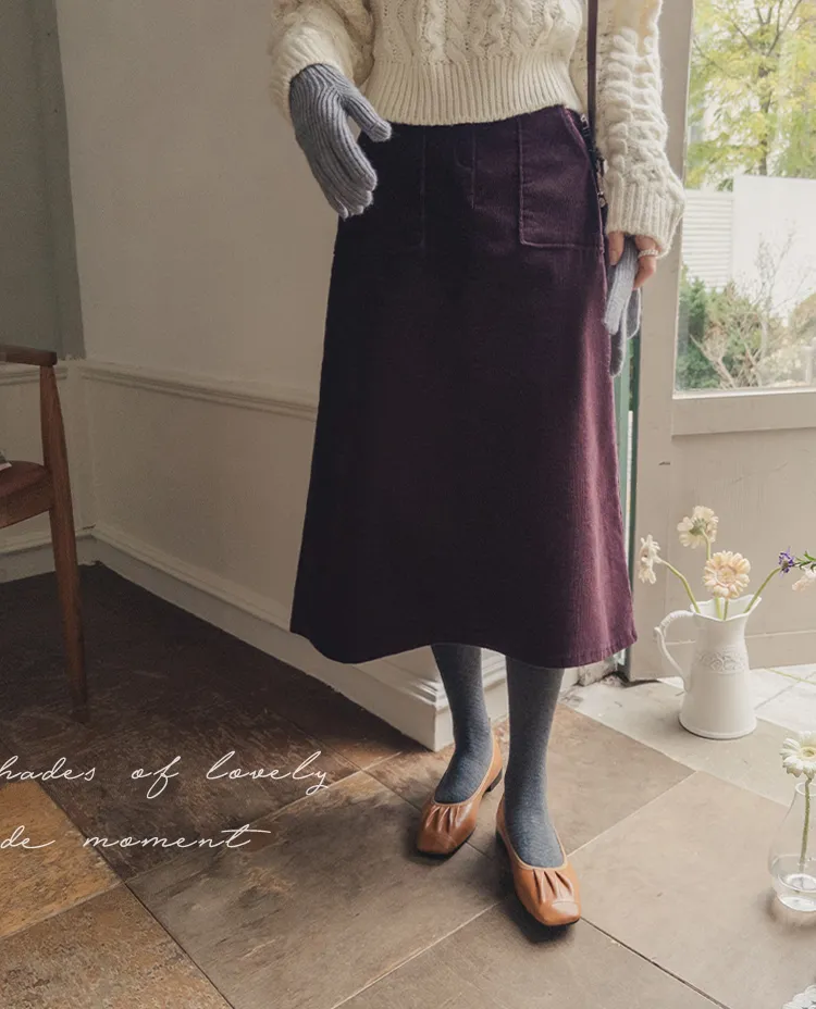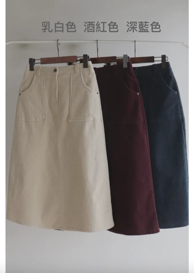 [燈芯絨內裡抓絨保暖裙,寒冷天氣不用擔心][A字版型遮住下半身線條!][開衩設計與後腰帶增加活動能力! ] [寬大的方形外袋,可存放物品♥]
