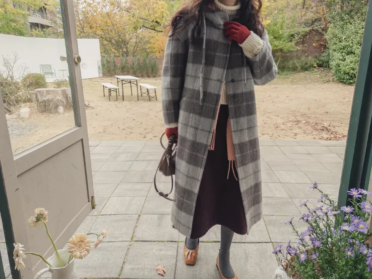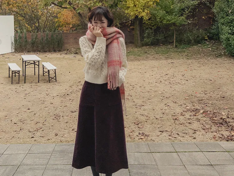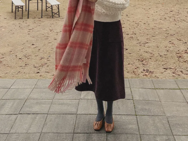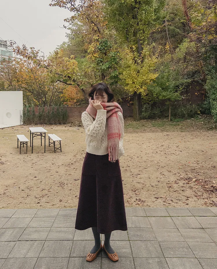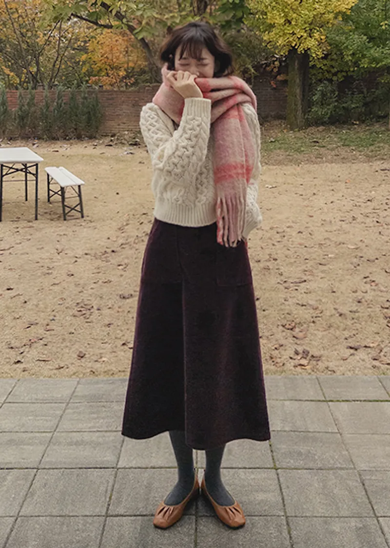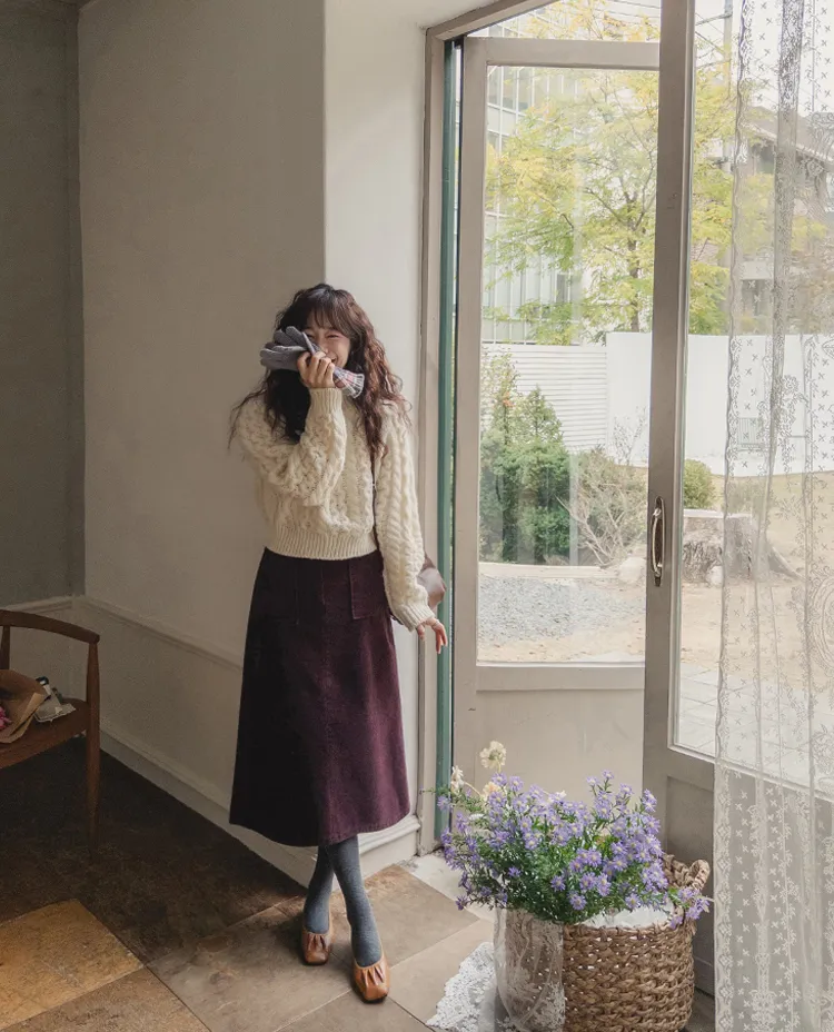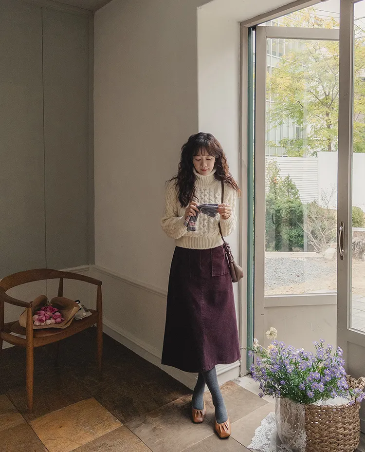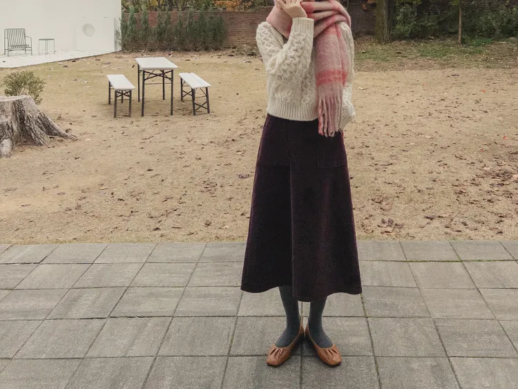 [燈芯絨內裡抓絨保暖裙,寒冷天氣不用擔心][A字版型遮住下半身線條!][開衩設計與後腰帶增加活動能力! ] [寬大的方形外袋,可存放物品♥]