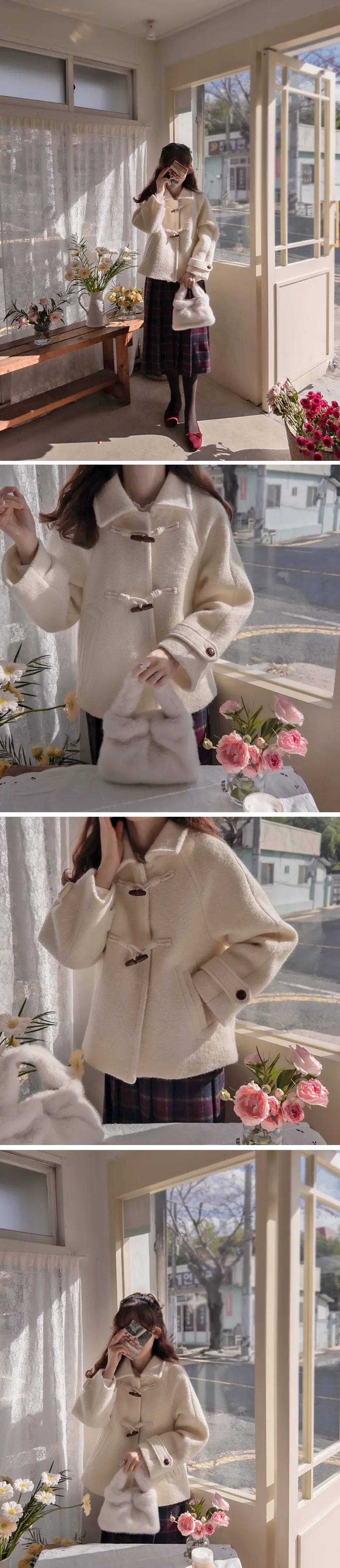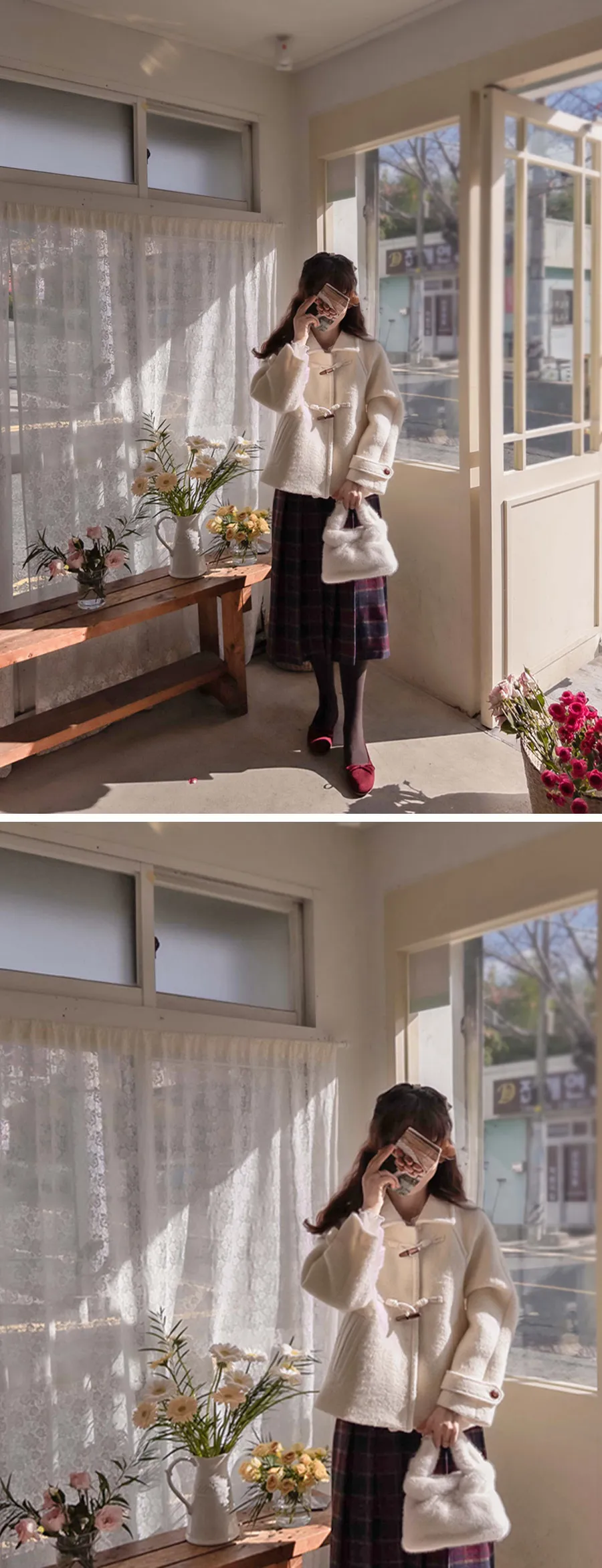 可愛鈕扣內襯毛絨溫暖麂皮外套