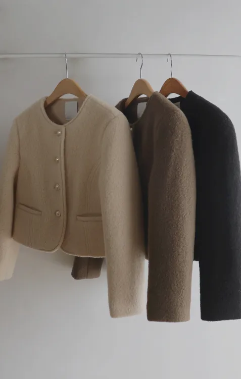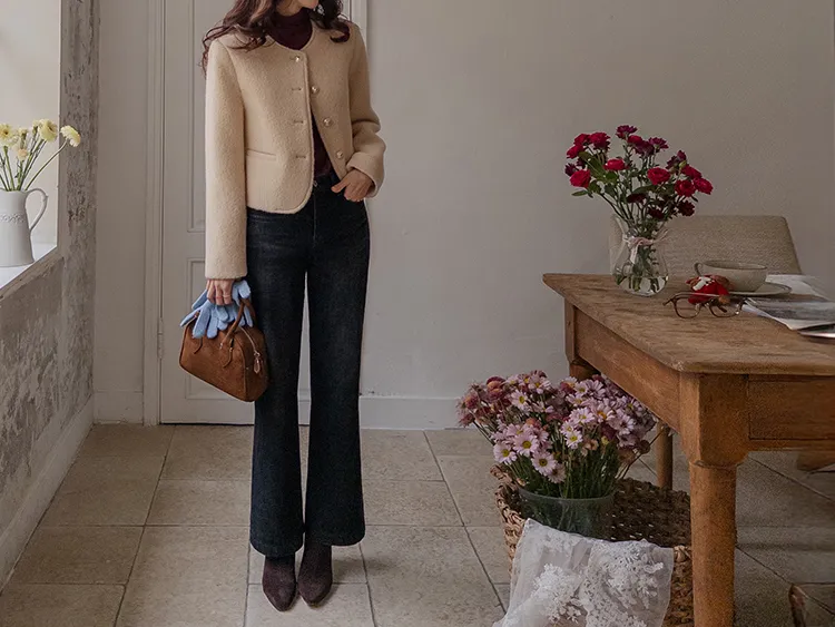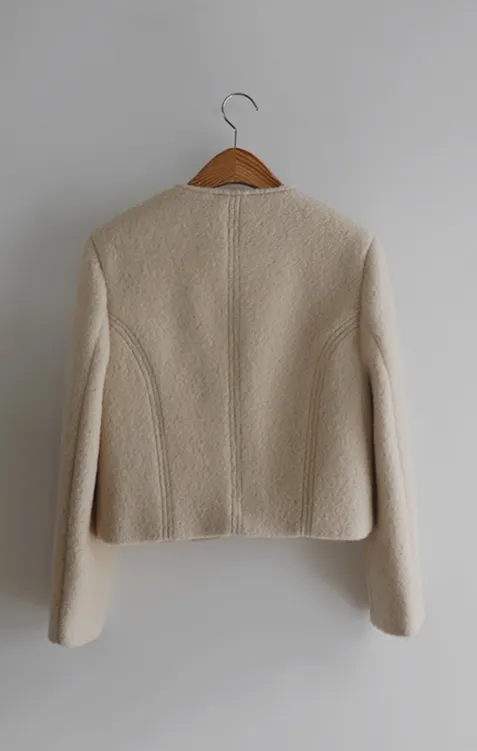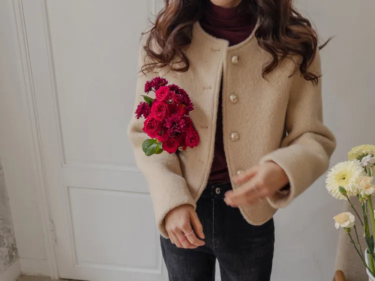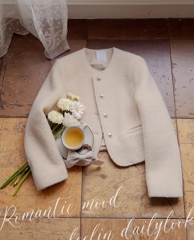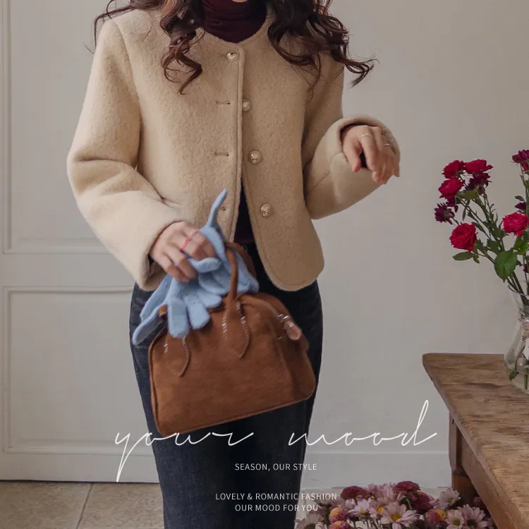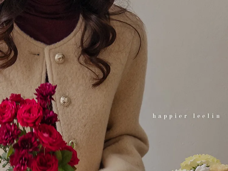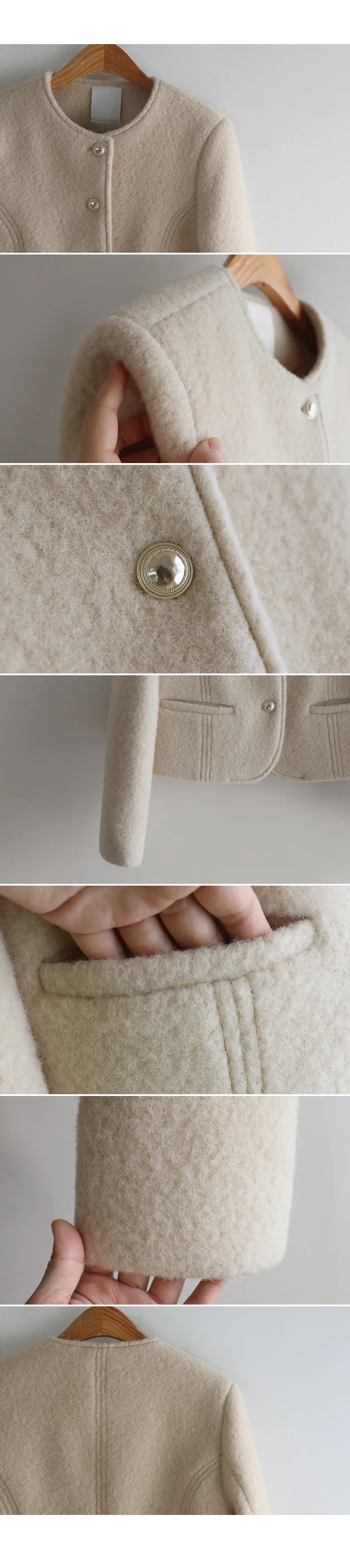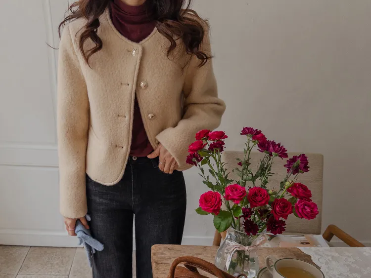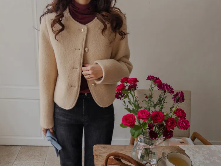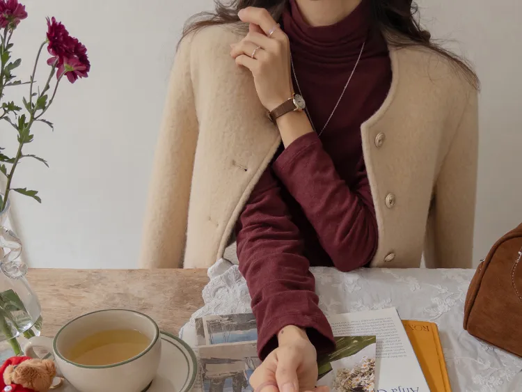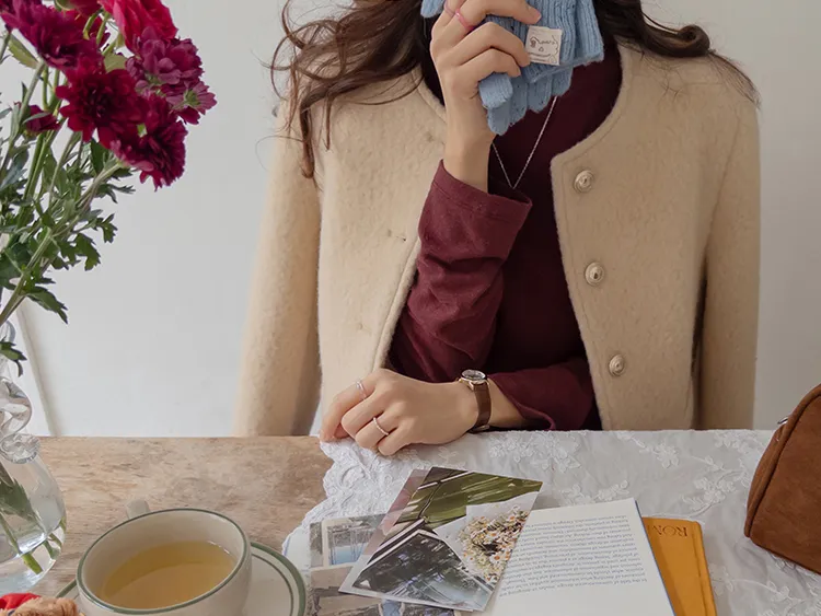 質感圓領縫線設計羊毛外套
