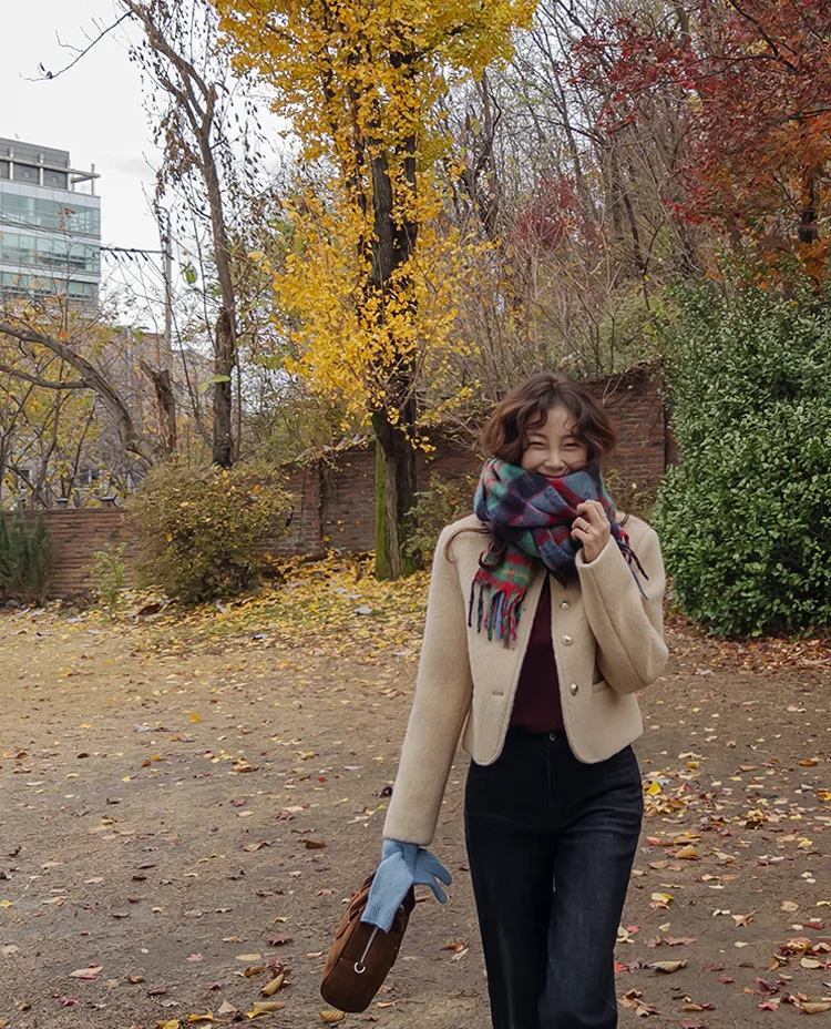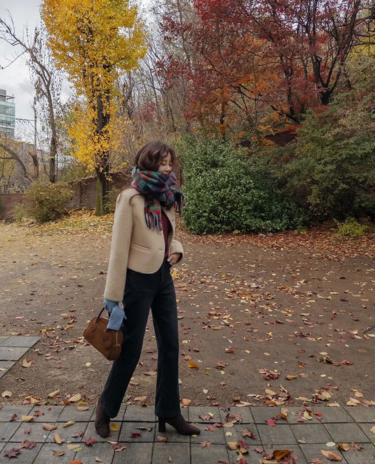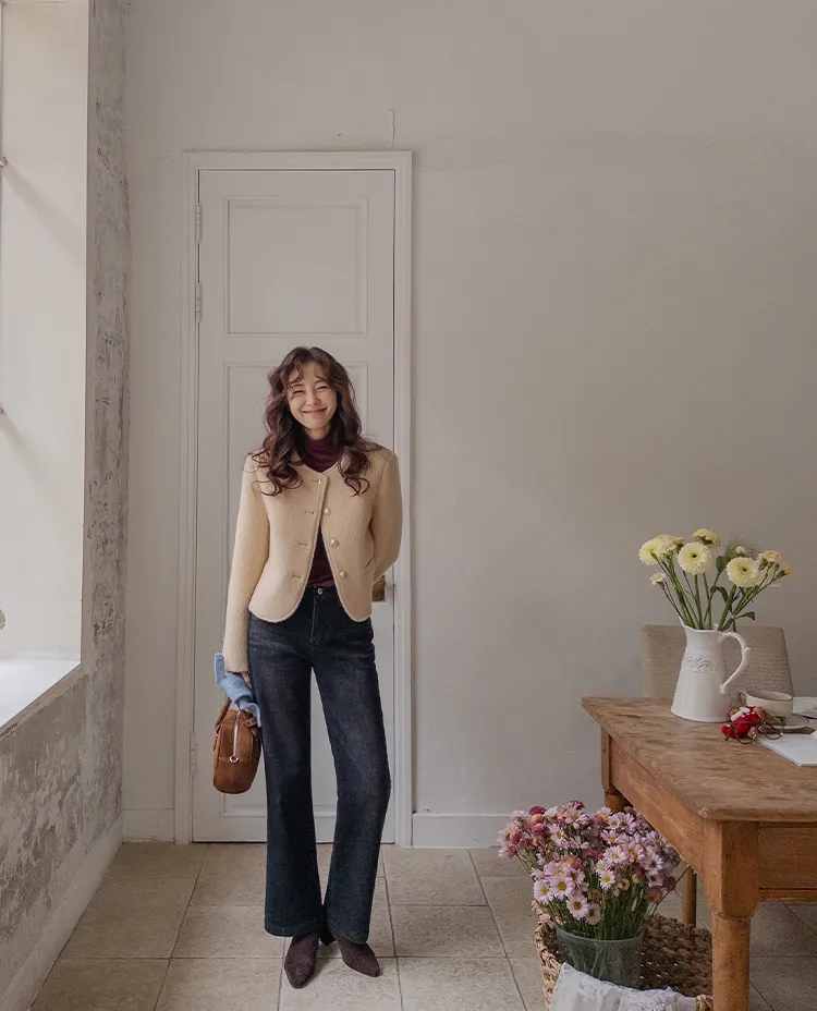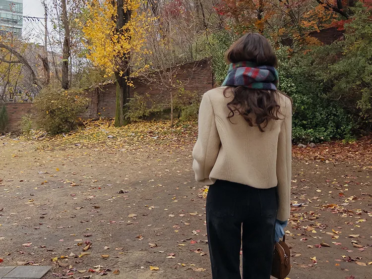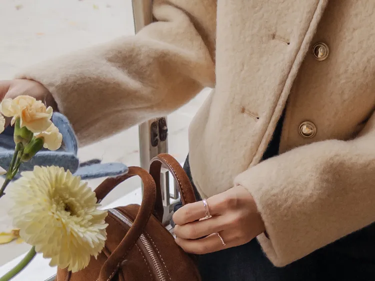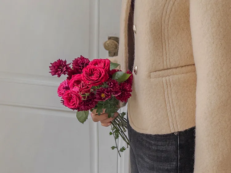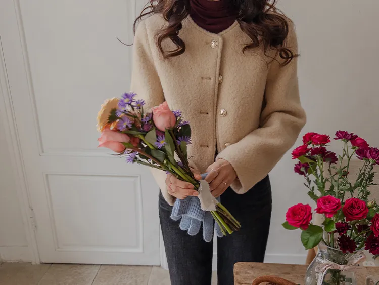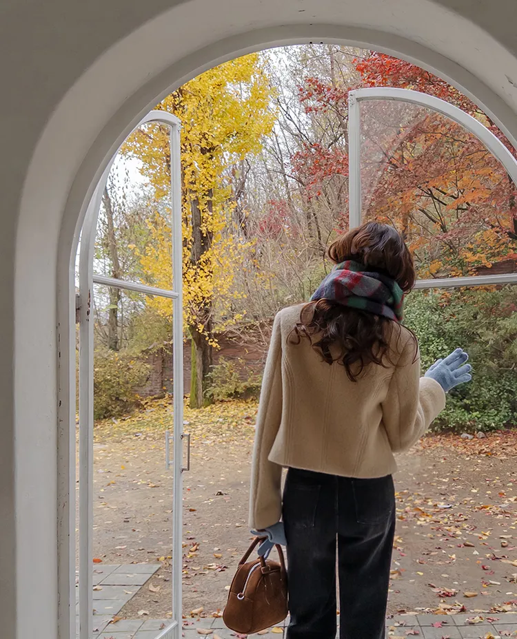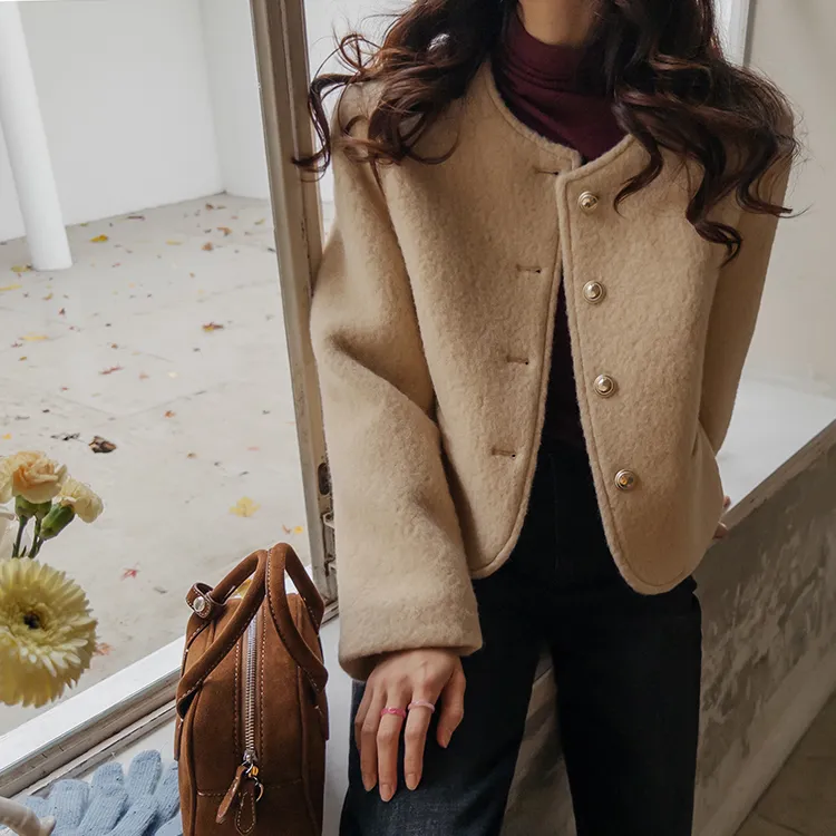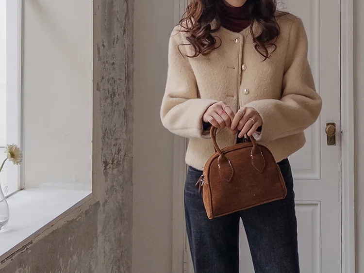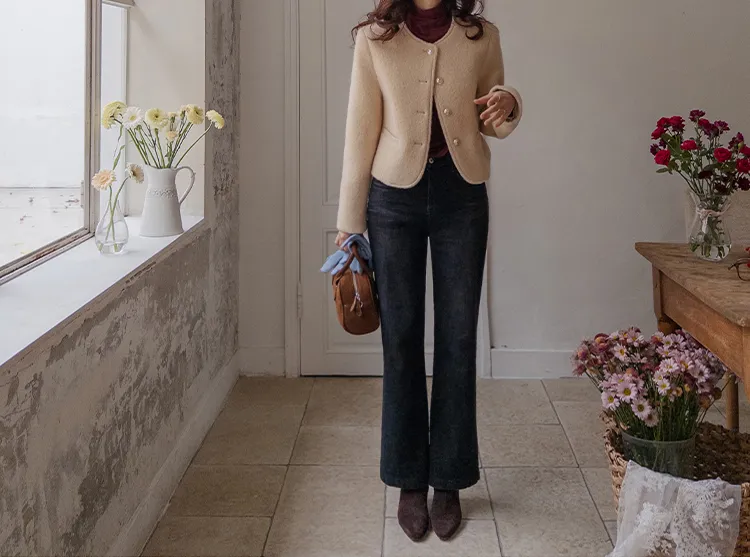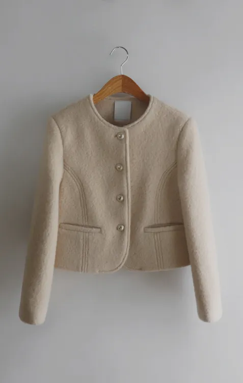 質感圓領縫線設計羊毛外套