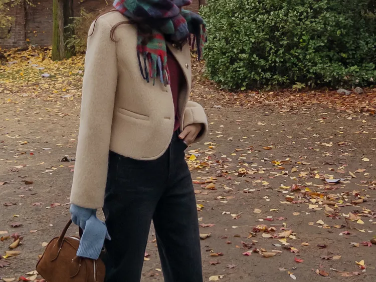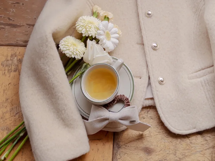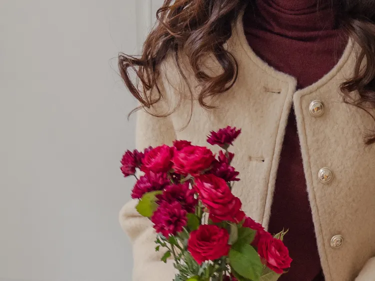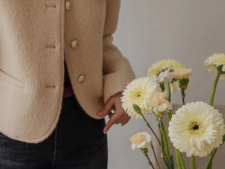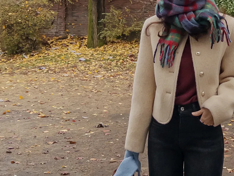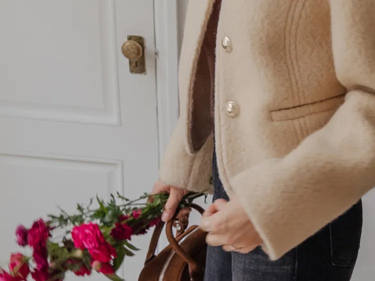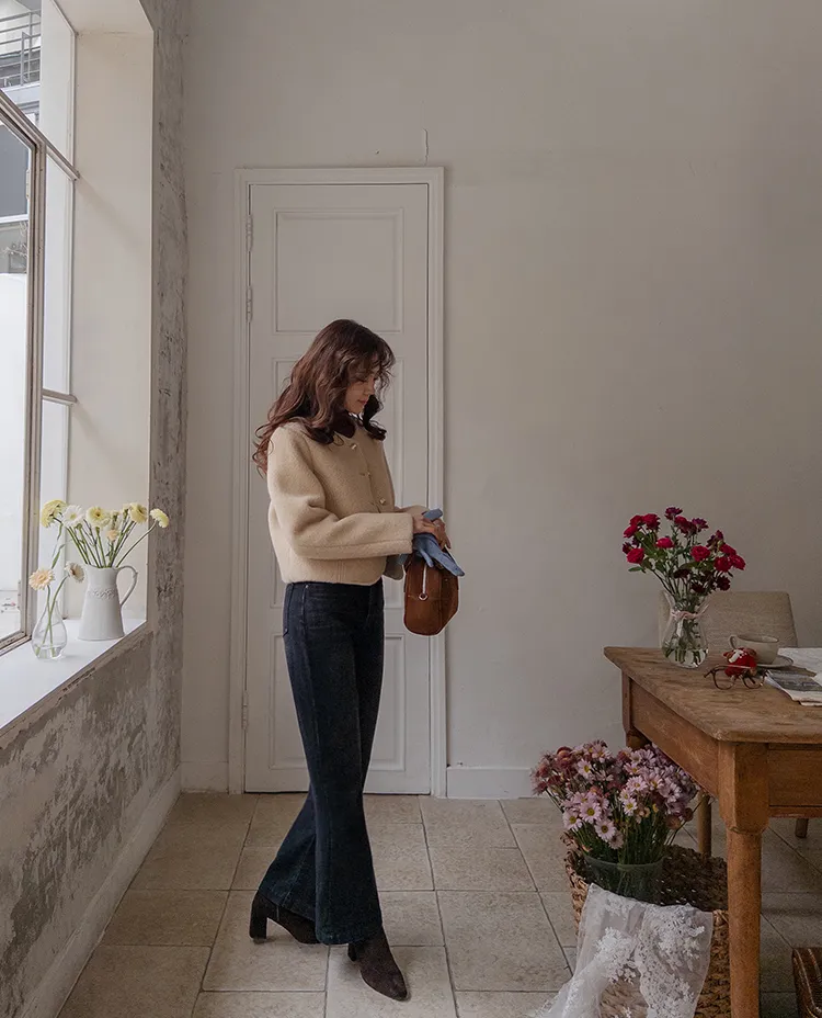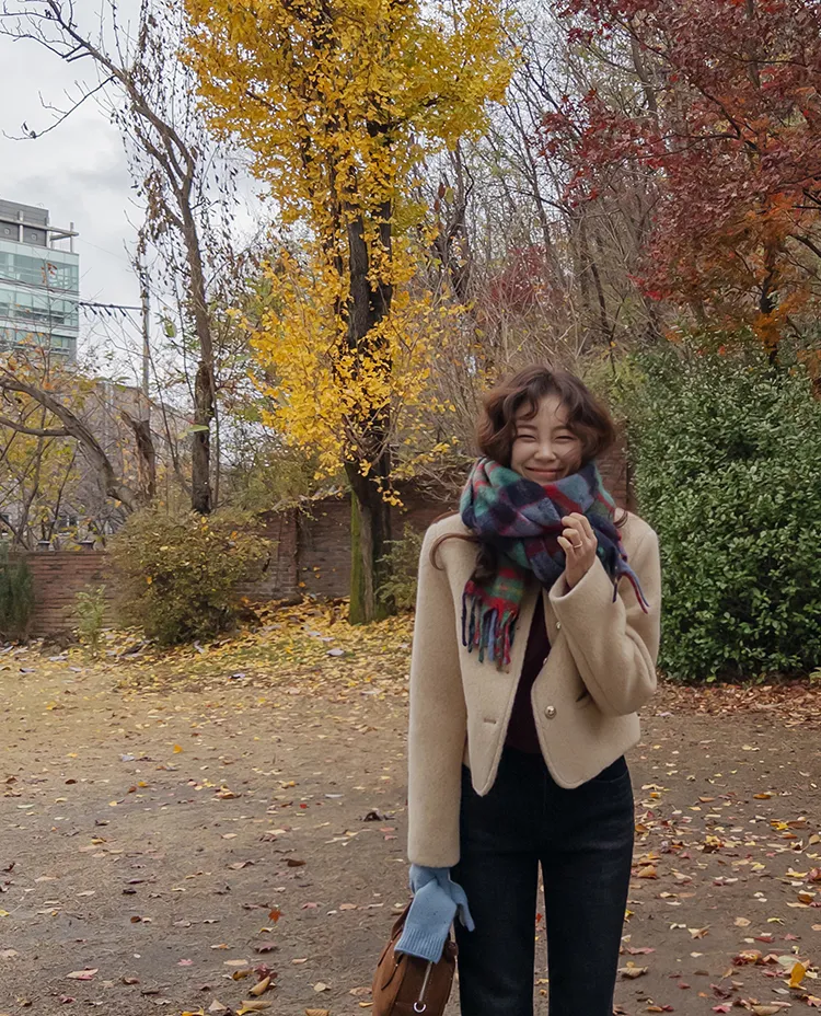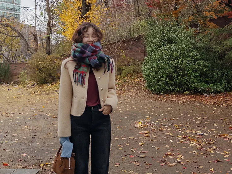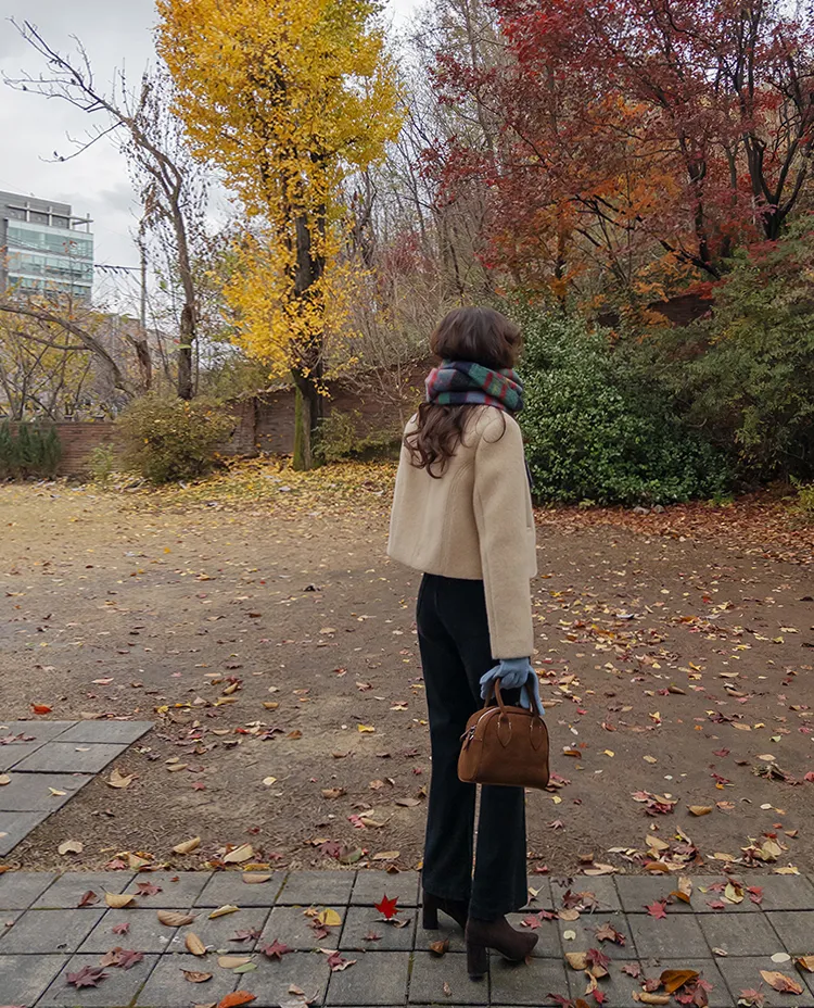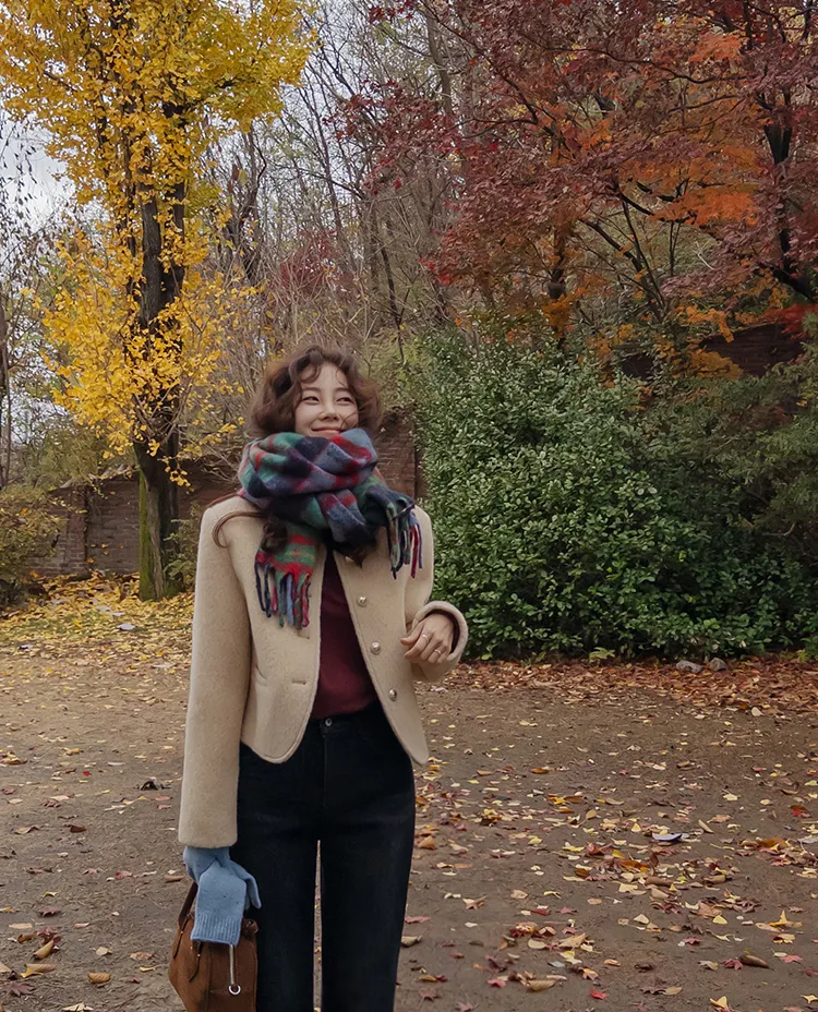 質感圓領縫線設計羊毛外套