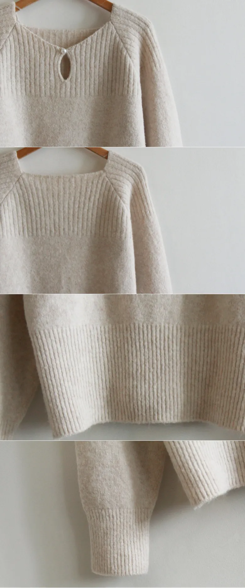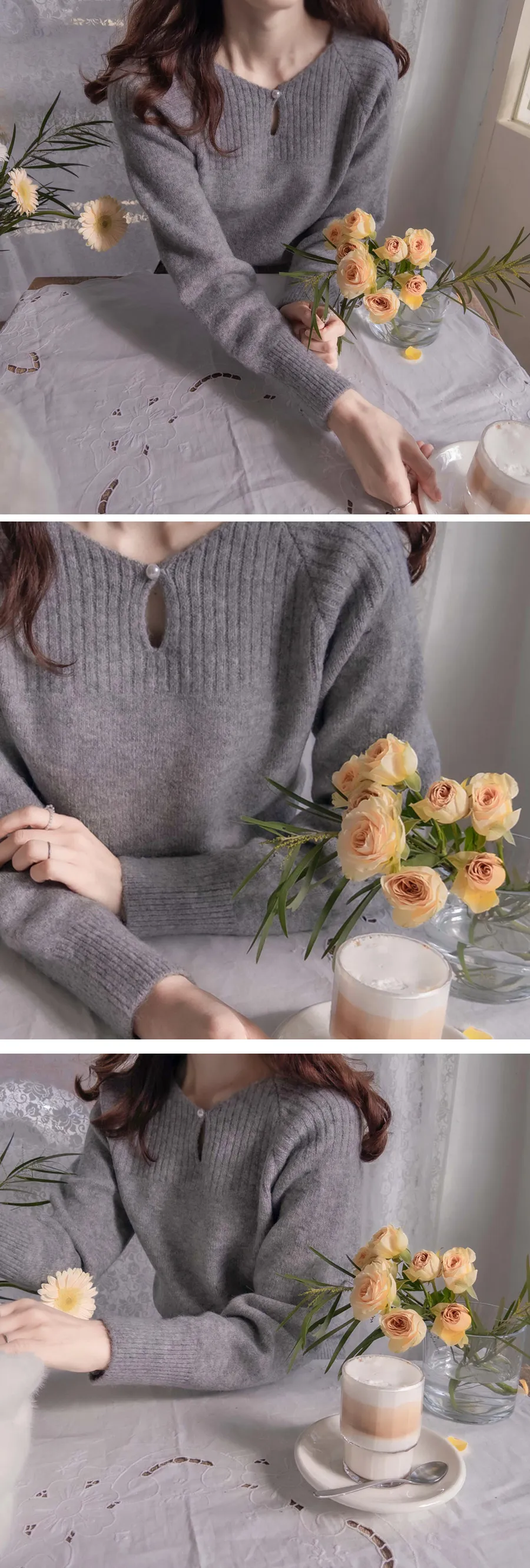 優雅珍珠鈕釦點綴線條設計針織上衣