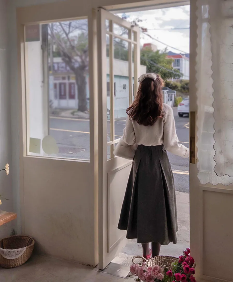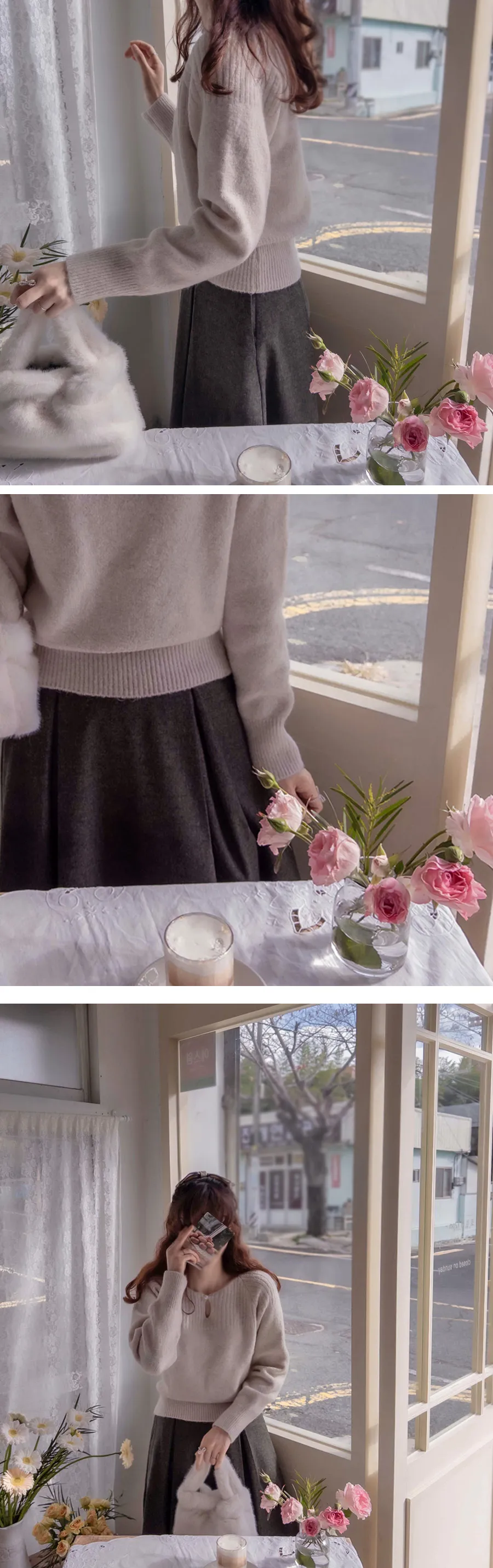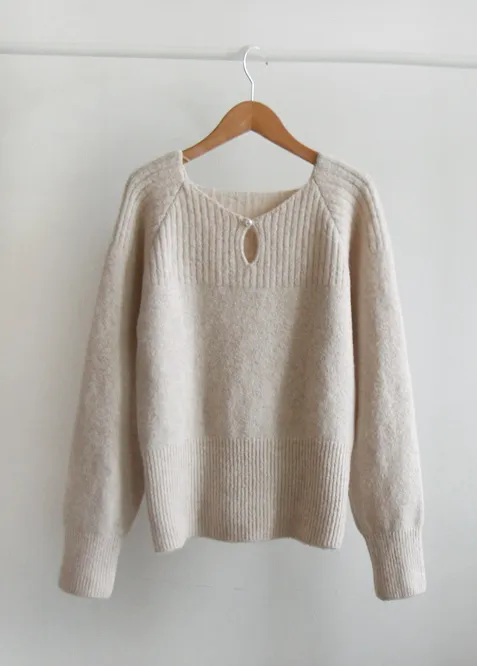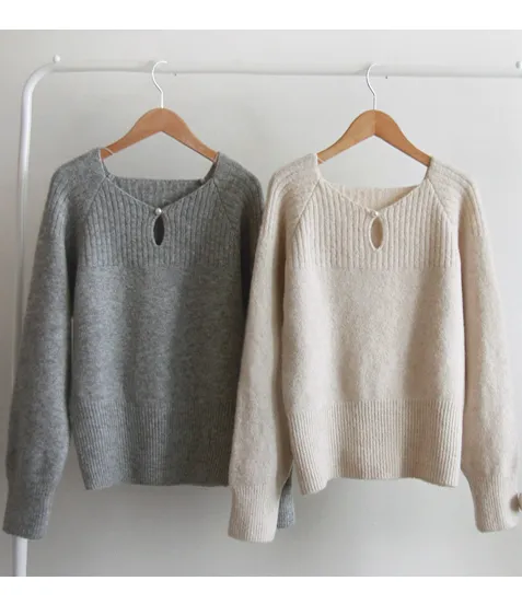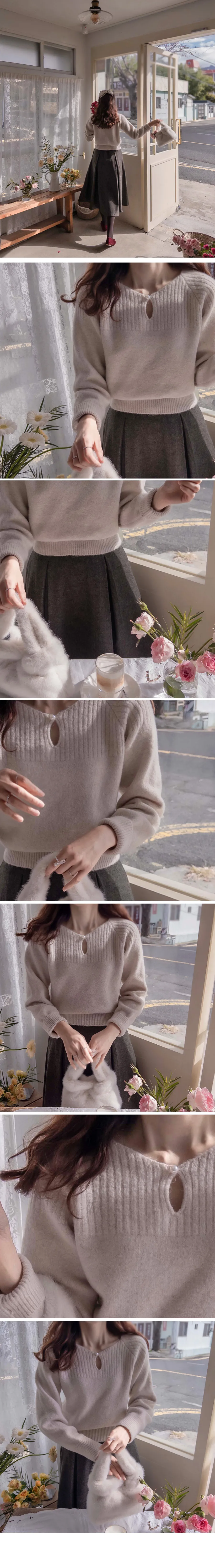 [含有19%羊毛][可開閉珍珠鈕扣][柔和色調的柔軟溫暖面料][領口和肩部有微妙的圖案,非常適合時尚穿著][精緻的色彩讓穿著時看起來明亮搭配][因為圖案和珍珠紐扣的點綴,穿起來很可愛]