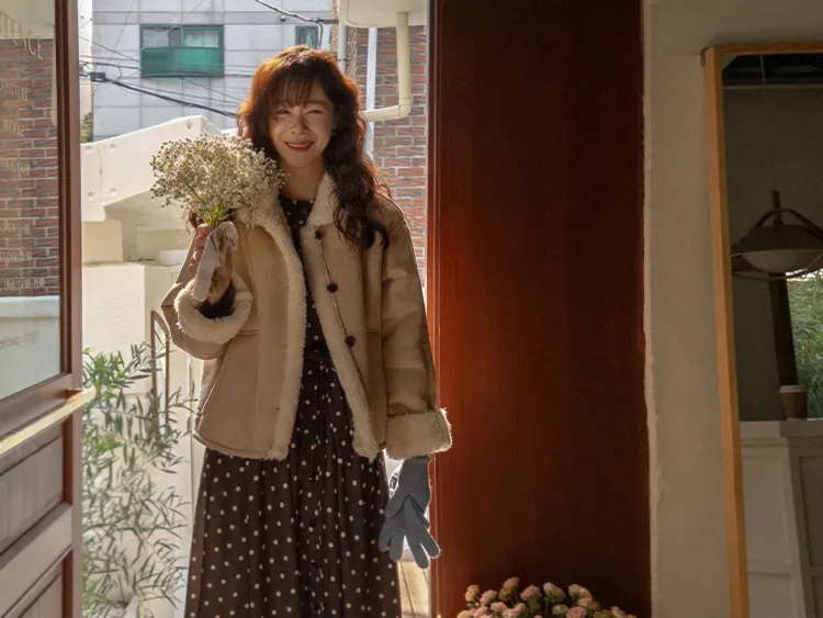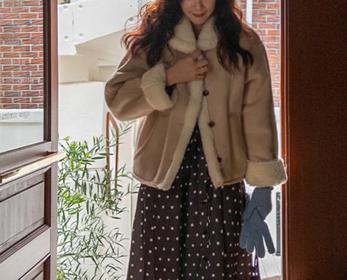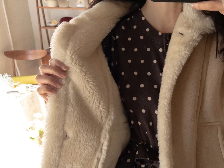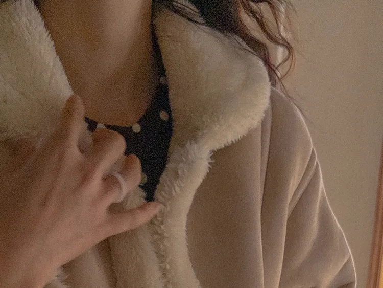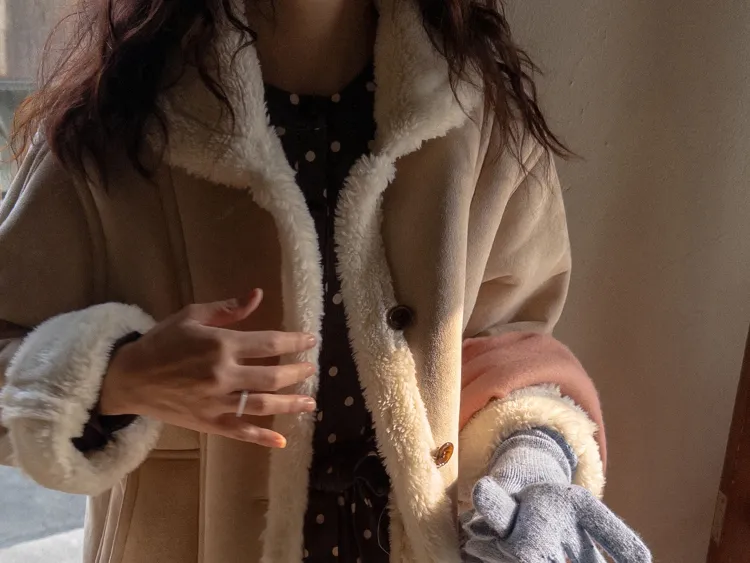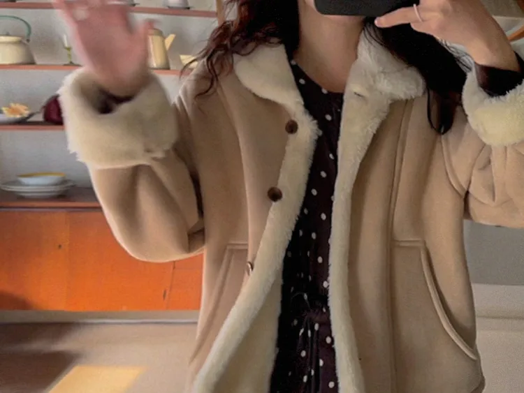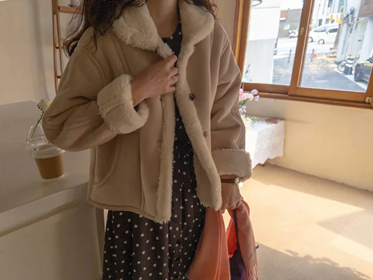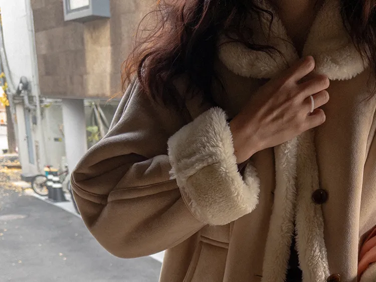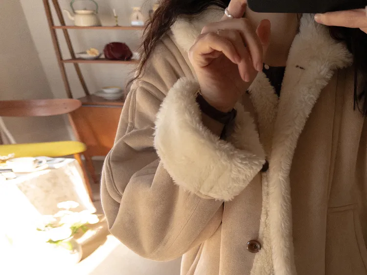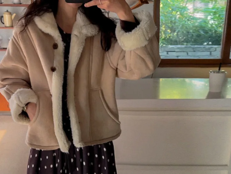 【可愛圓領麂皮外套】【舒適柔軟~整個冬天的冬衣】【溫暖厚實】【寬大的手臂和大口袋提高了實用性】