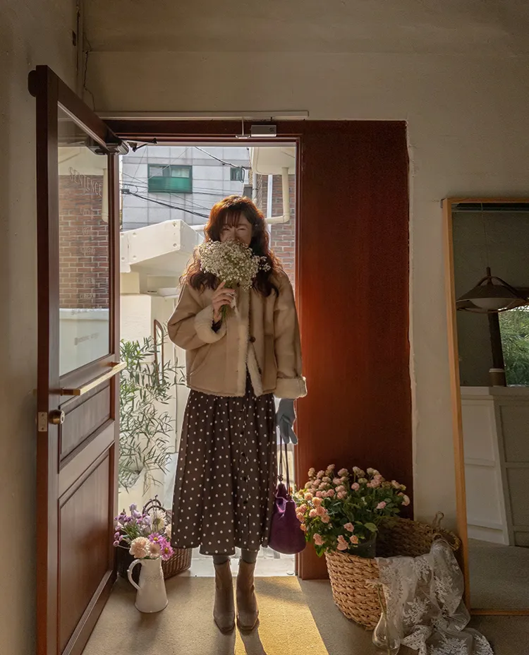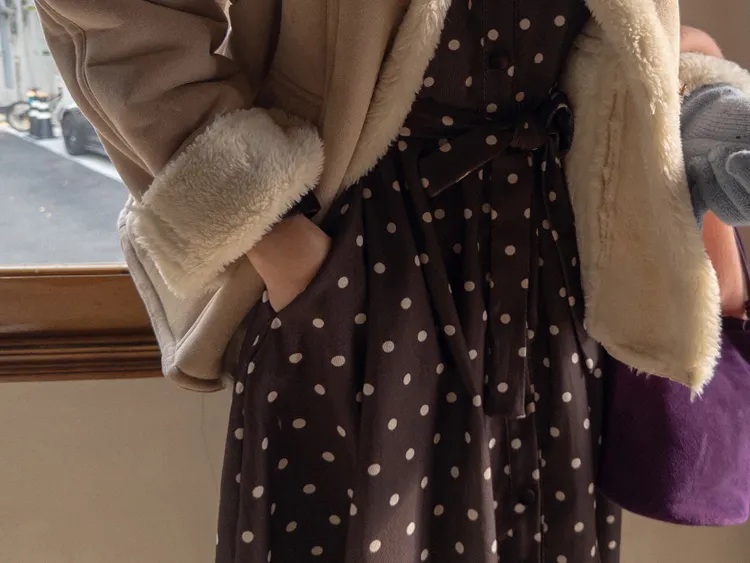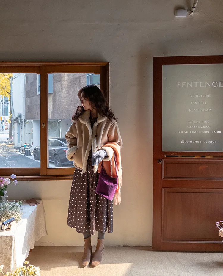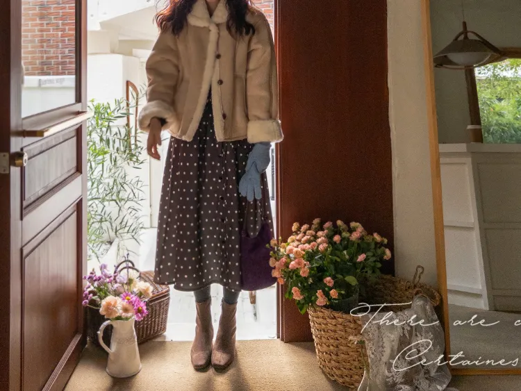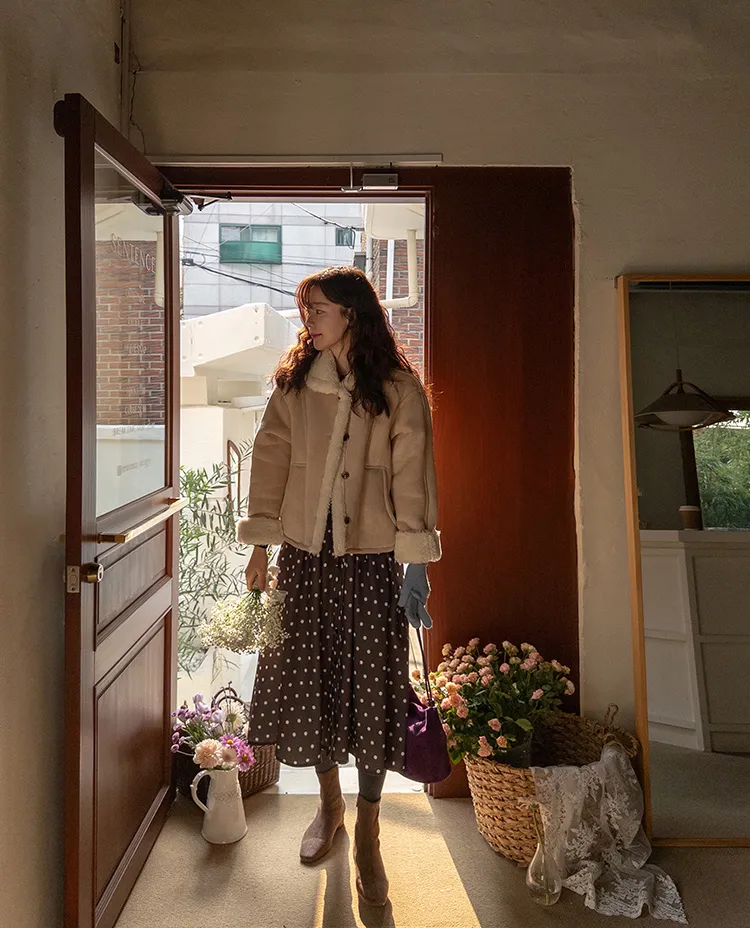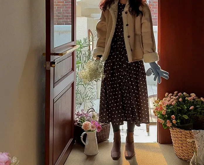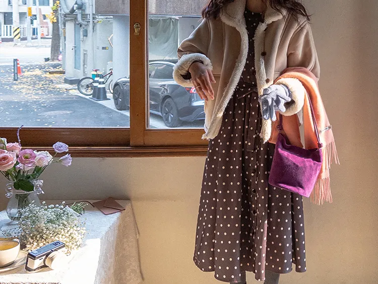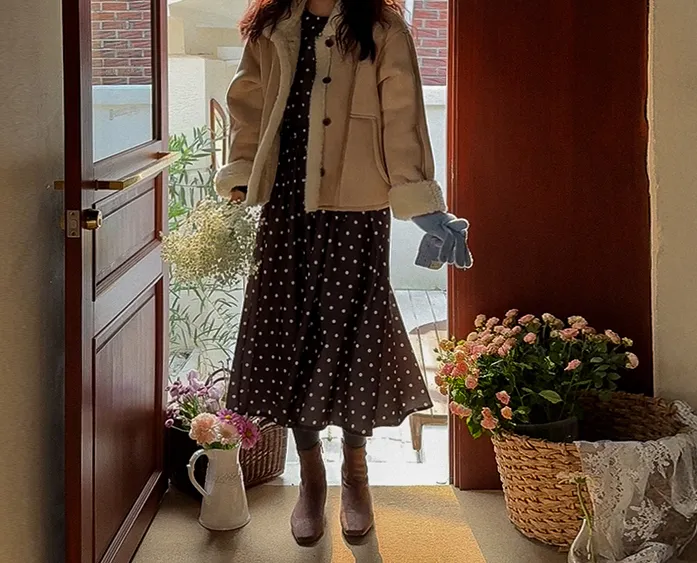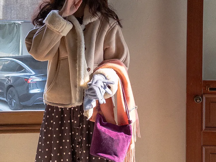 【可愛圓領麂皮外套】【舒適柔軟~整個冬天的冬衣】【溫暖厚實】【寬大的手臂和大口袋提高了實用性】