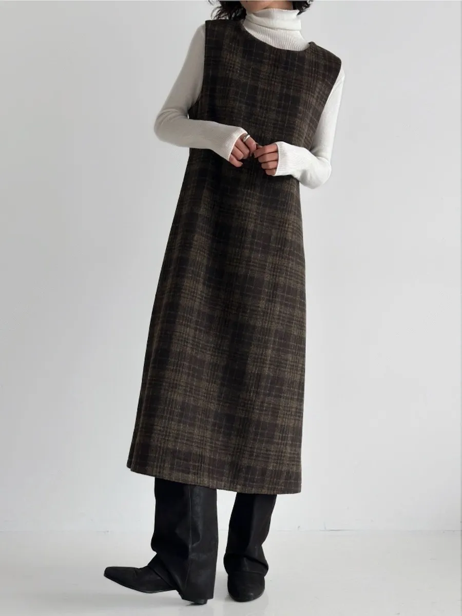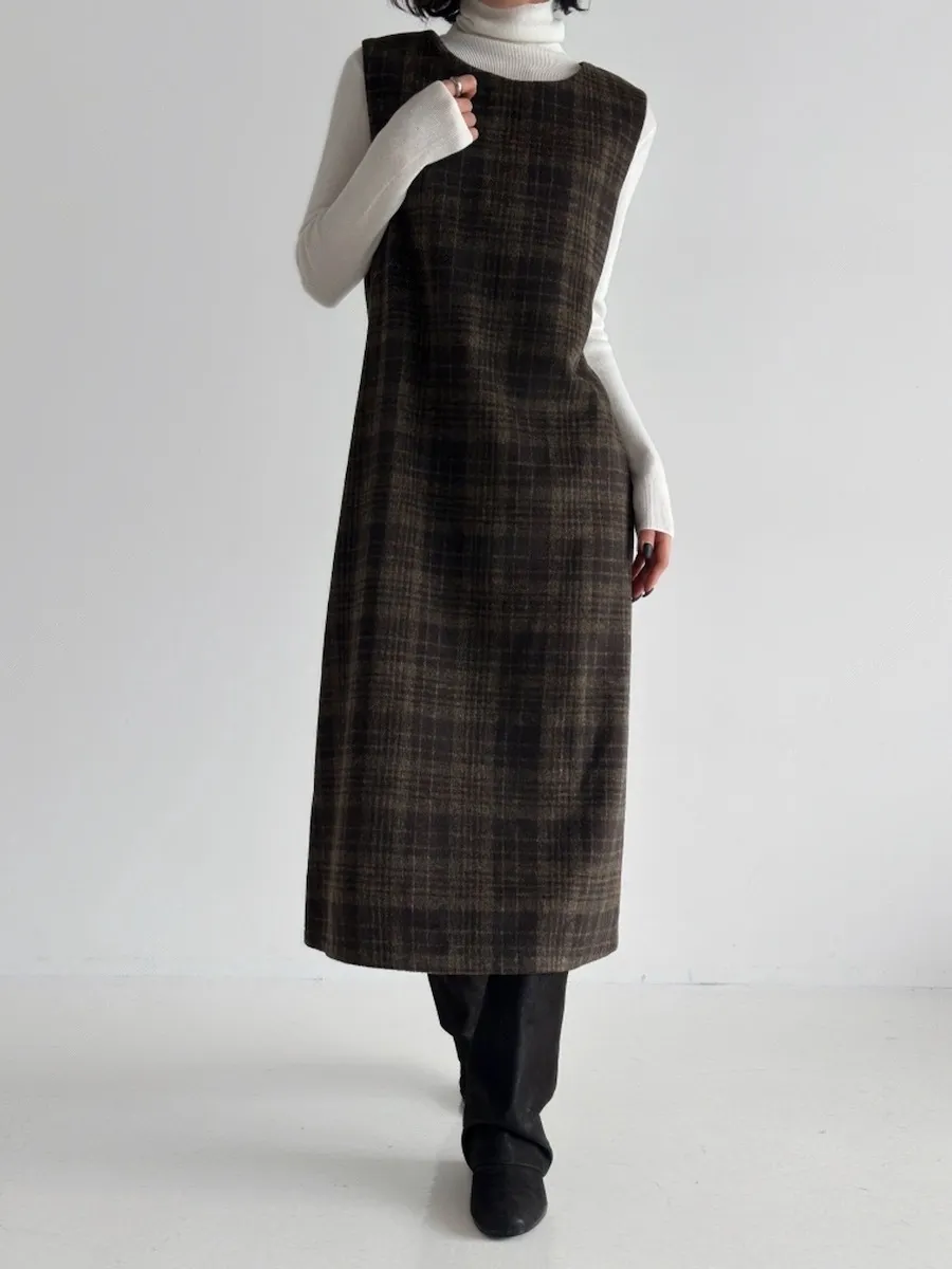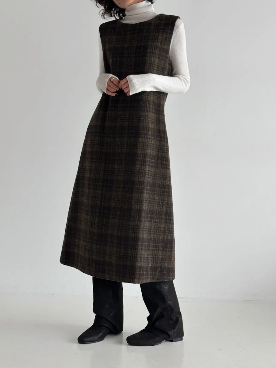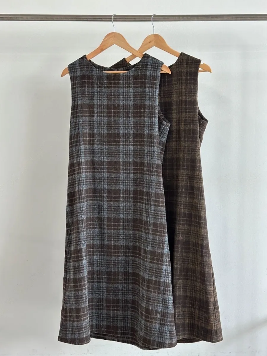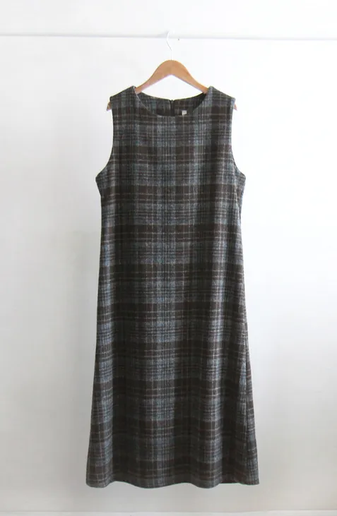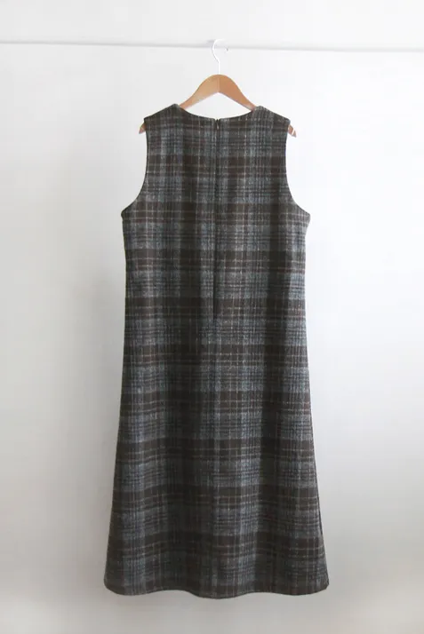 [含有 20% 羊毛] [後拉鍊] [柔軟拉絨,時尚線條] [不貼身的細長線條,看起來像 A 字形] [拉絨面料,適合整個季節穿著] [格紋圖案精緻的設計,賦予活力]【柔軟拉絨格紋洋裝】