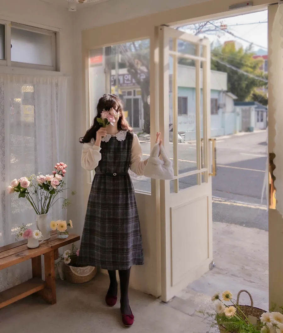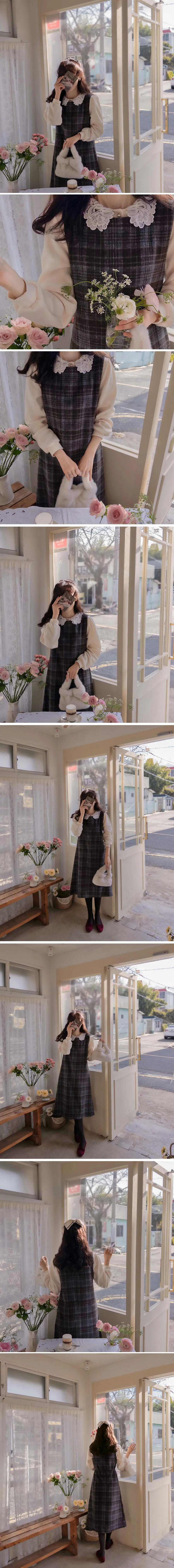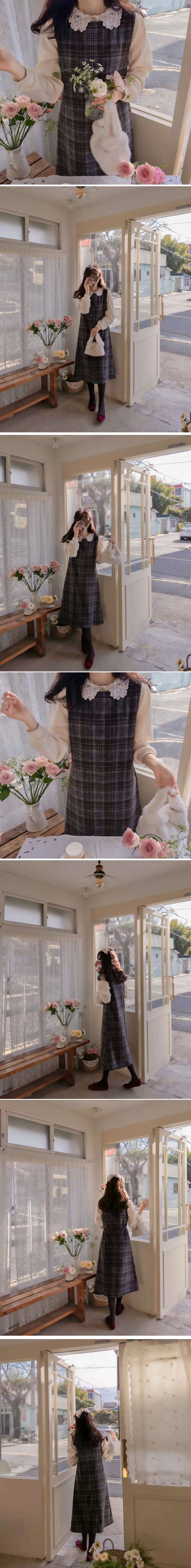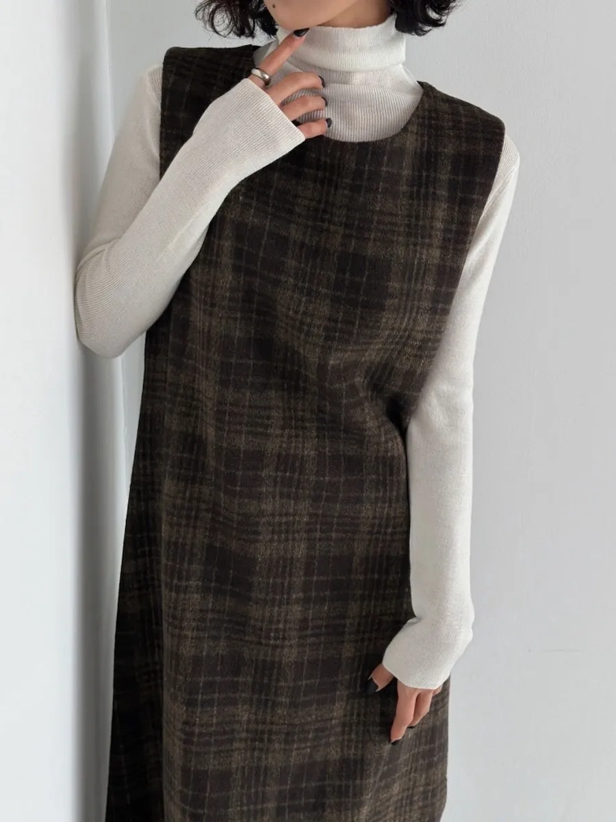 [含有 20% 羊毛] [後拉鍊] [柔軟拉絨,時尚線條] [不貼身的細長線條,看起來像 A 字形] [拉絨面料,適合整個季節穿著] [格紋圖案精緻的設計,賦予活力]【柔軟拉絨格紋洋裝】