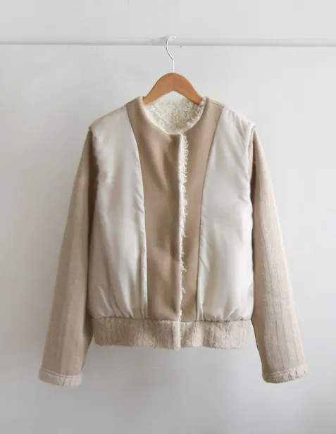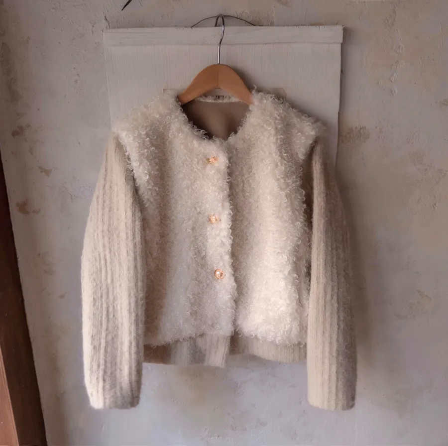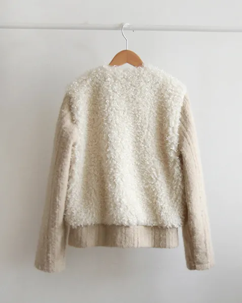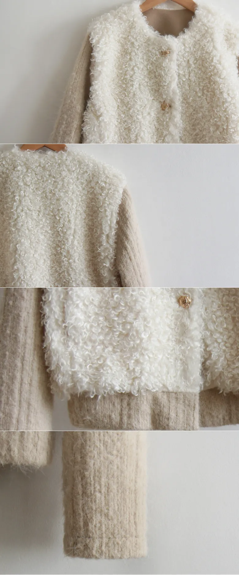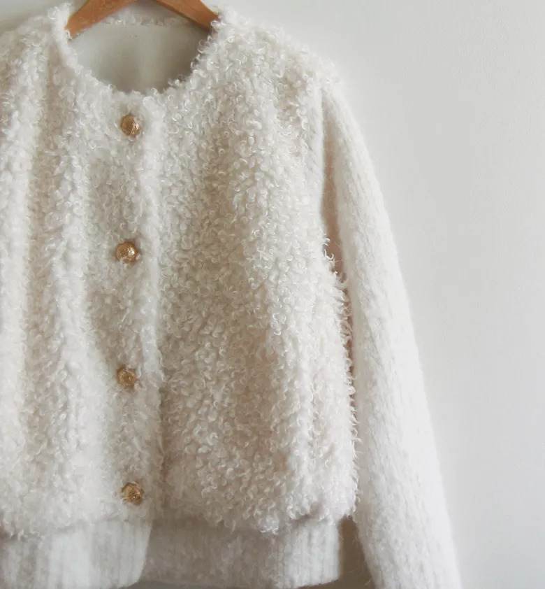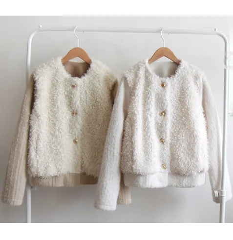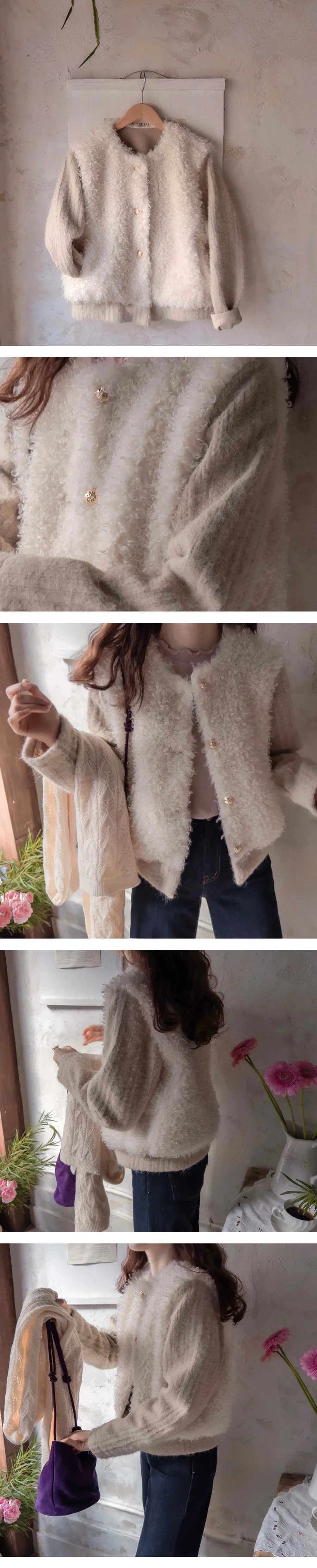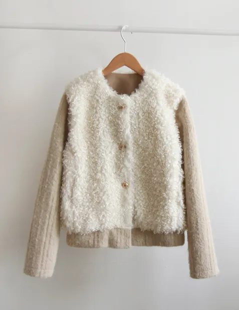【溫暖的外套,柔軟的羊毛,可愛的外觀】【袖子上蓬鬆的毛皮和純色的條紋圖案真漂亮】【金色鈕扣帶組成,營造出精緻的氛圍】【時尚的外套,溫馨舒適與羊毛配色搭配穿著] [明亮建議作為保暖舒適的外套]