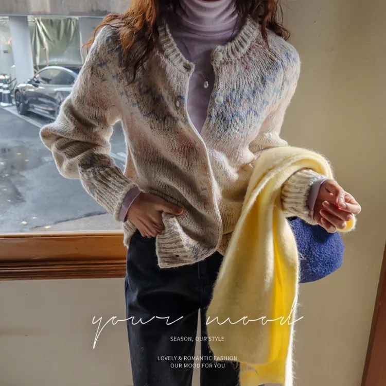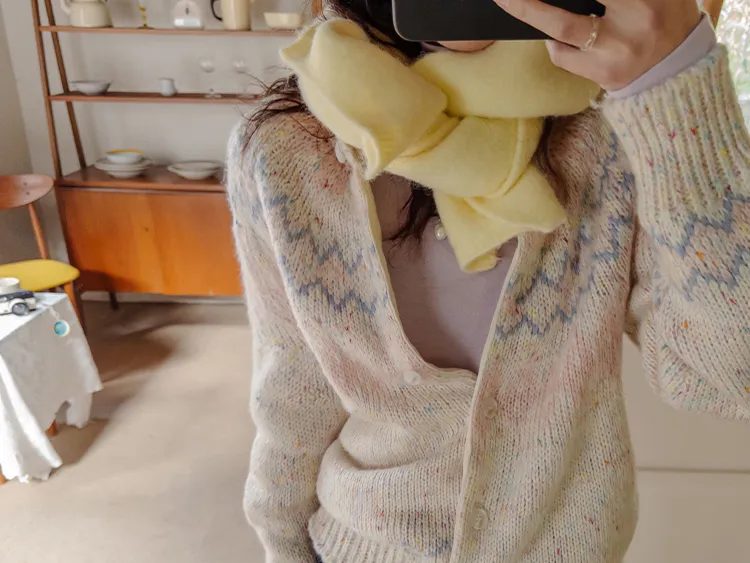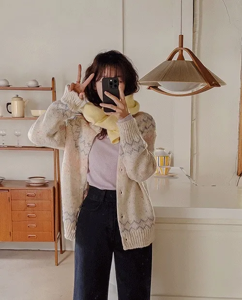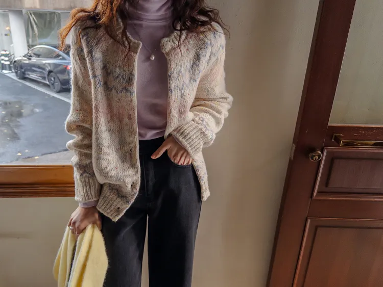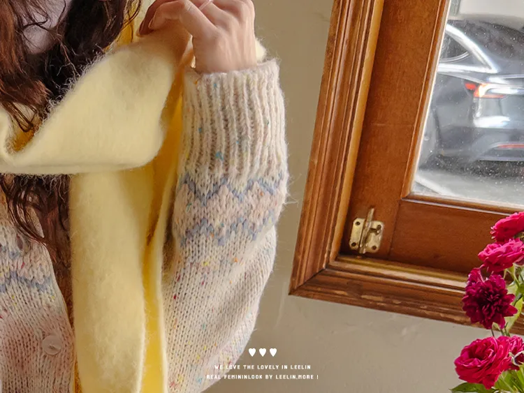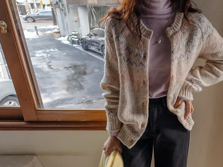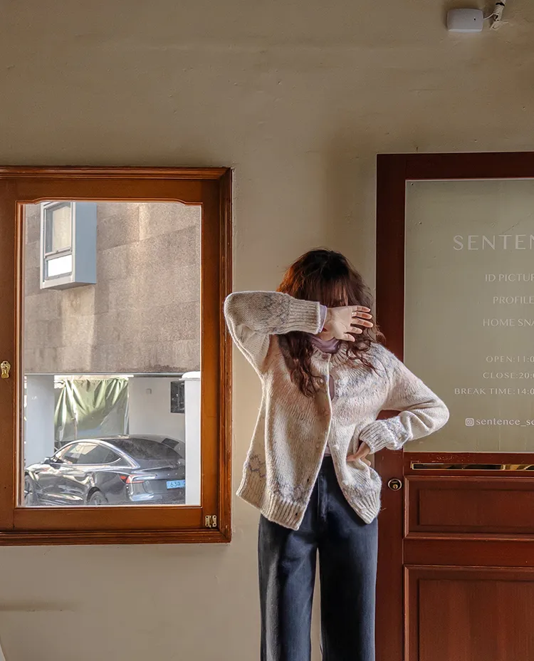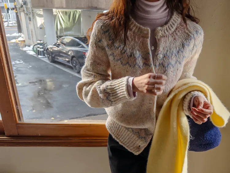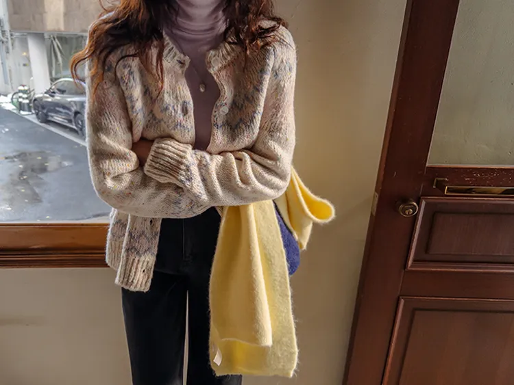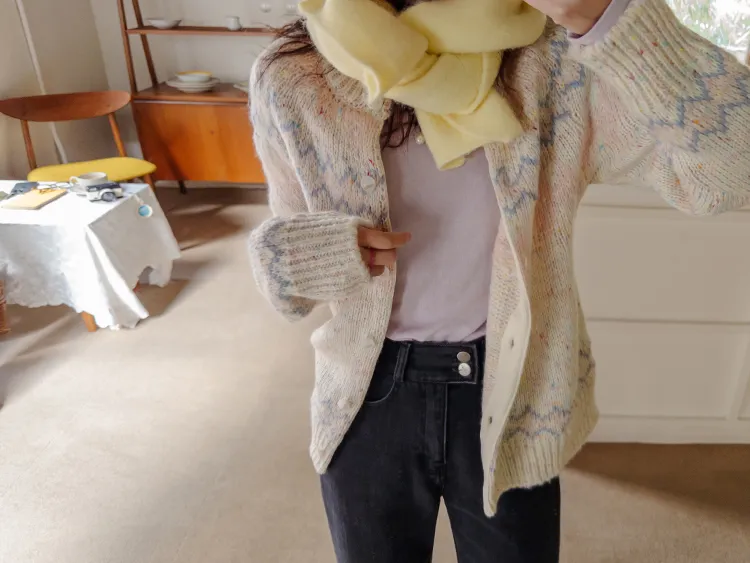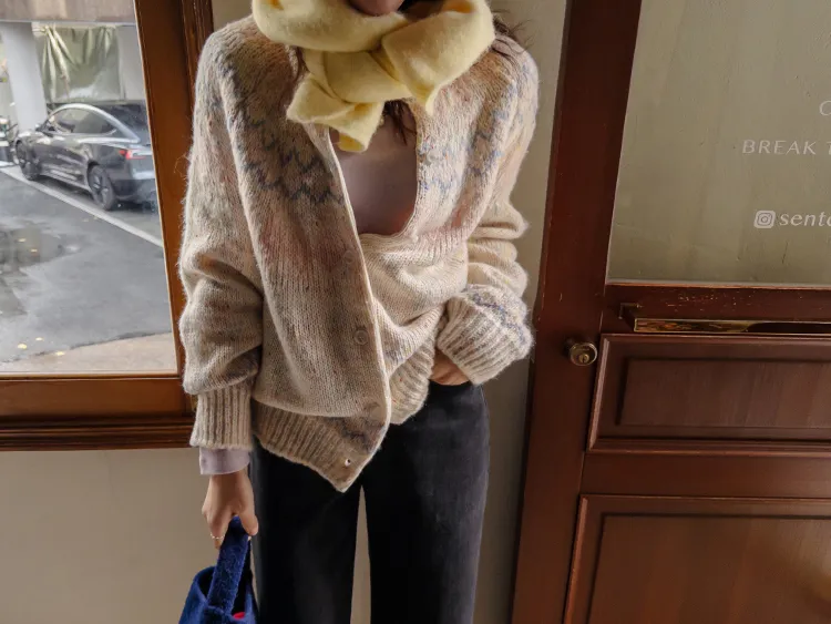 【柔和的色彩可愛UP】【連肩袖線,打造柔軟自然的輪廓:)】【寬鬆版型,修飾體型~】【冬天不能錯過的北歐開衫】