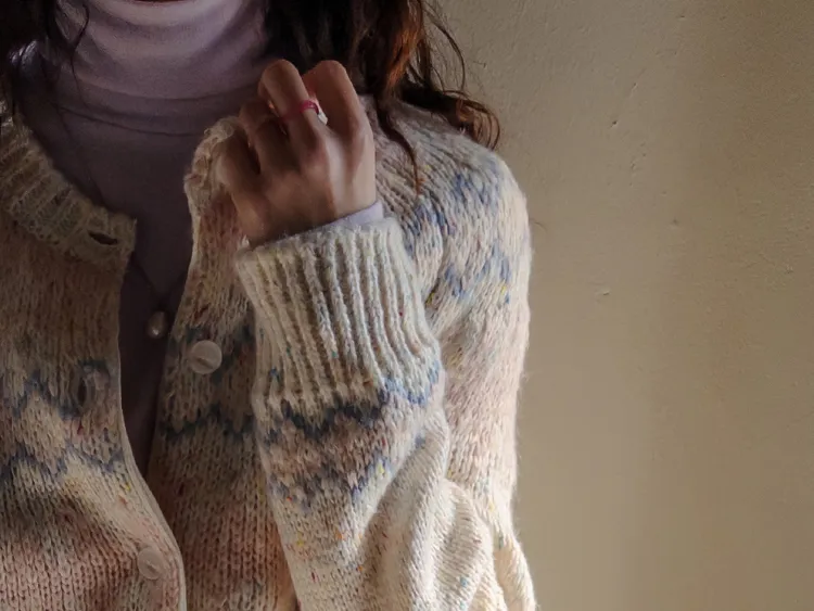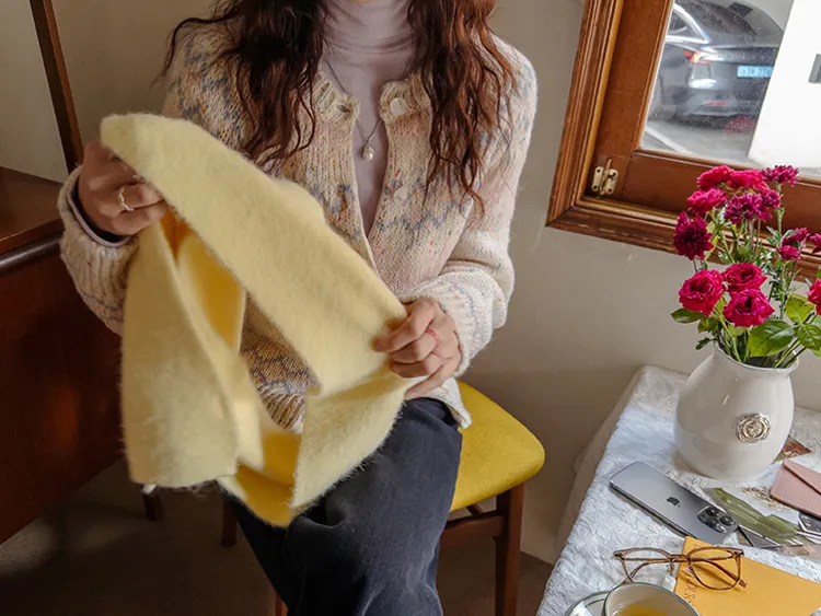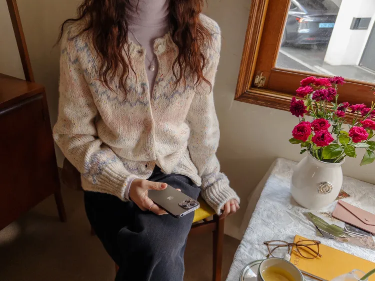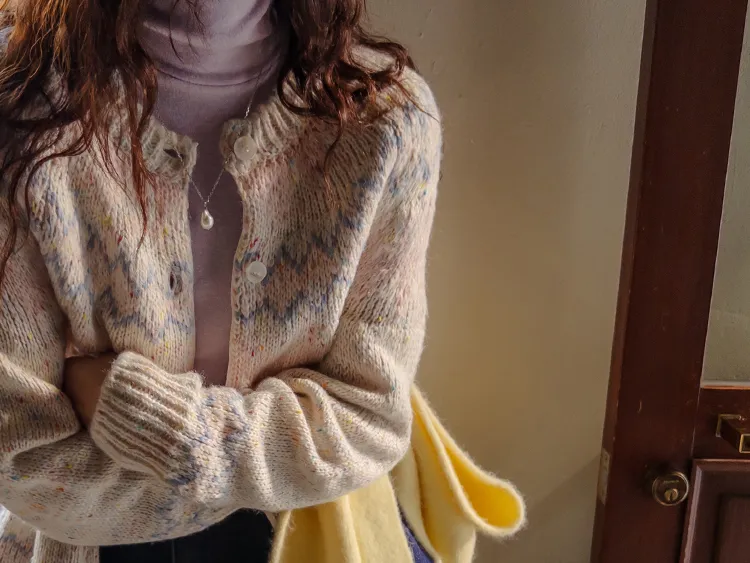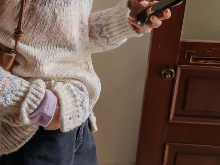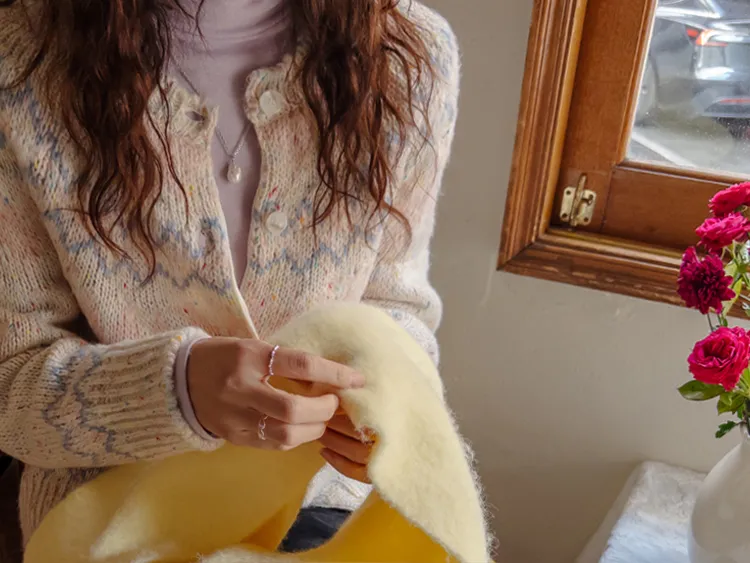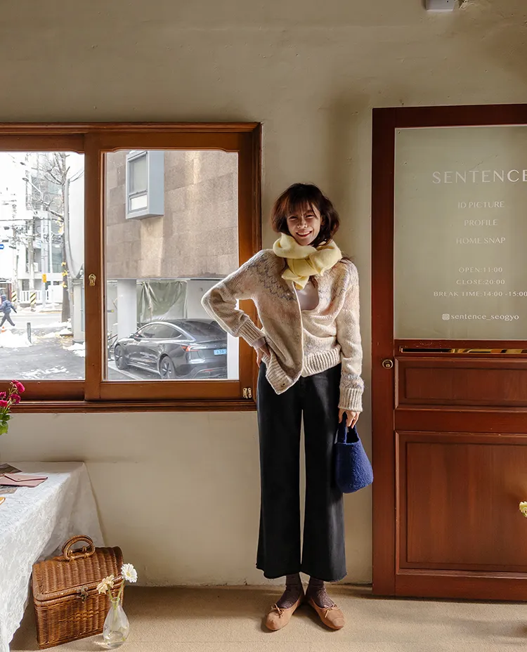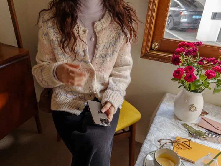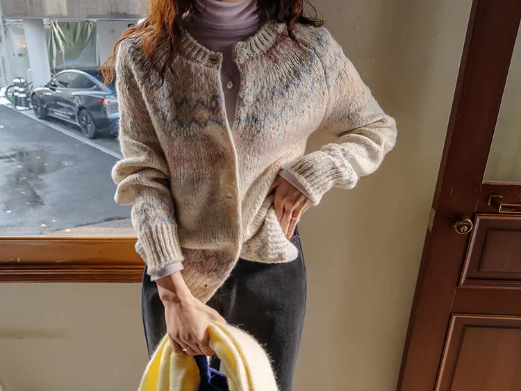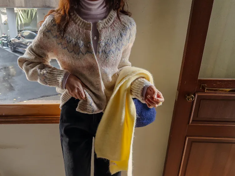 【柔和的色彩可愛UP】【連肩袖線,打造柔軟自然的輪廓:)】【寬鬆版型,修飾體型~】【冬天不能錯過的北歐開衫】