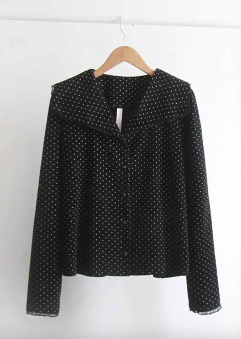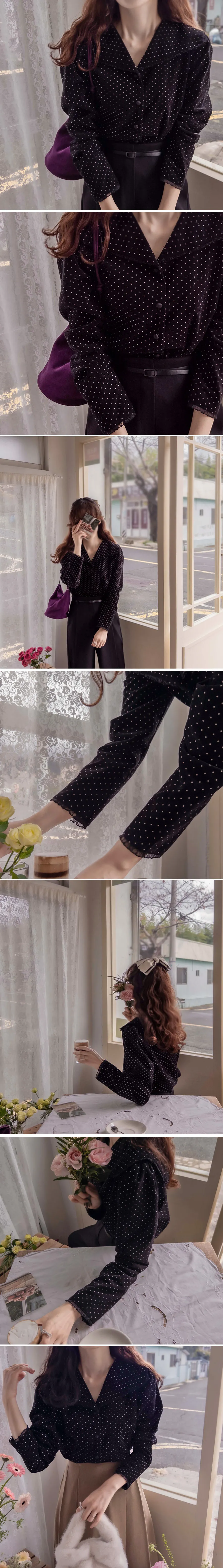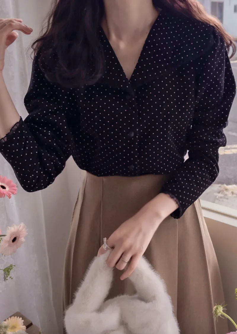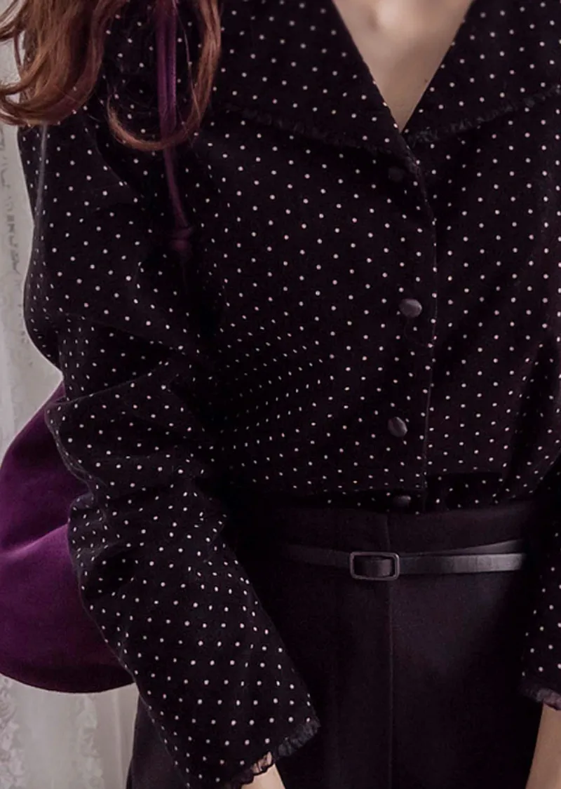 漂亮領口袖末剪裁圓點點燈芯絨排扣上衣 現貨