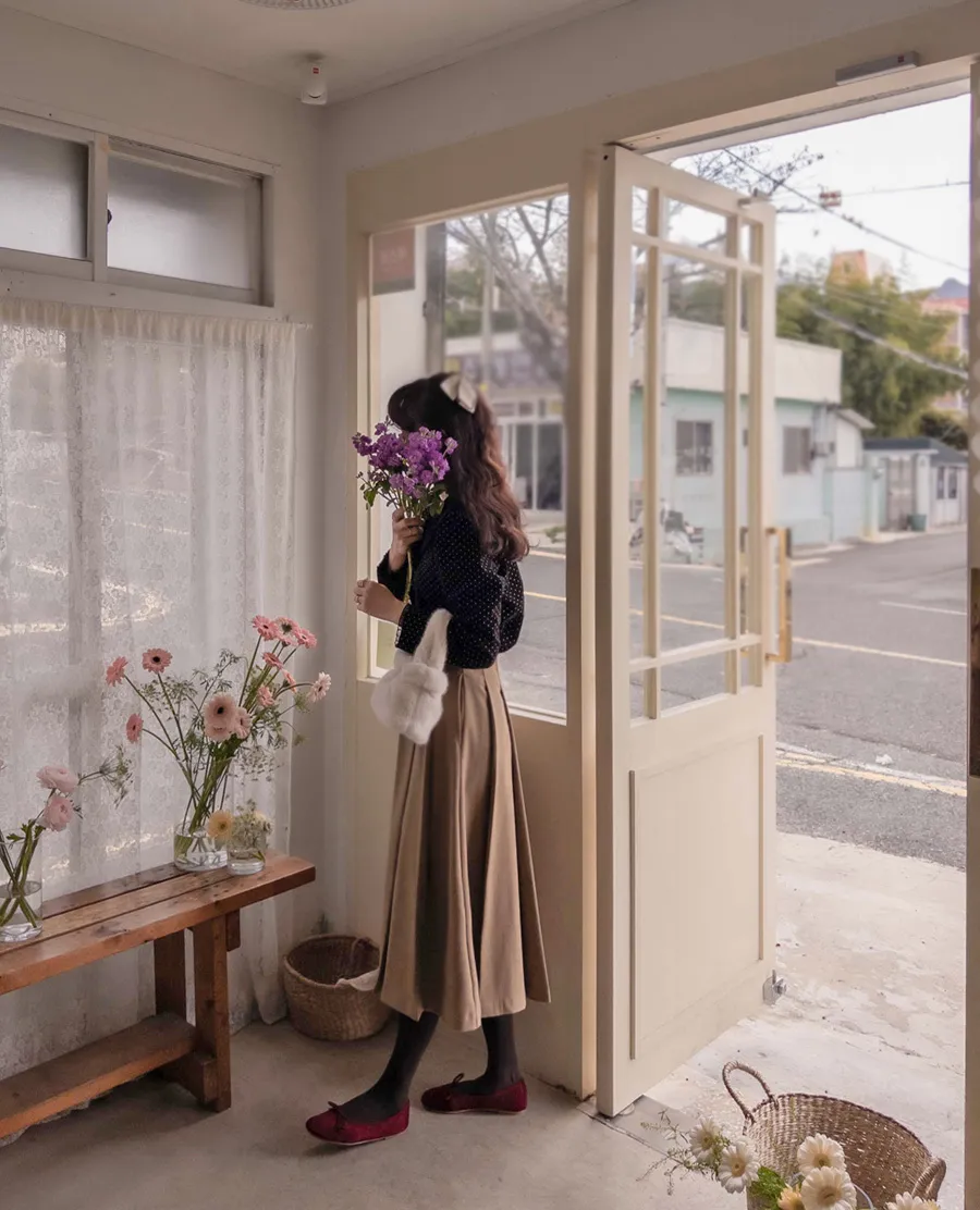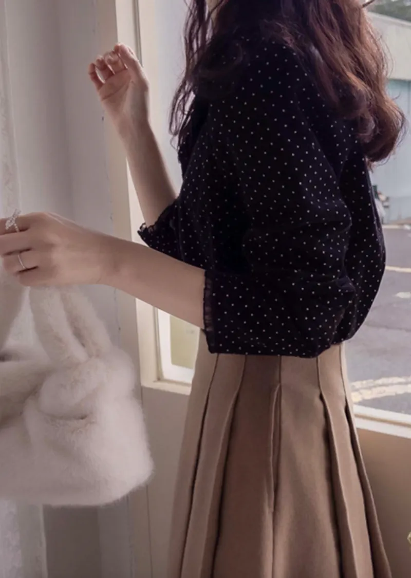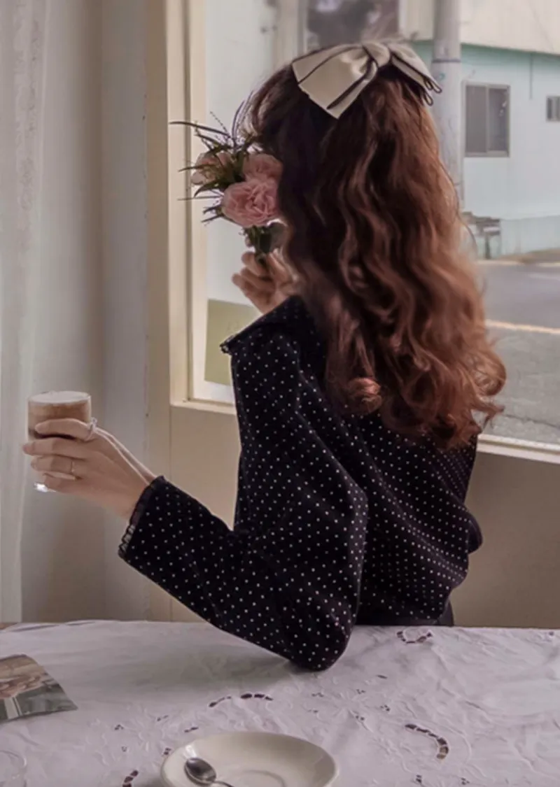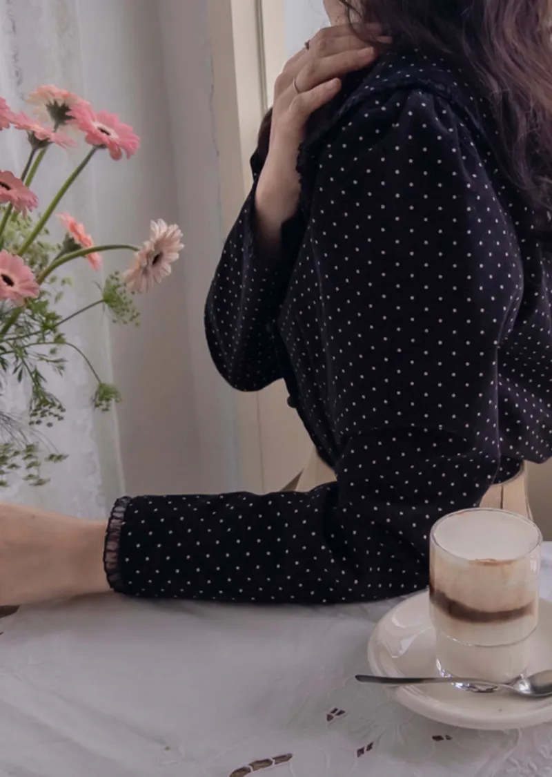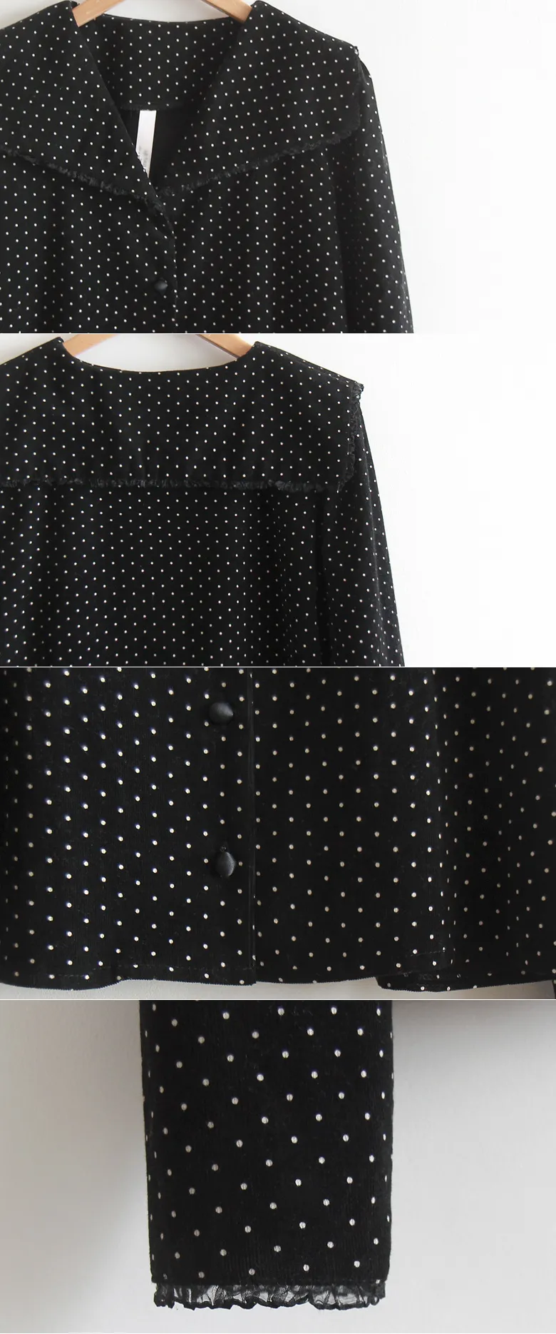 漂亮領口袖末剪裁圓點點燈芯絨排扣上衣 現貨