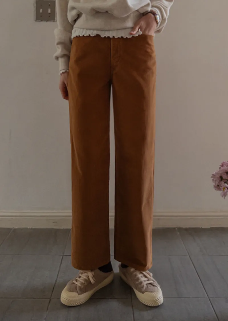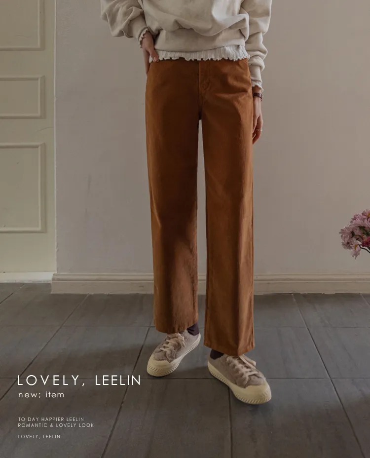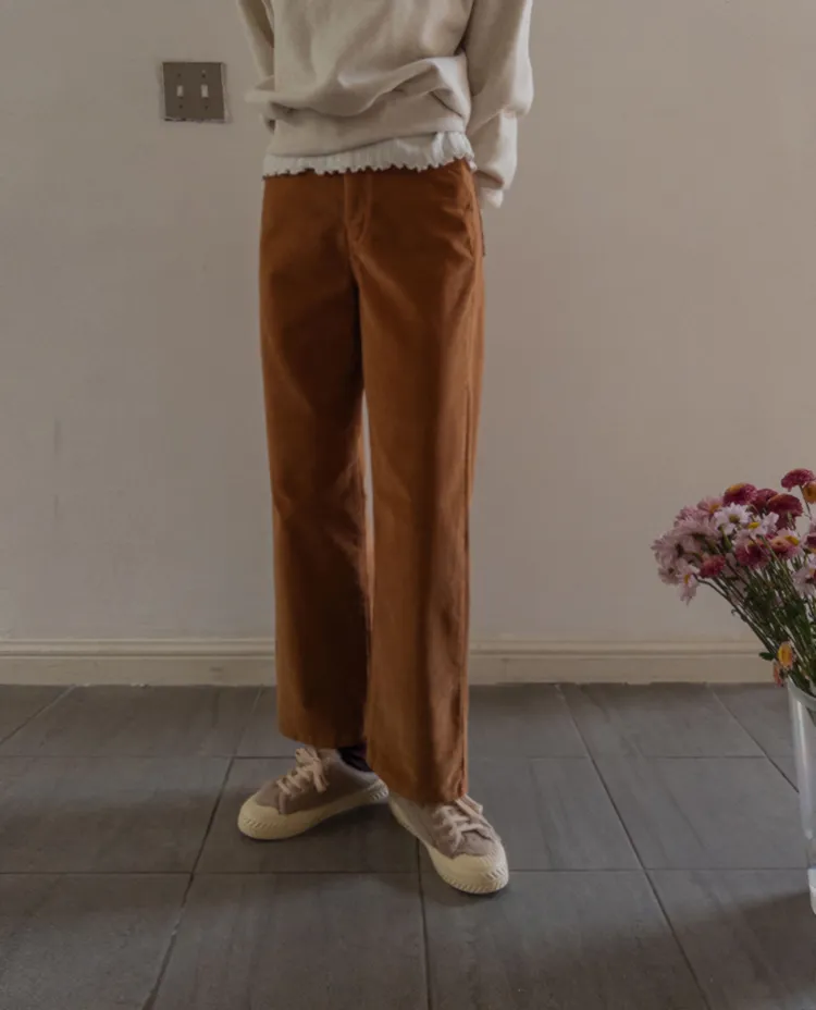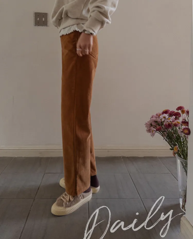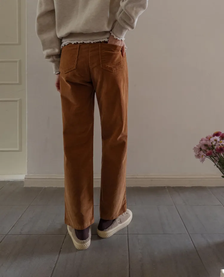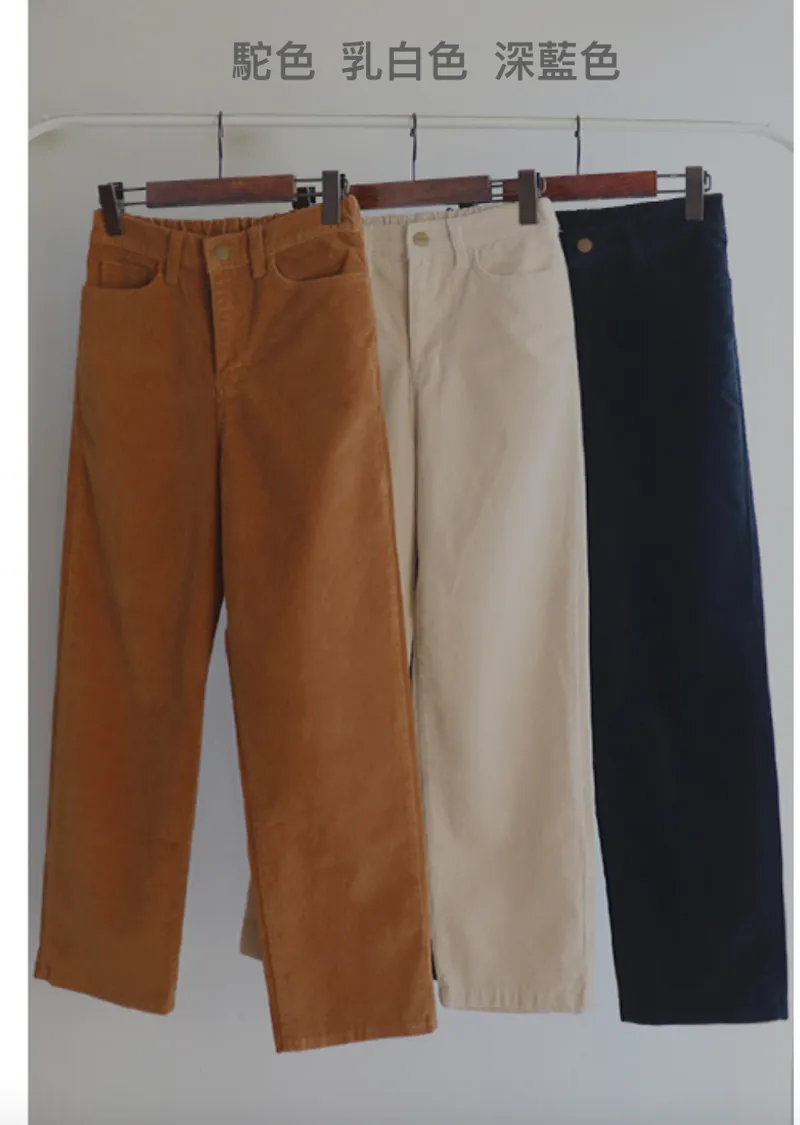 漂亮基本設計直筒修身燈芯絨休閒褲