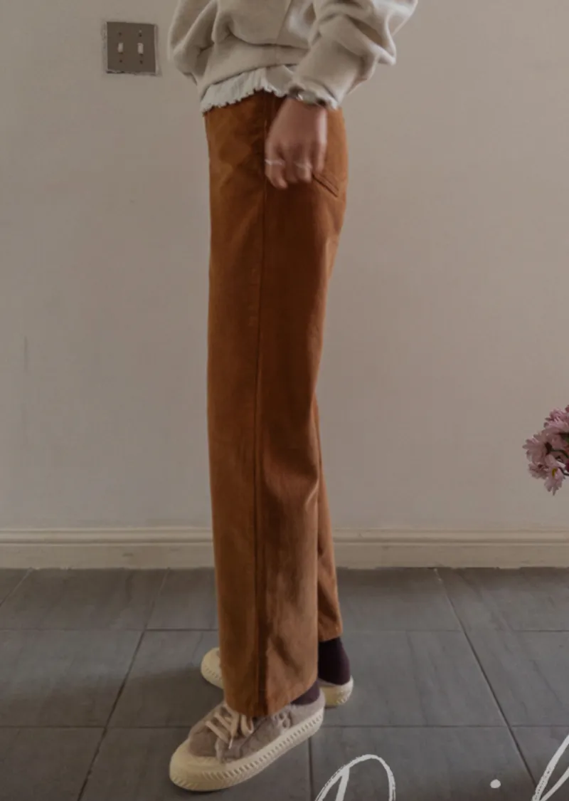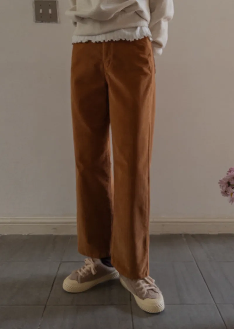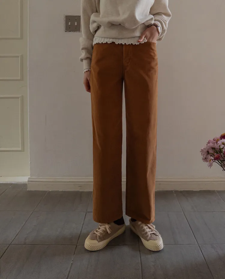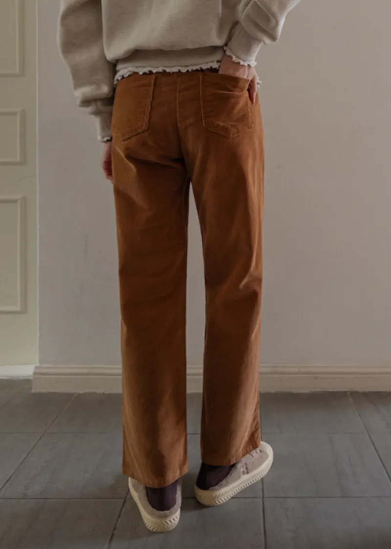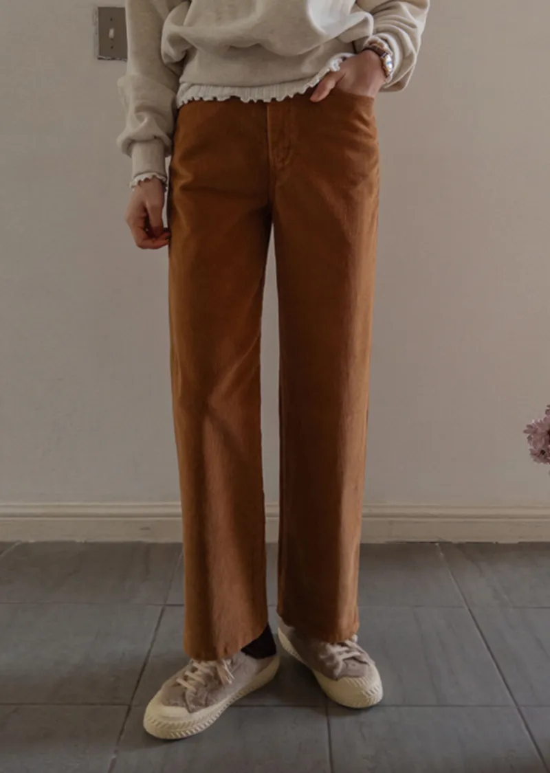 漂亮基本設計直筒修身燈芯絨休閒褲