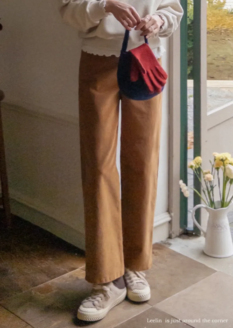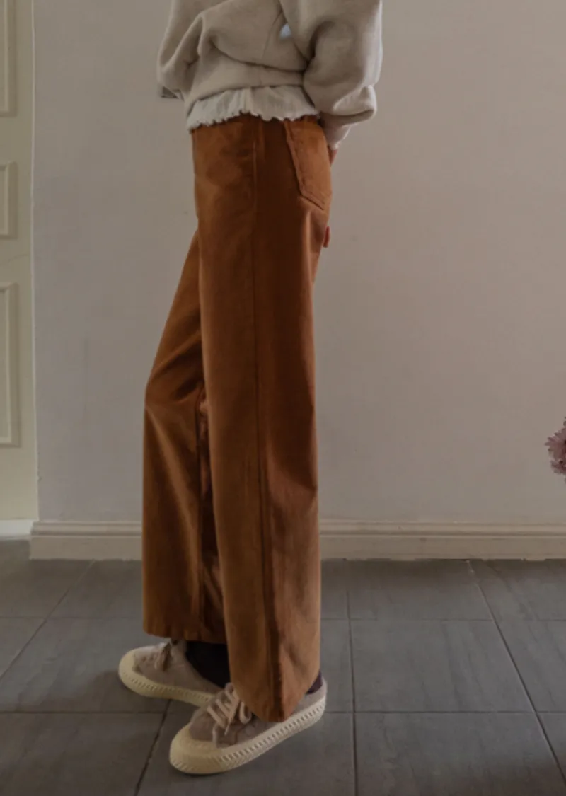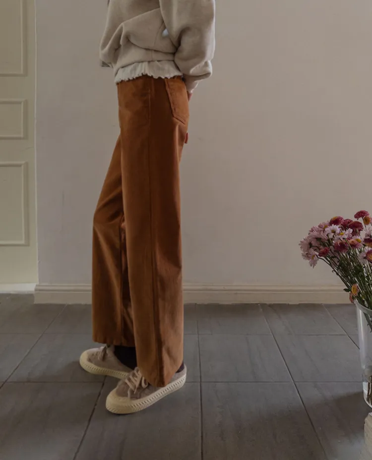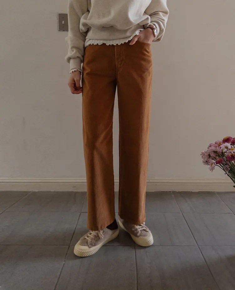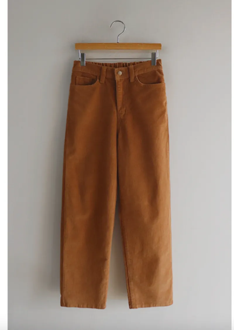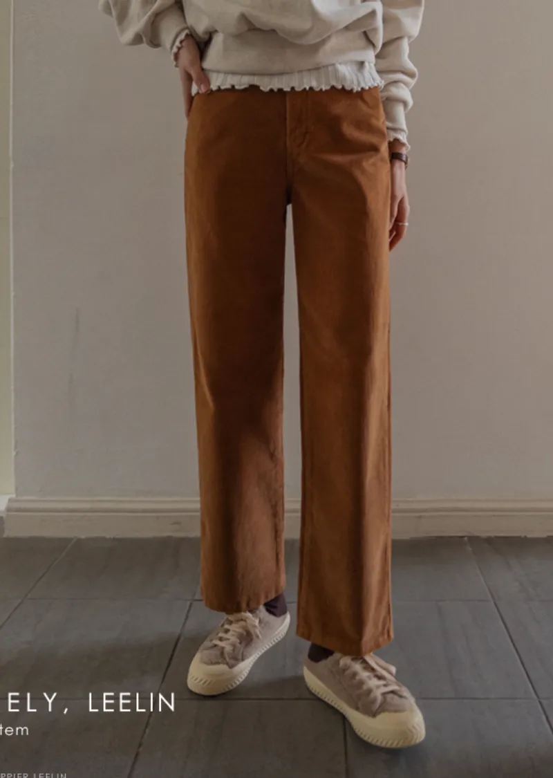 漂亮基本設計直筒修身燈芯絨休閒褲