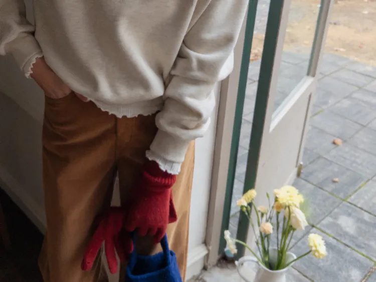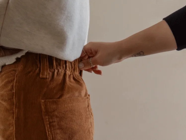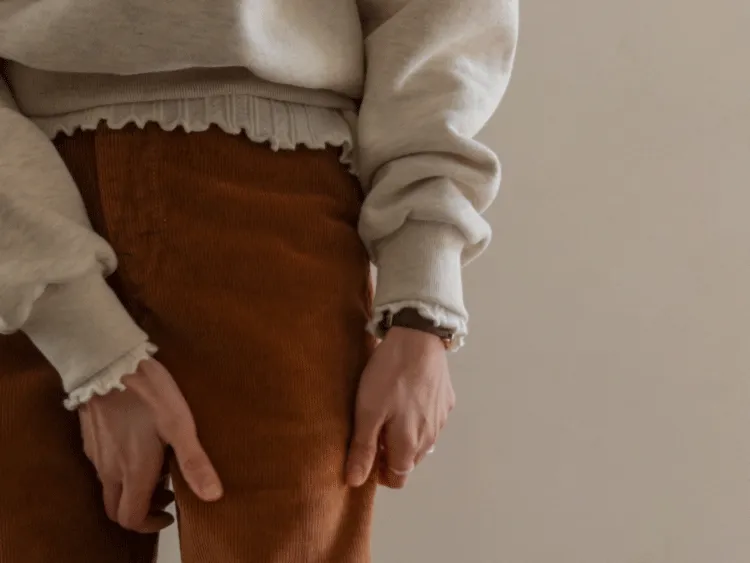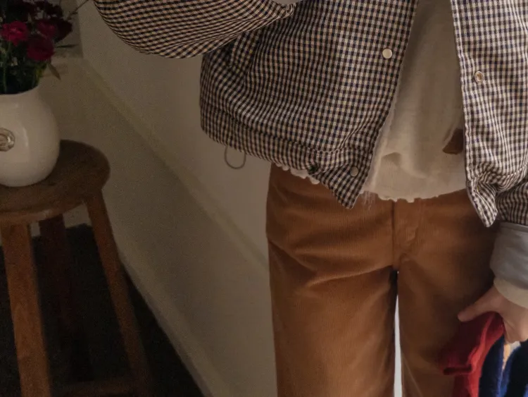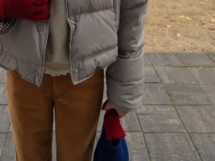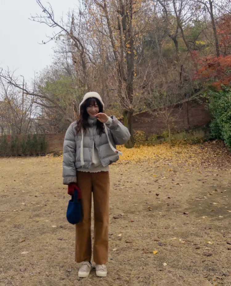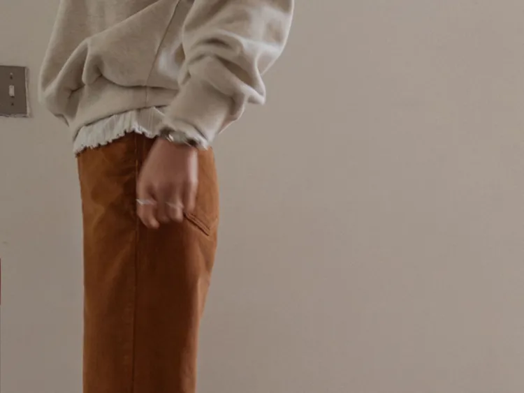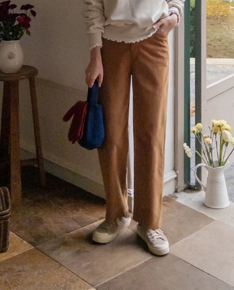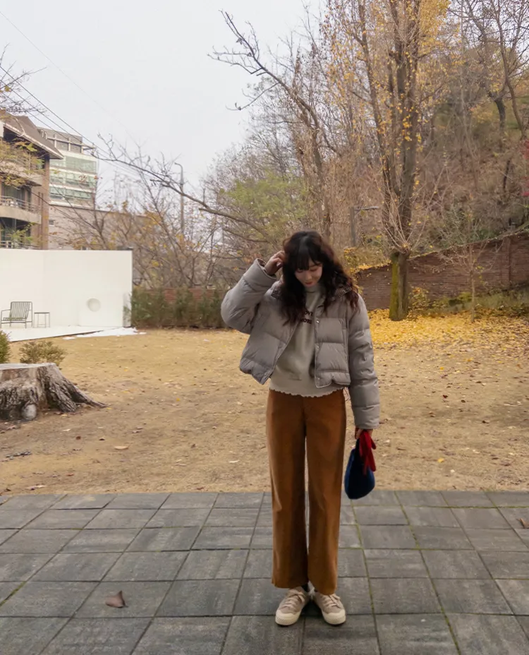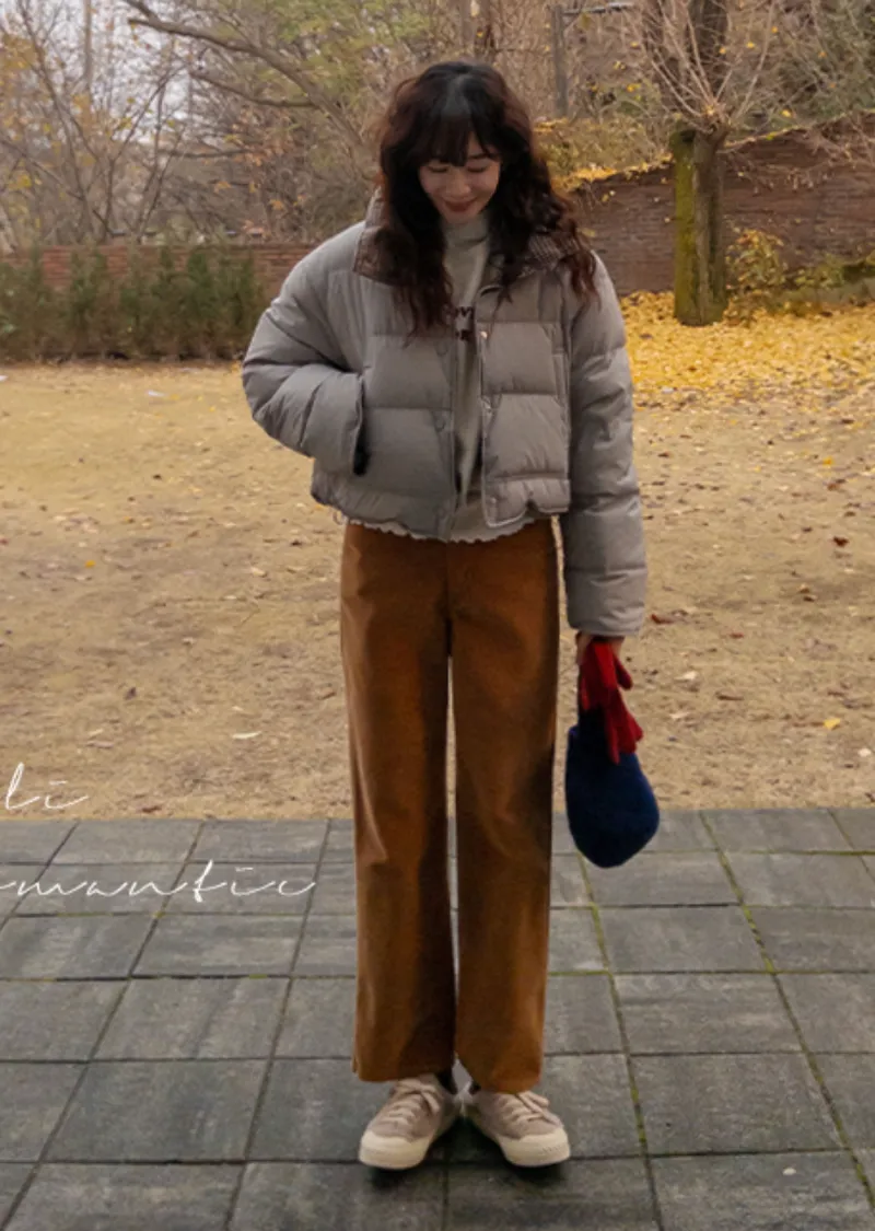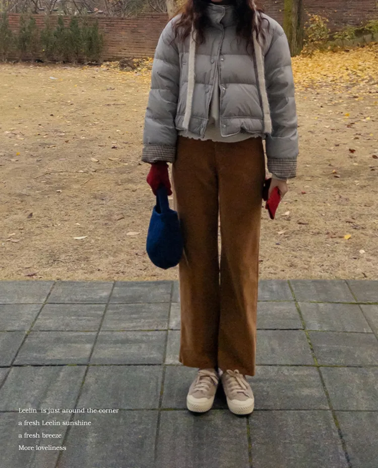 [燈芯絨布料,整個冬天穿起來既漂亮又溫暖] [基本設計很漂亮,顏色點綴] [3% 氨綸和後腰帶,全天舒適 ~] [直長,遮蓋腿部線條貼合]