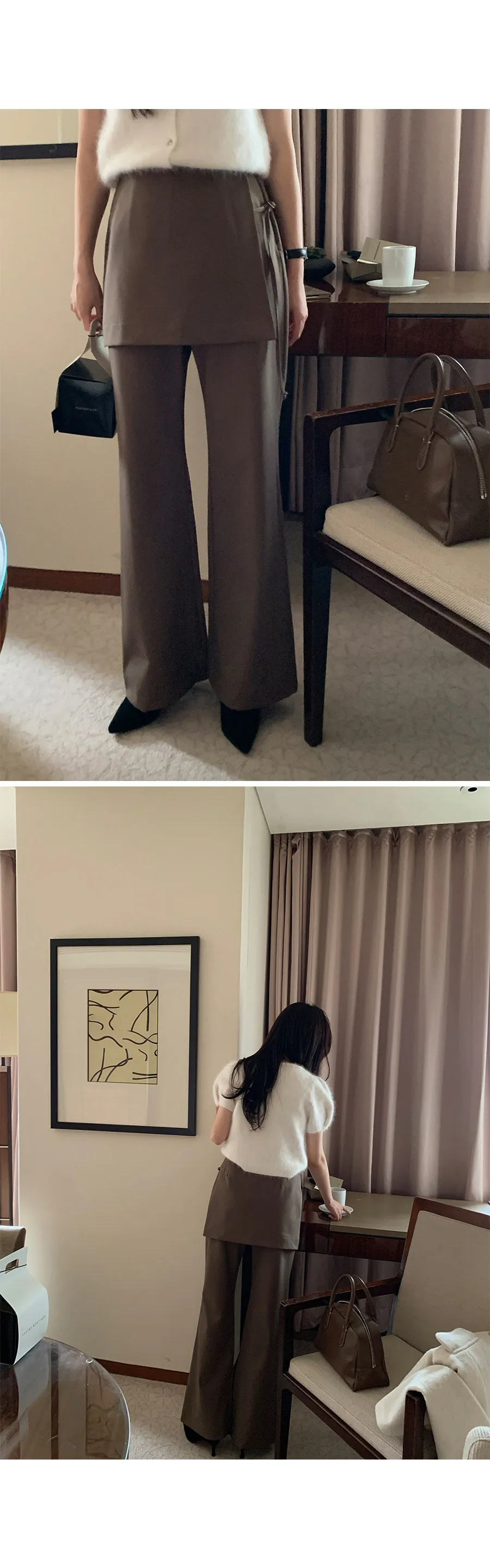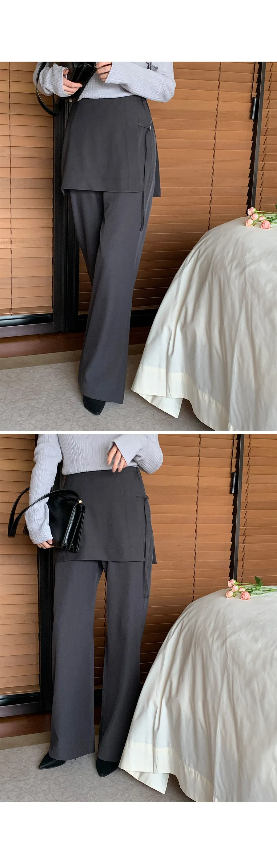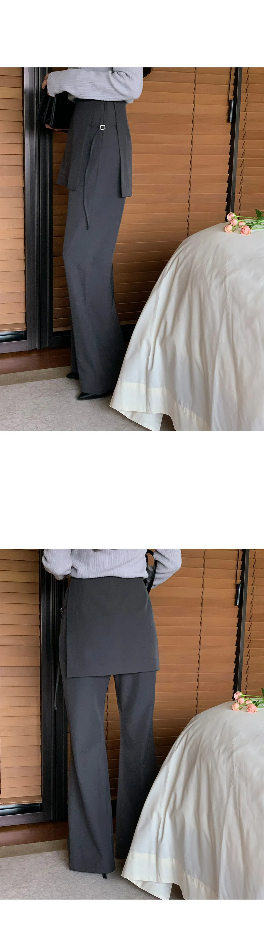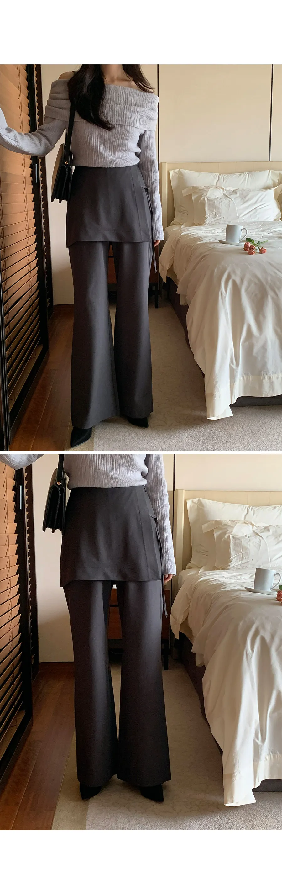 時尚氣息搭配側方扣帶分層裙的絨質微靴剪裁休閒褲