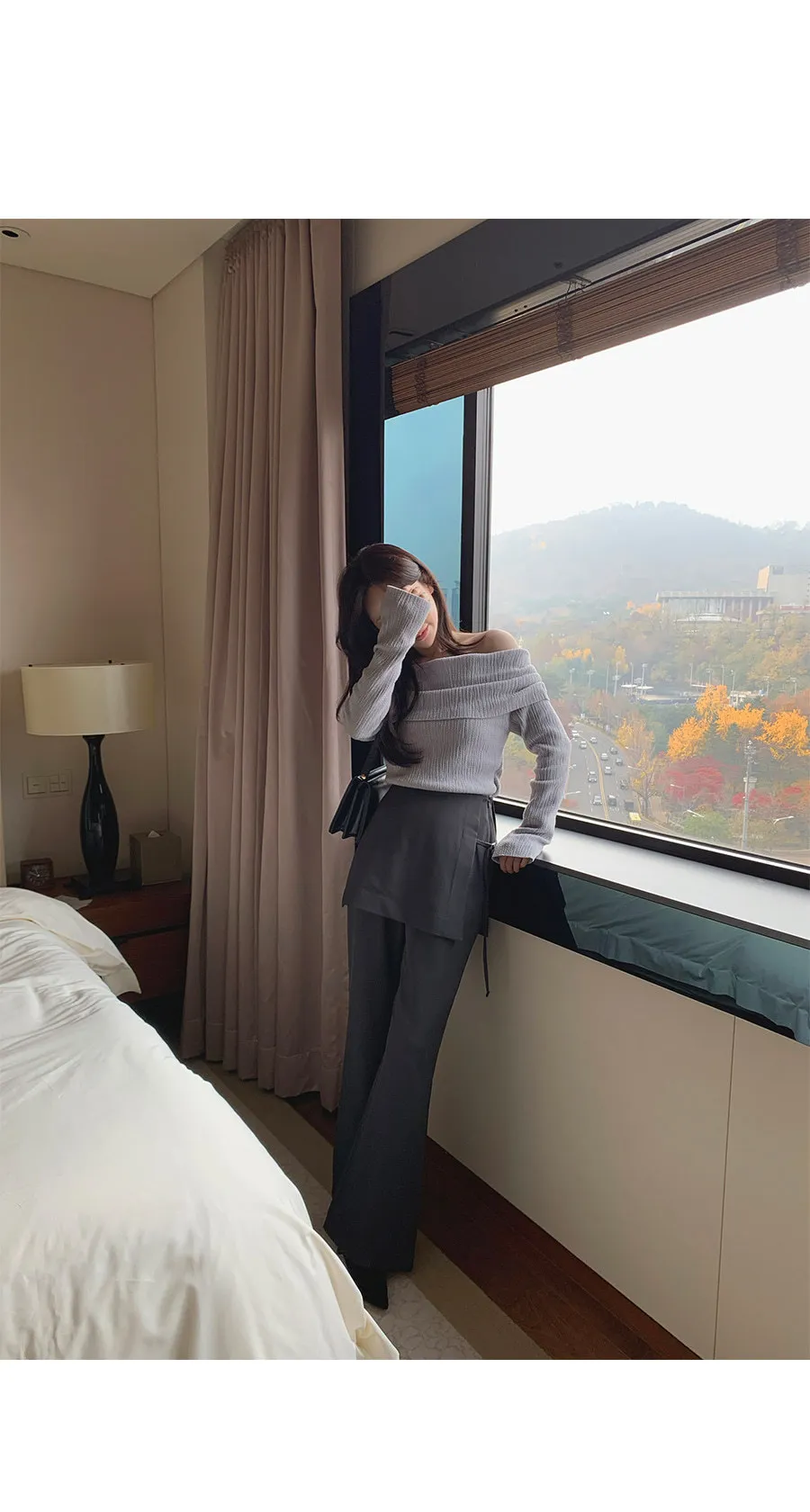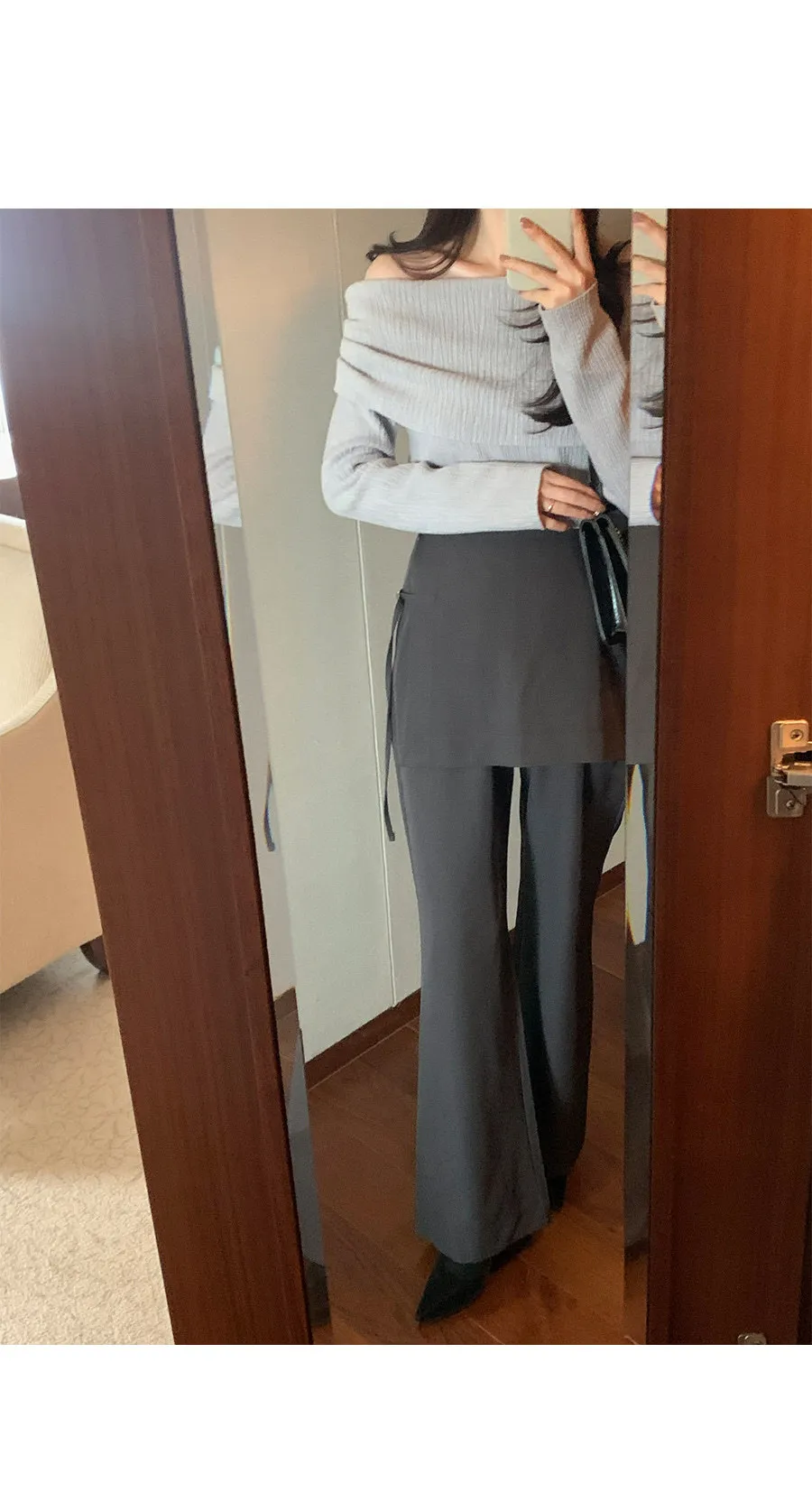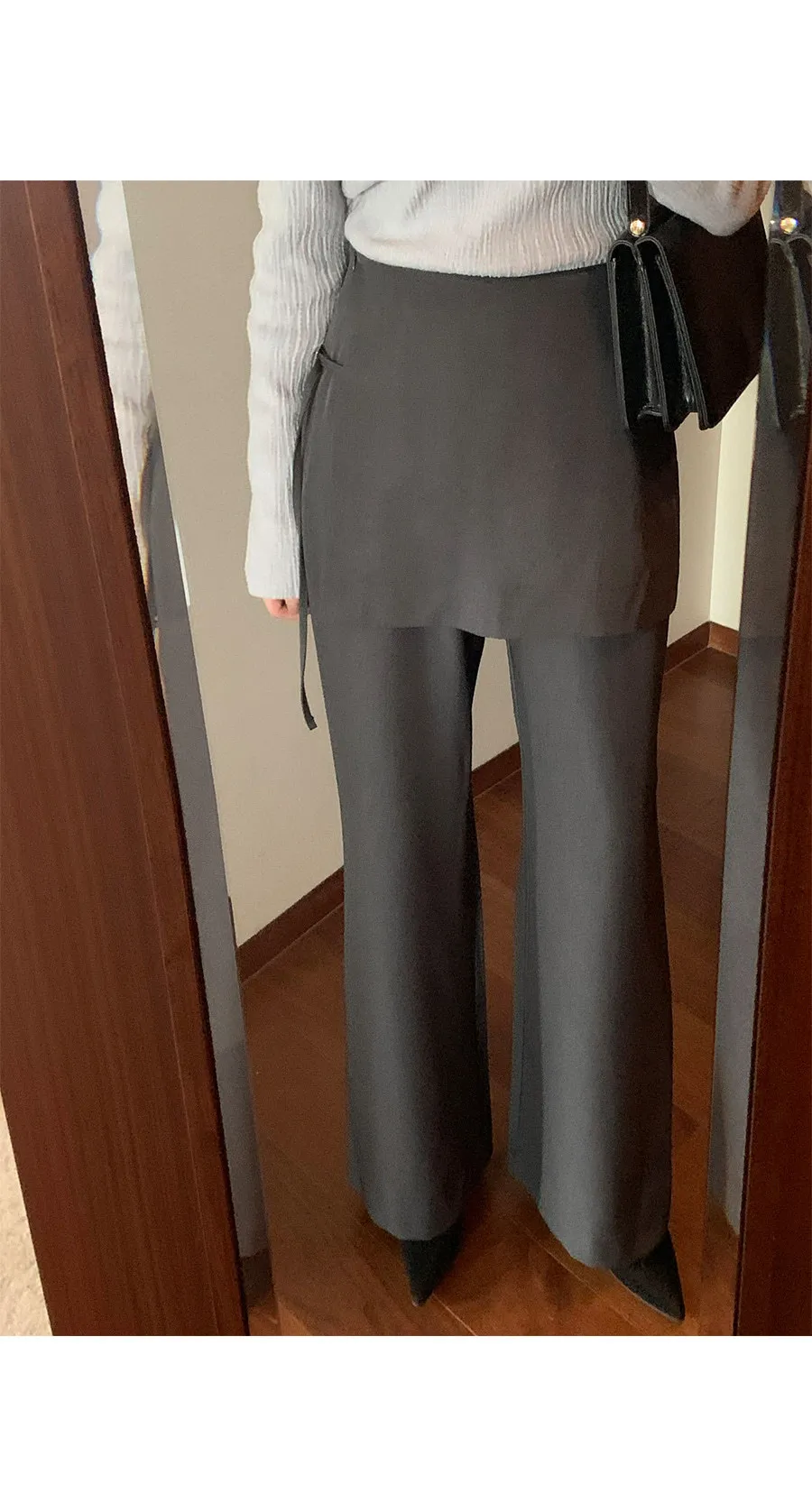 時尚氣息搭配側方扣帶分層裙的絨質微靴剪裁休閒褲