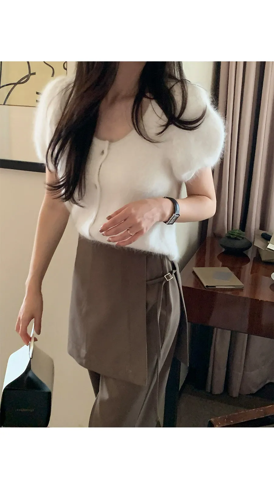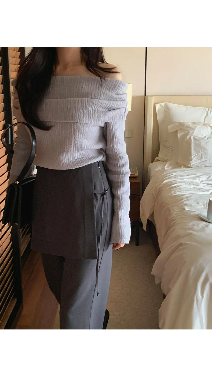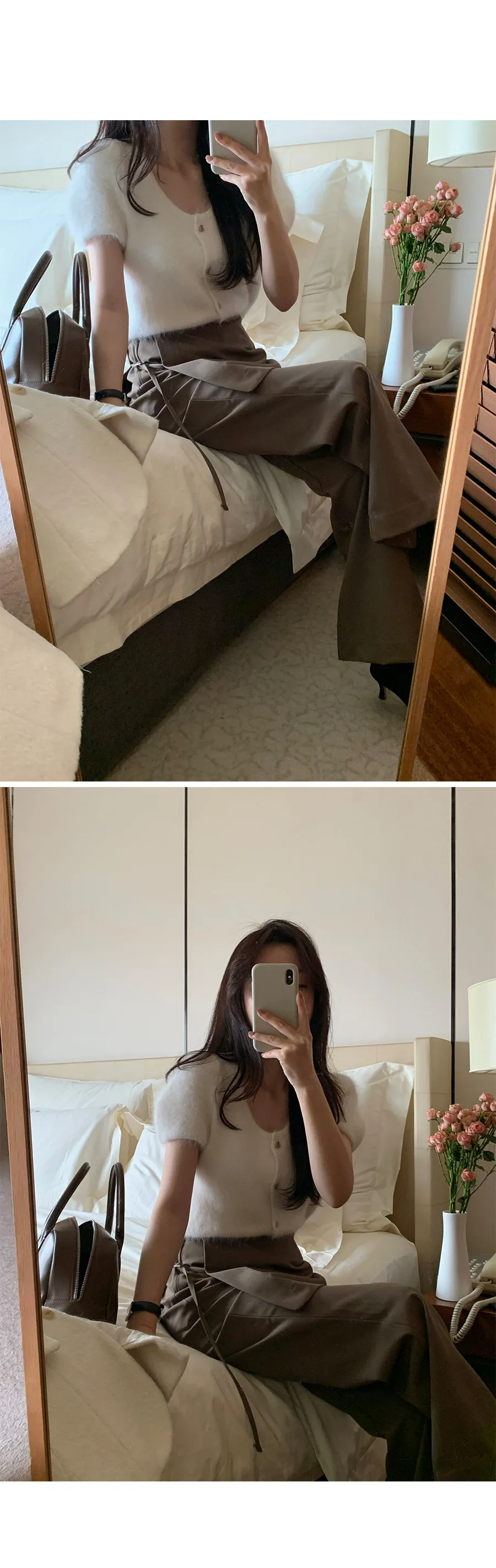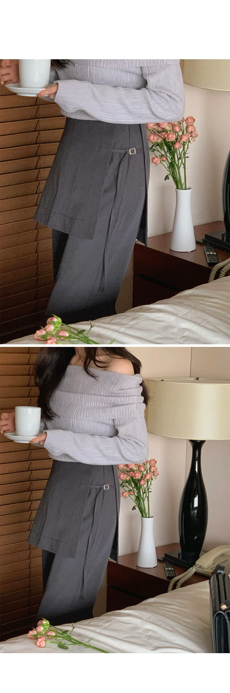 時尚氣息搭配側方扣帶分層裙的絨質微靴剪裁休閒褲