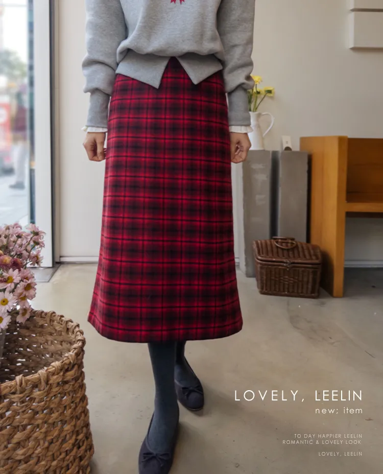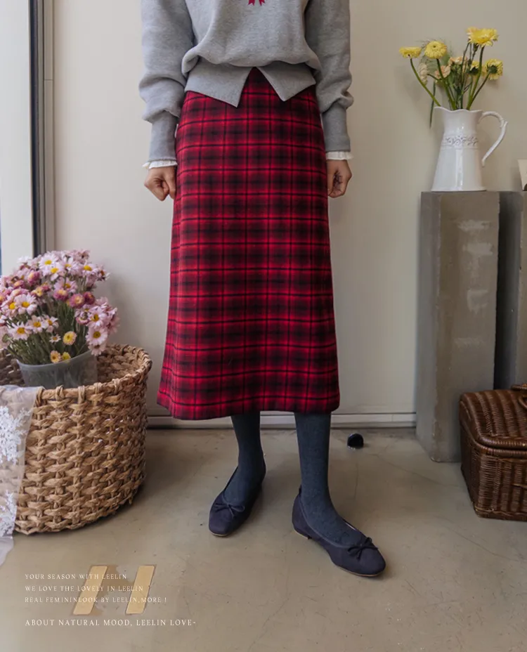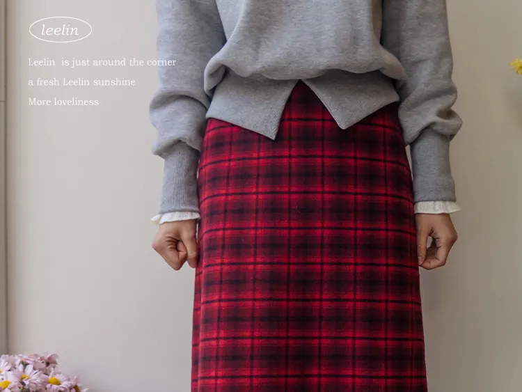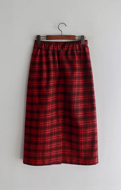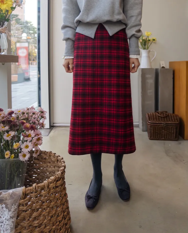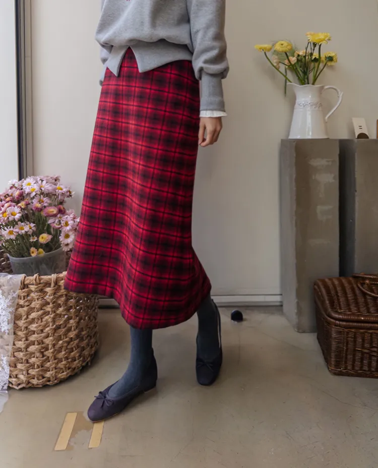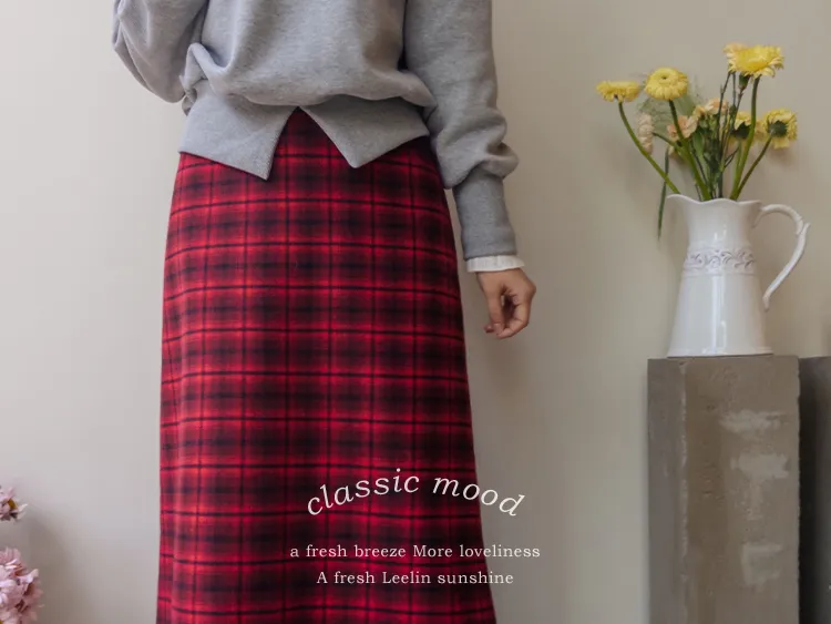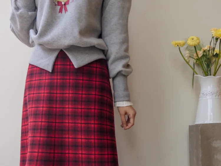 【格紋最適合年終造型♥】【厚實的羊毛材質非常適合冬天穿~】【下擺開衩細節和後腰綁帶增加舒適度! 】【半A字+長款完美下半身線條