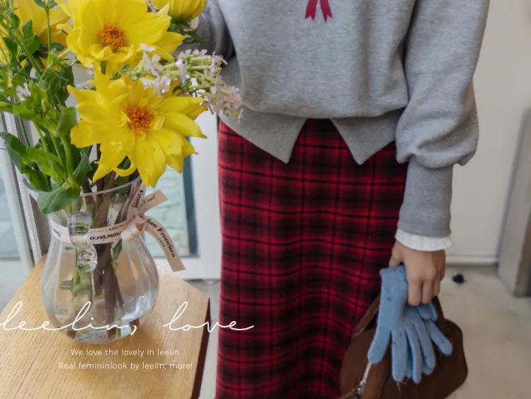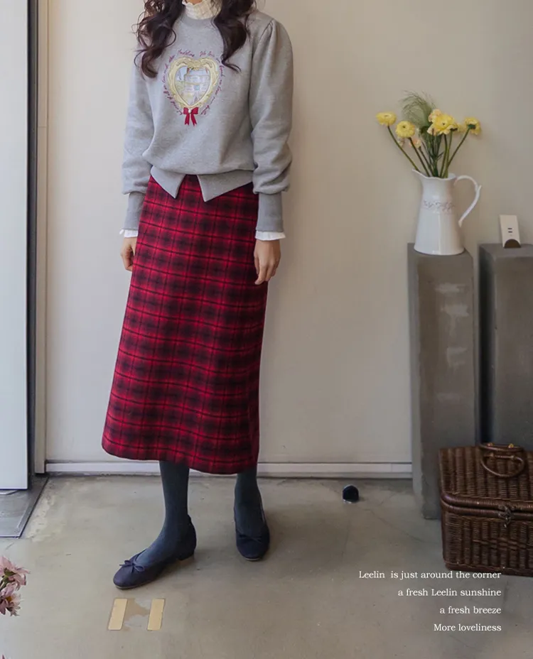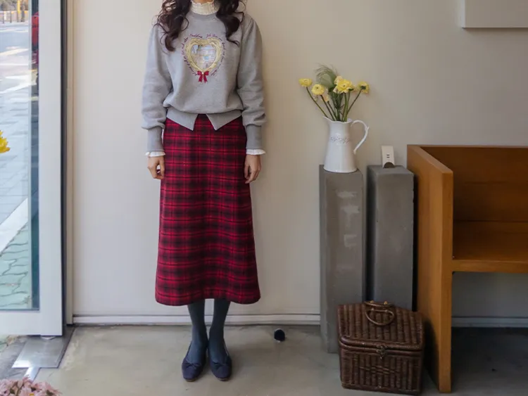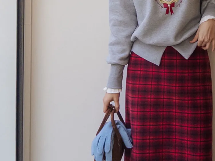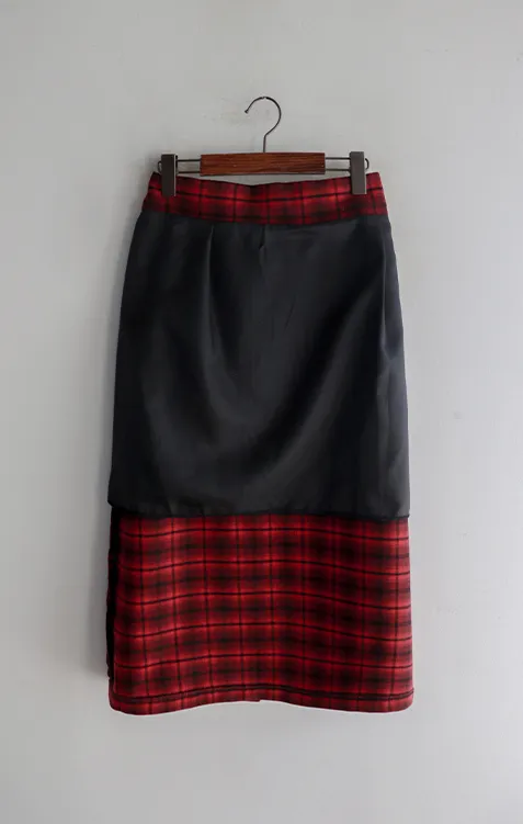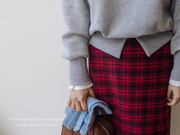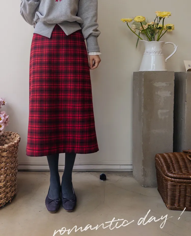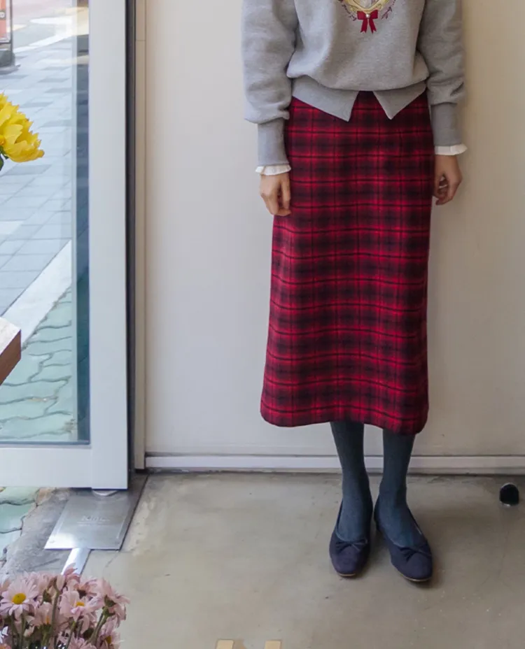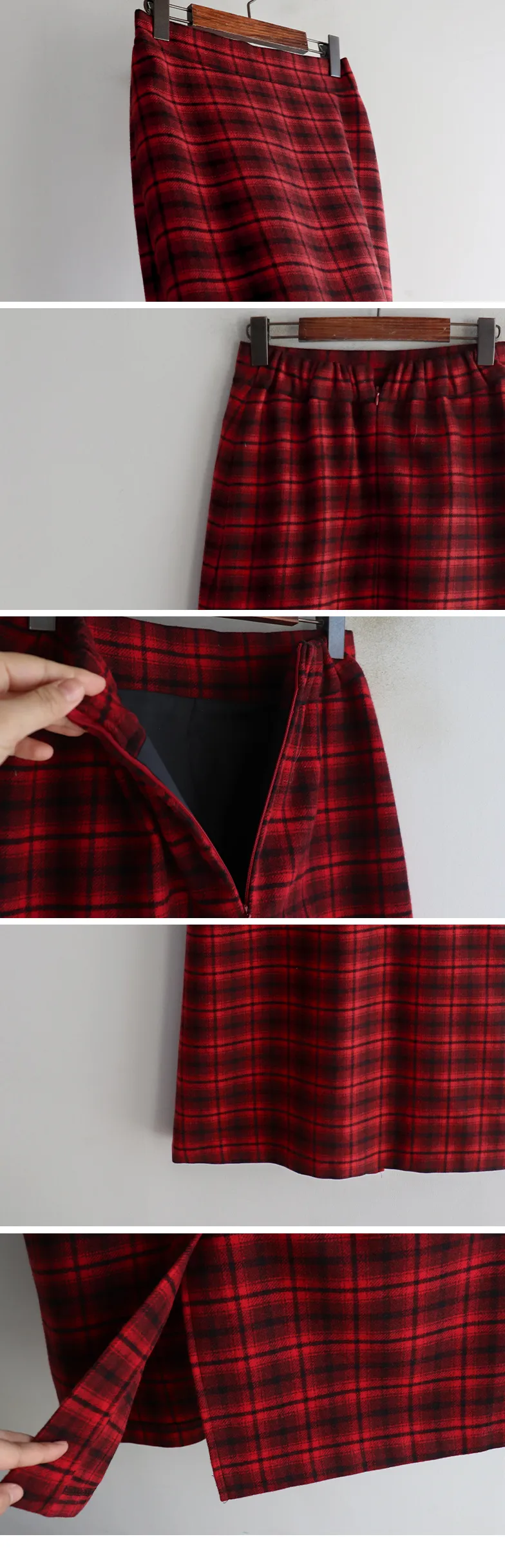 【格紋最適合年終造型♥】【厚實的羊毛材質非常適合冬天穿~】【下擺開衩細節和後腰綁帶增加舒適度! 】【半A字+長款完美下半身線條