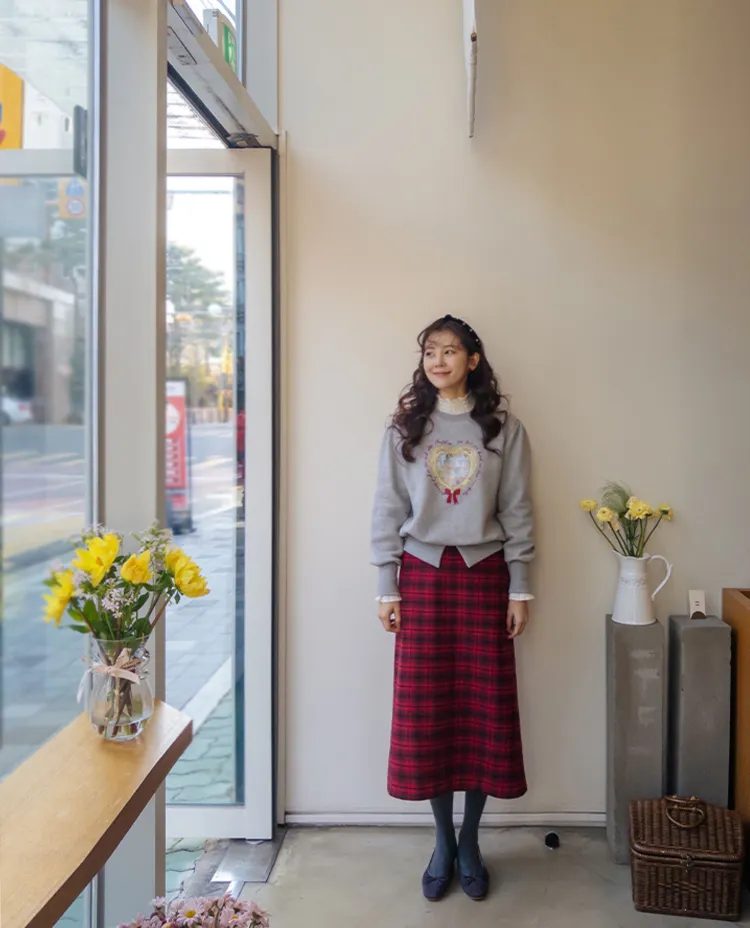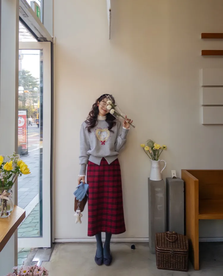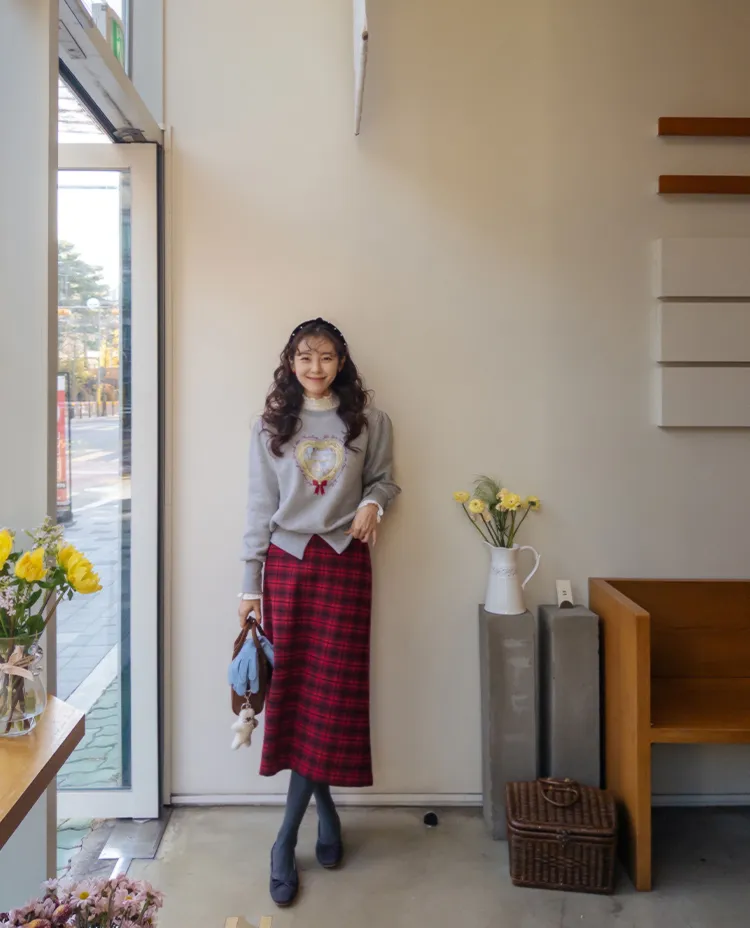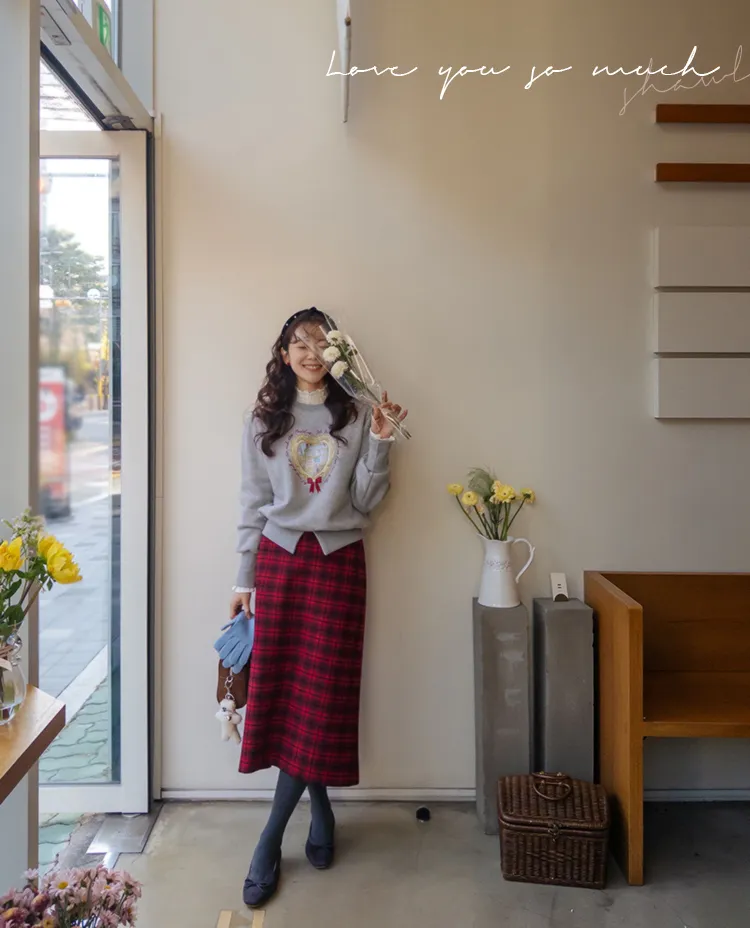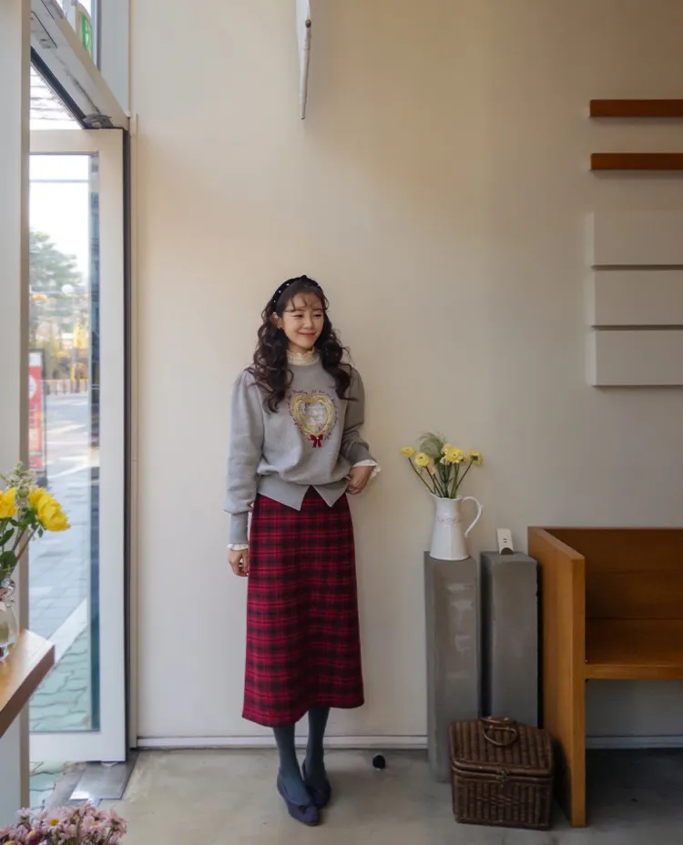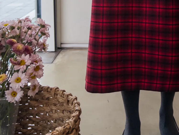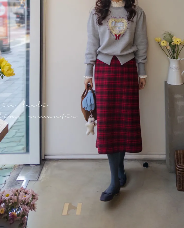 【格紋最適合年終造型♥】【厚實的羊毛材質非常適合冬天穿~】【下擺開衩細節和後腰綁帶增加舒適度! 】【半A字+長款完美下半身線條