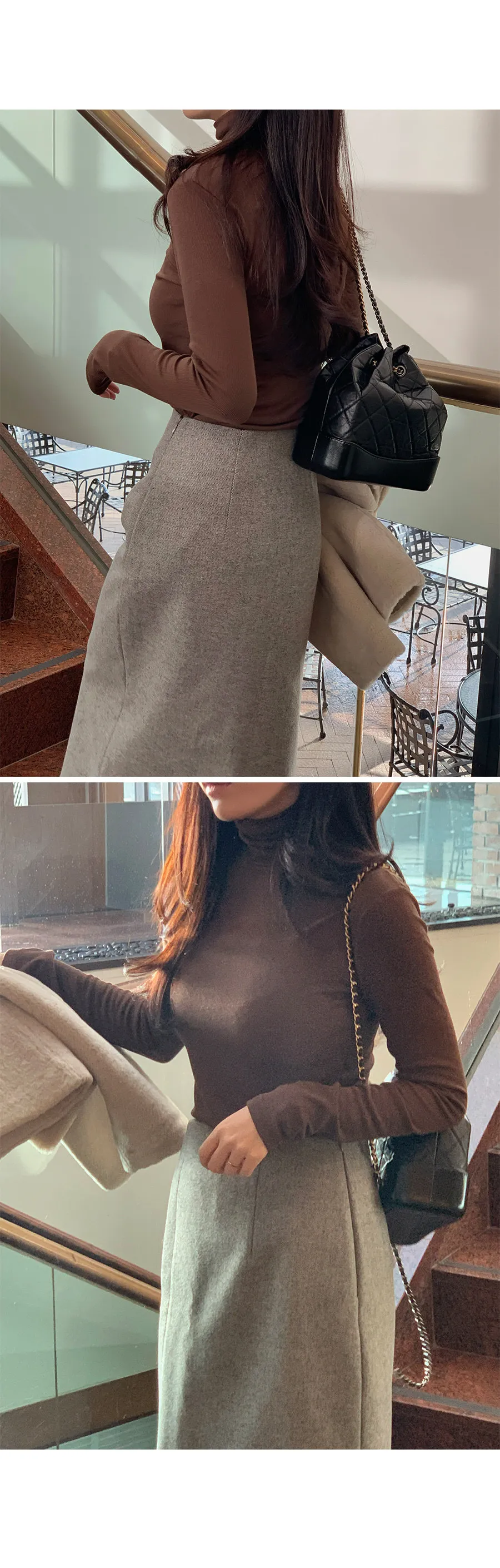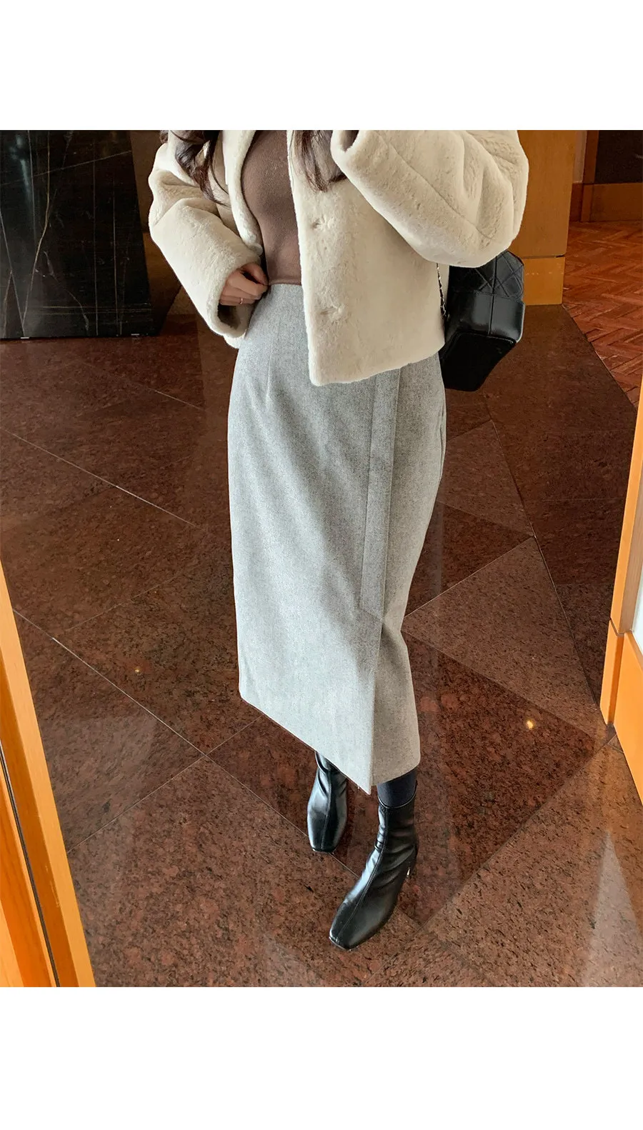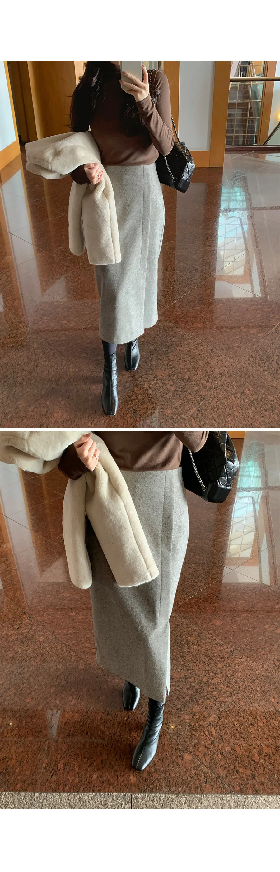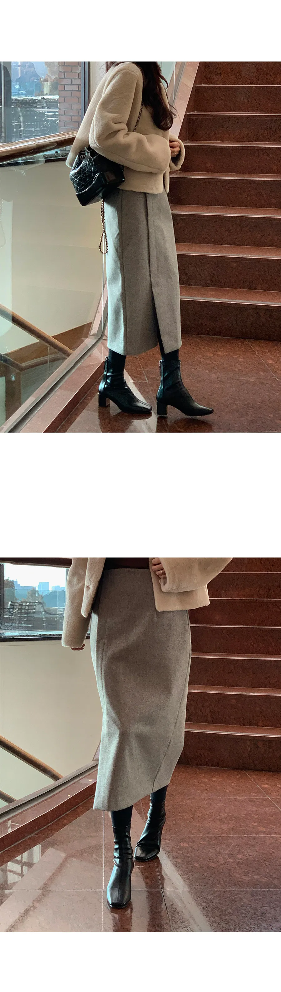 俐落直筒版型接縫開衩設計羊毛中長裙