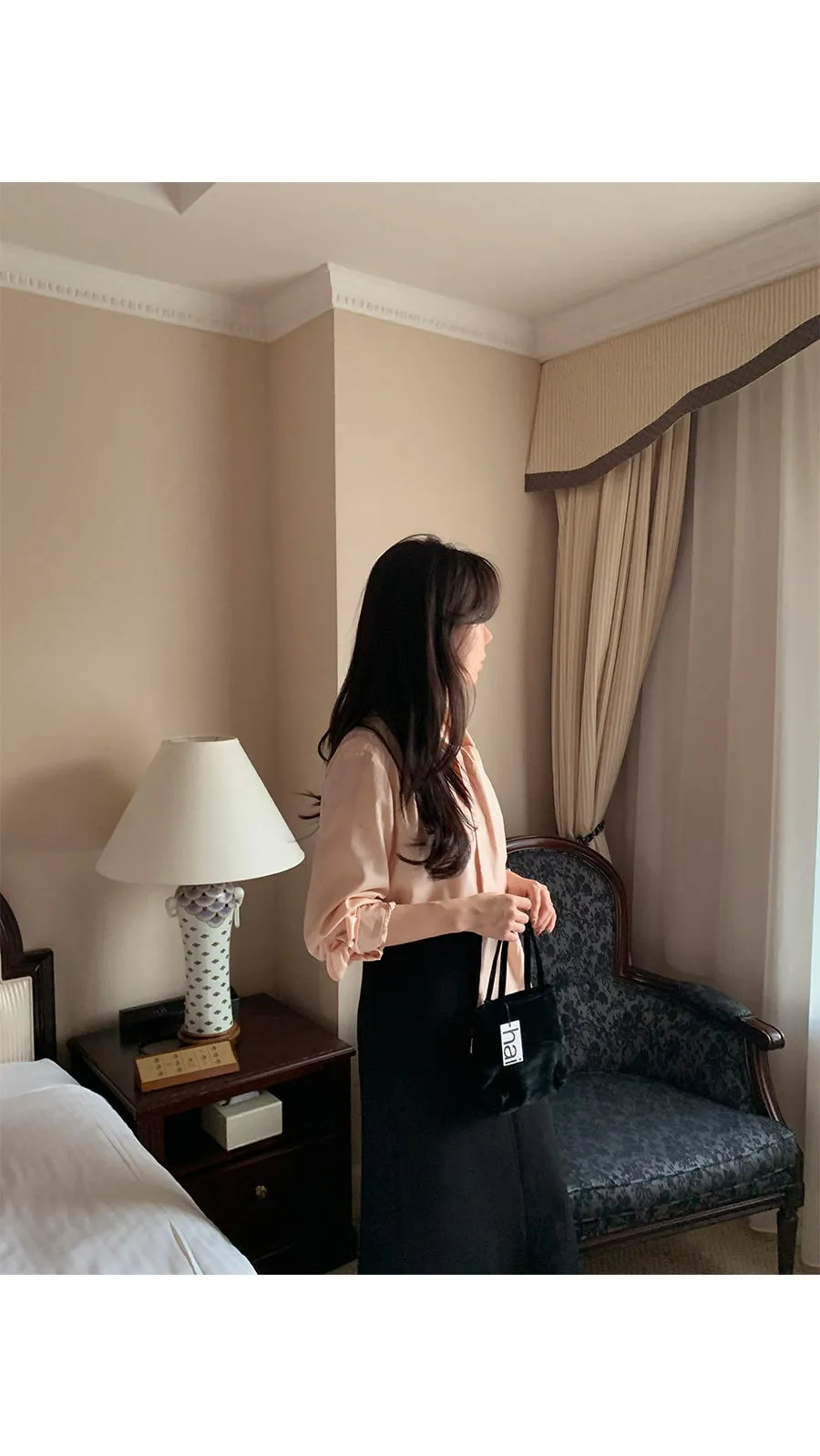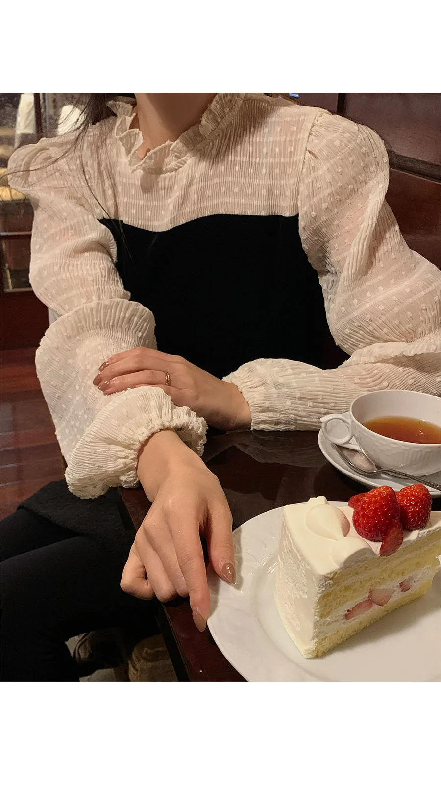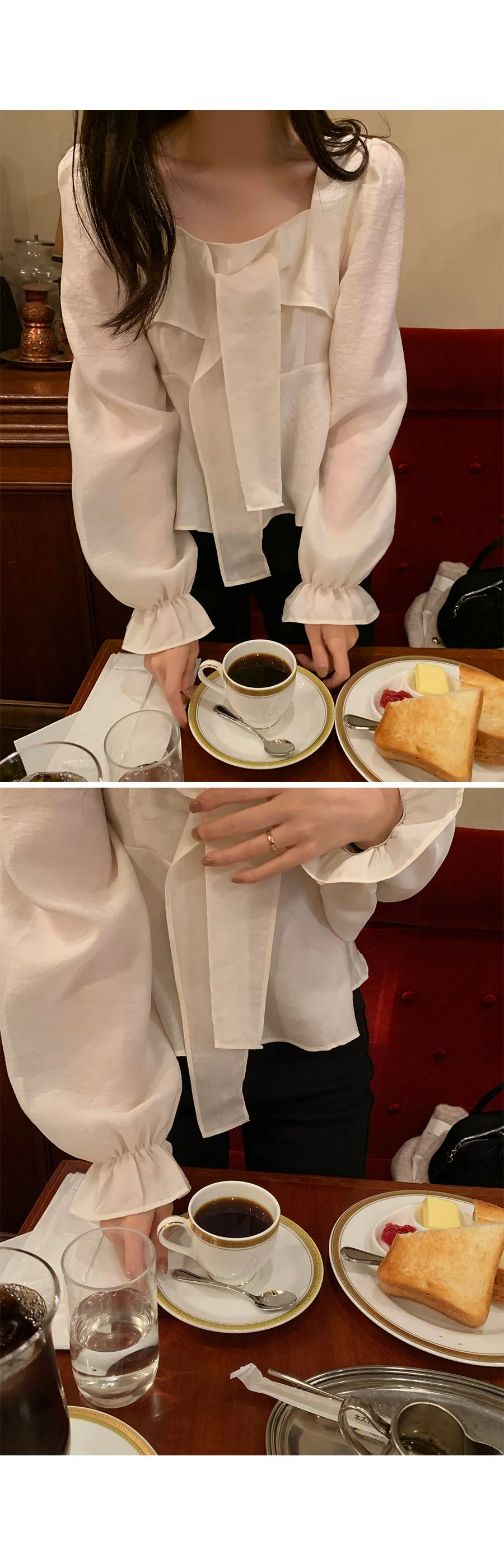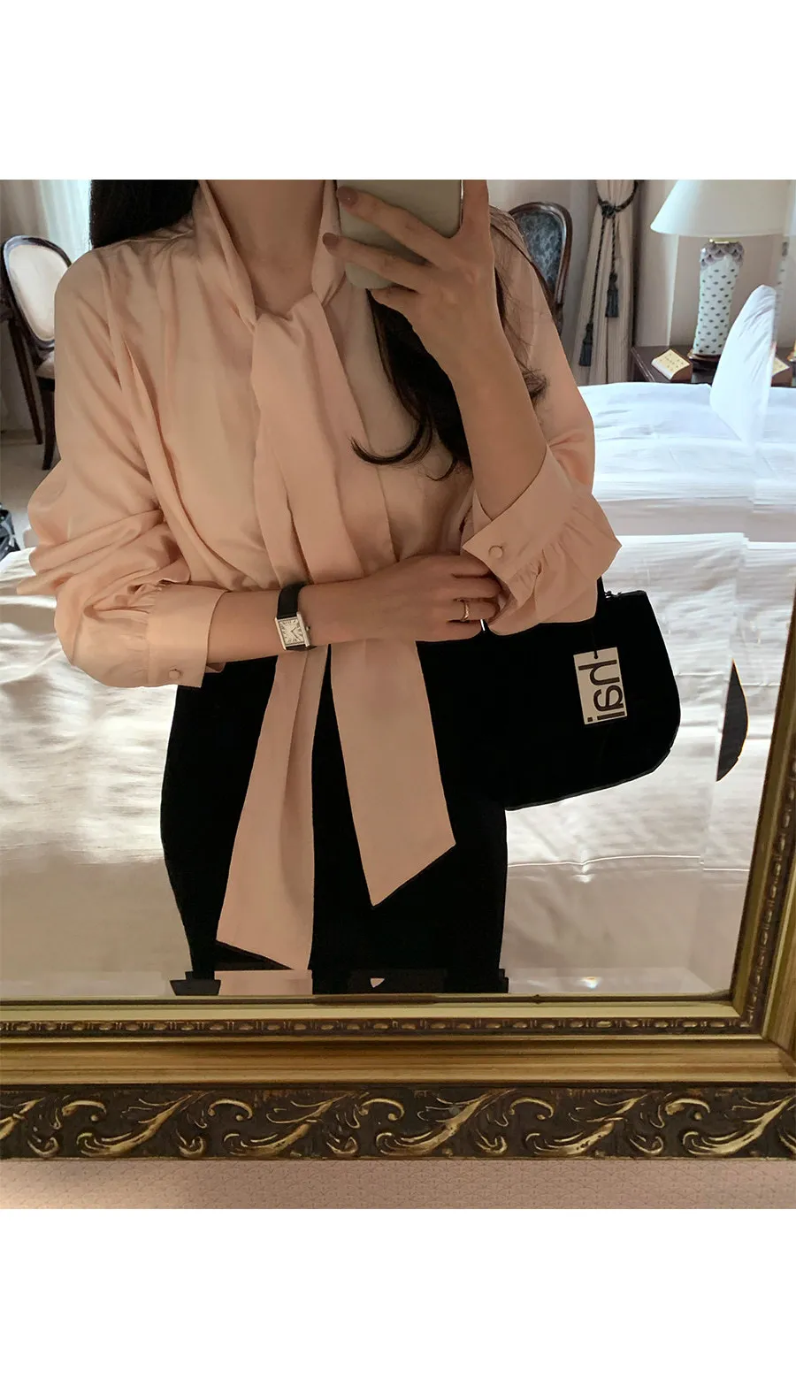 奢華氛圍微光側領綁帶肩線針褶排扣上衣