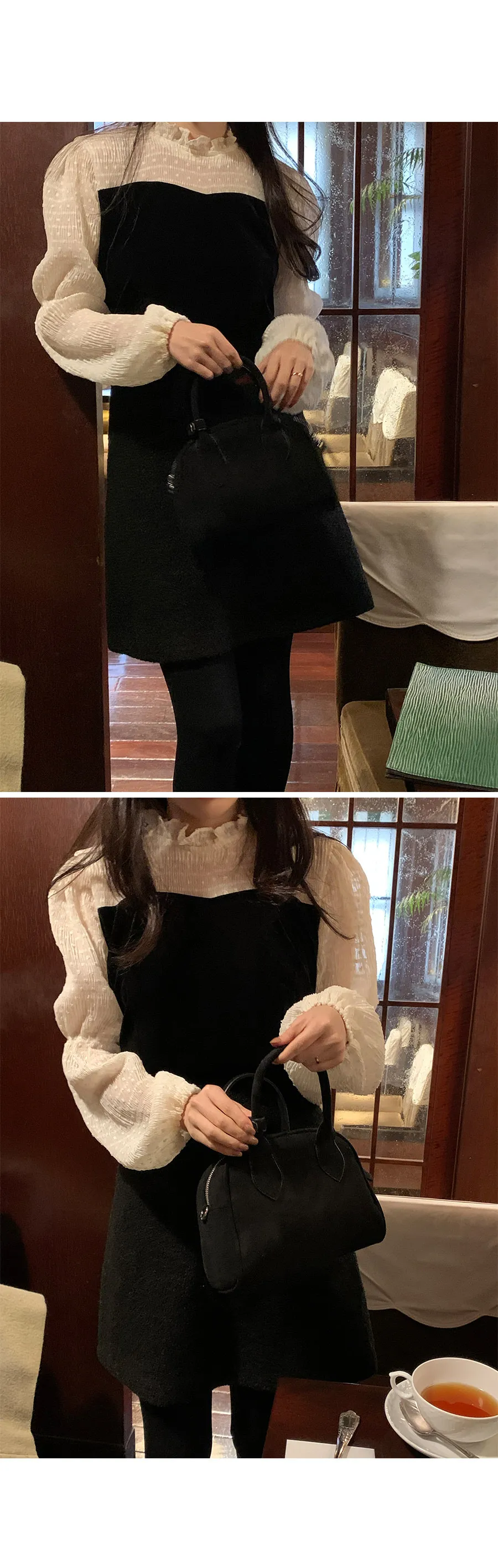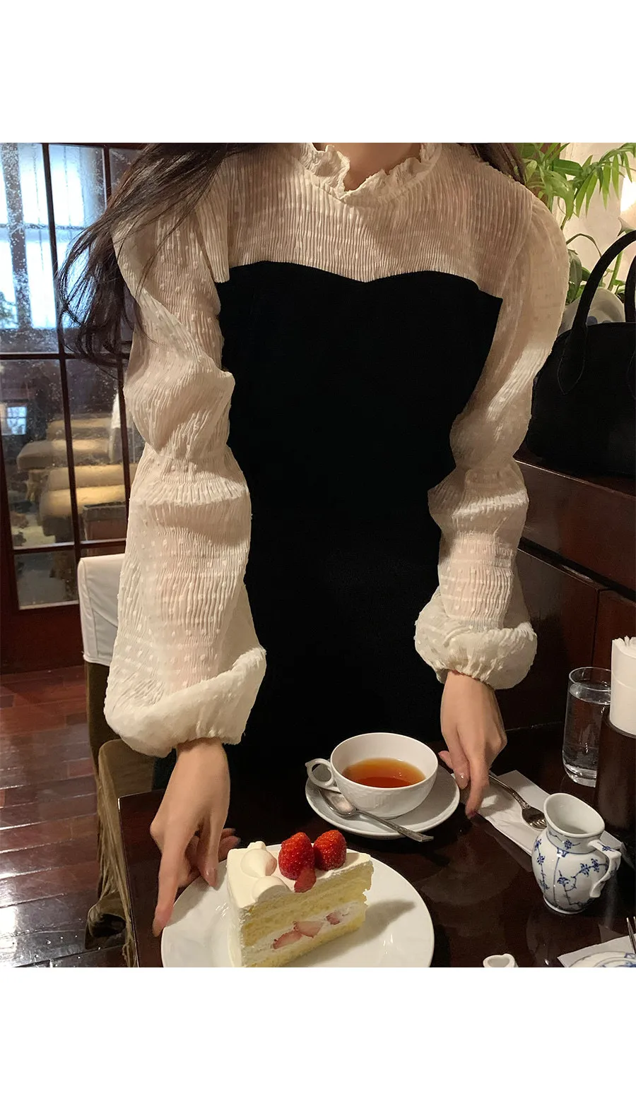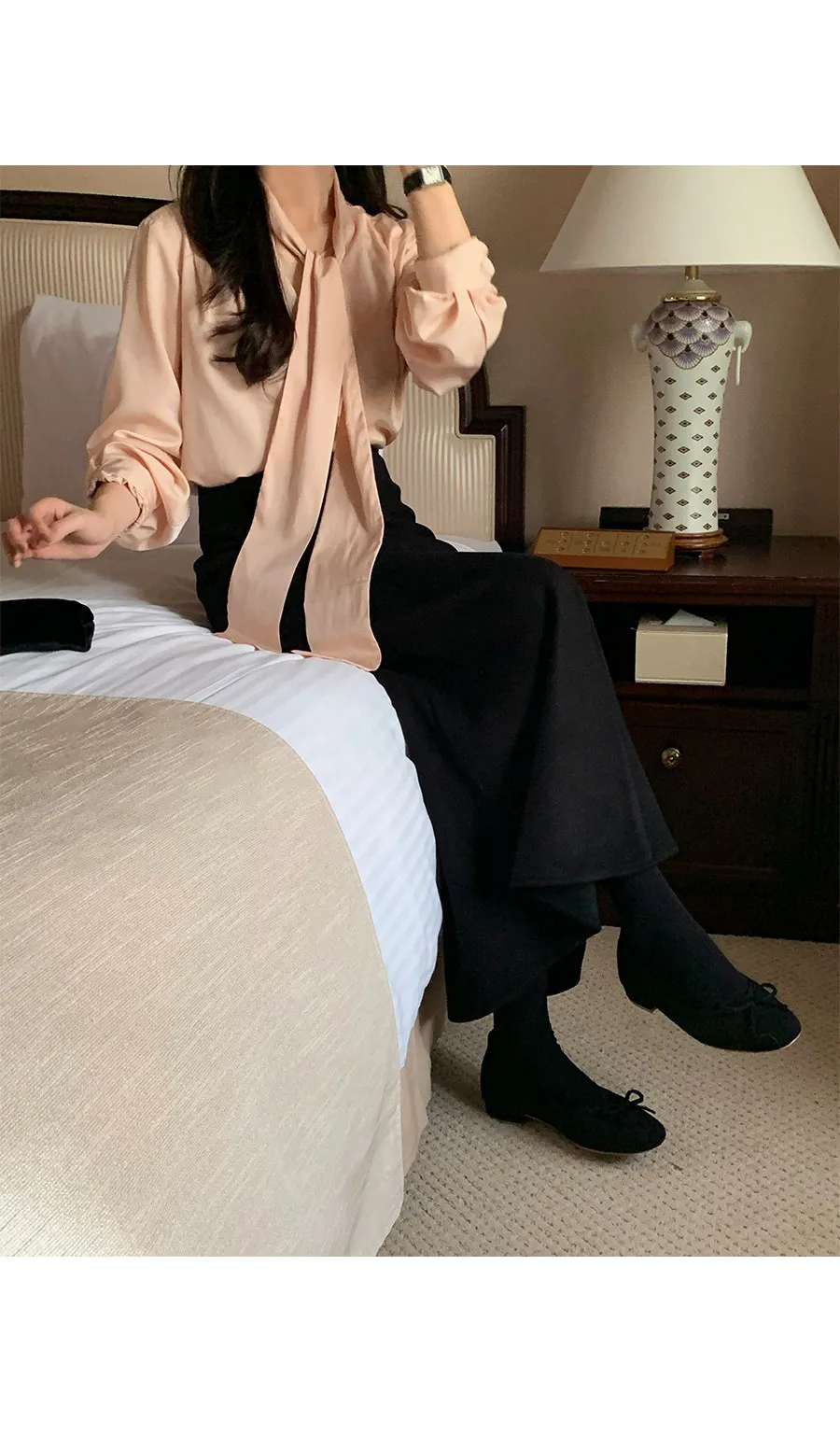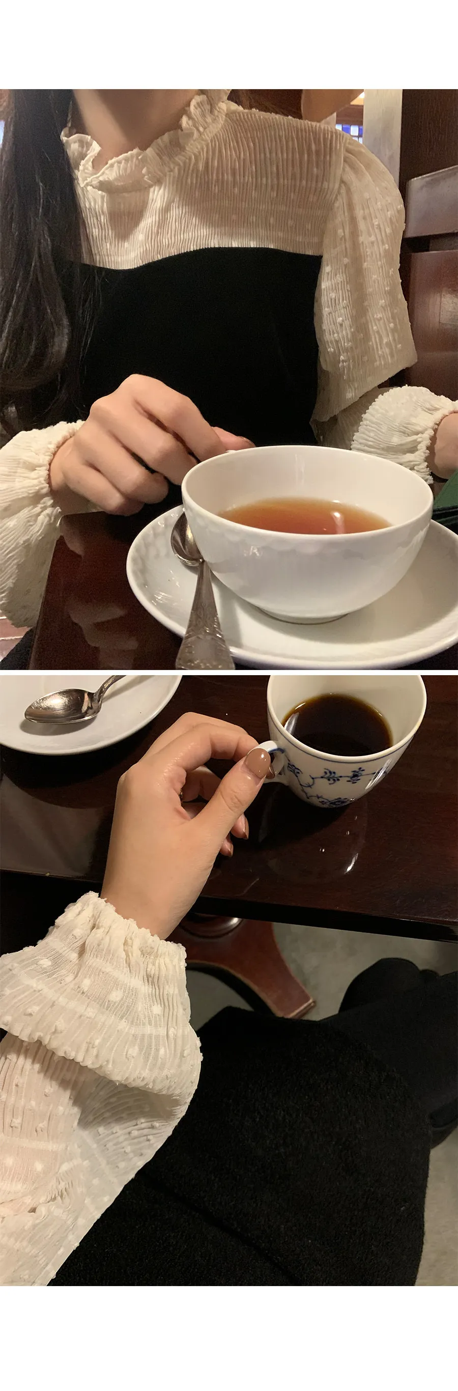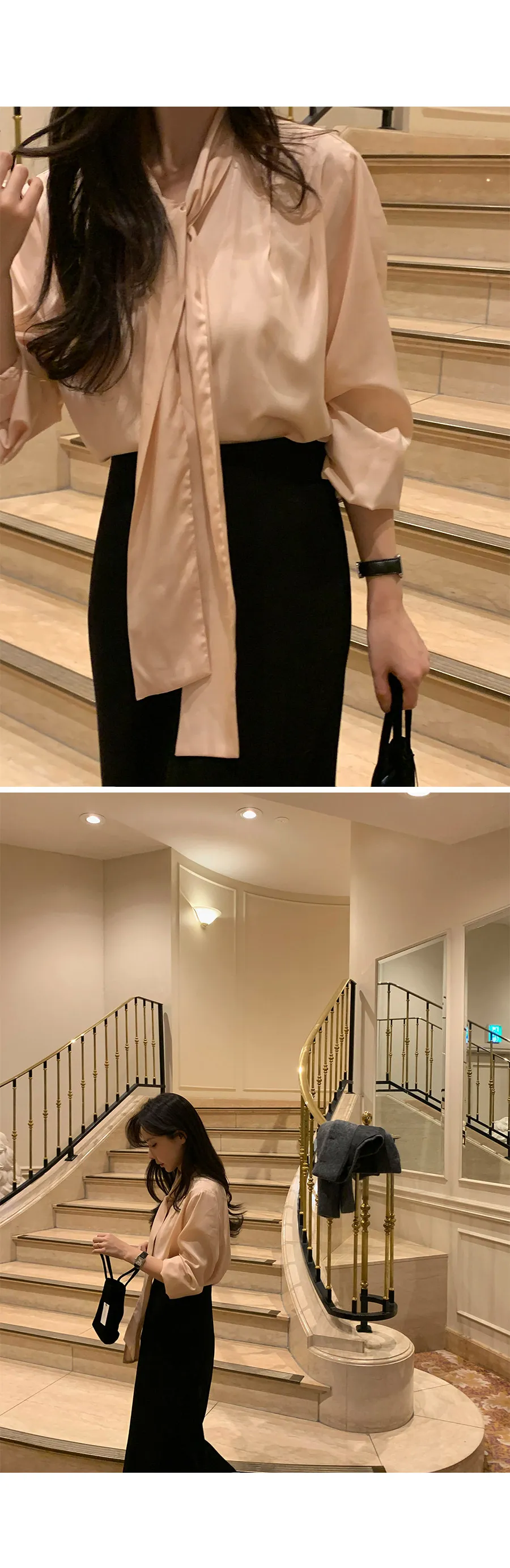 奢華氛圍微光側領綁帶肩線針褶排扣上衣