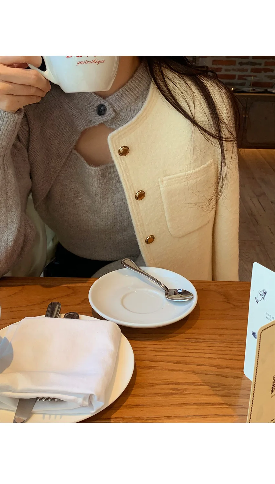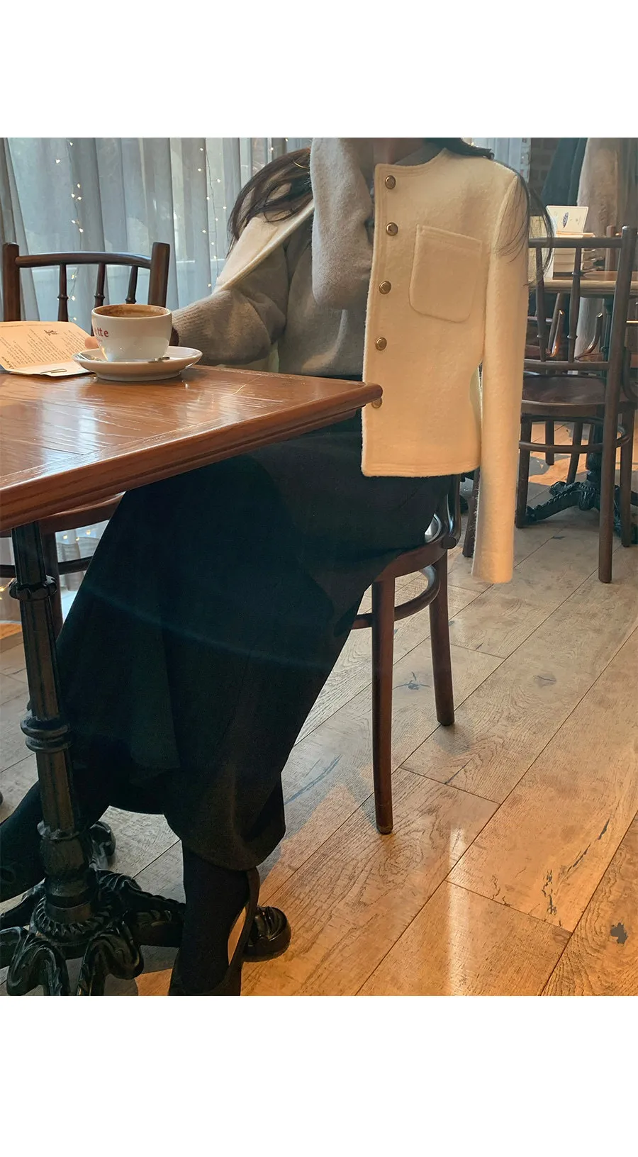 奢華氛圍簡潔版型純羊毛金釦口袋花呢外套