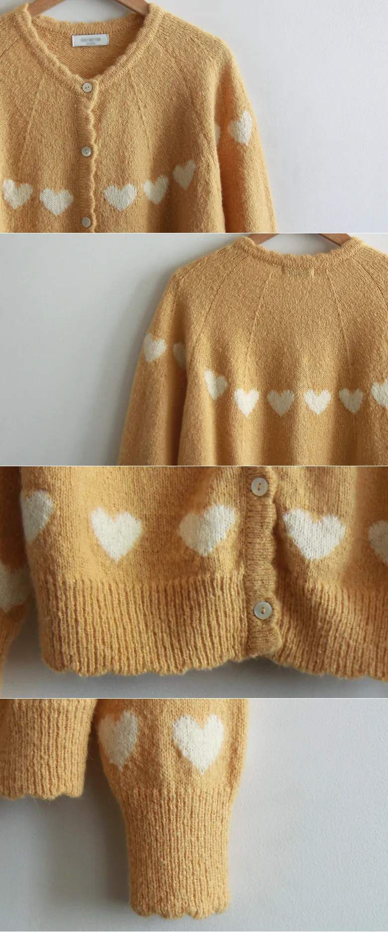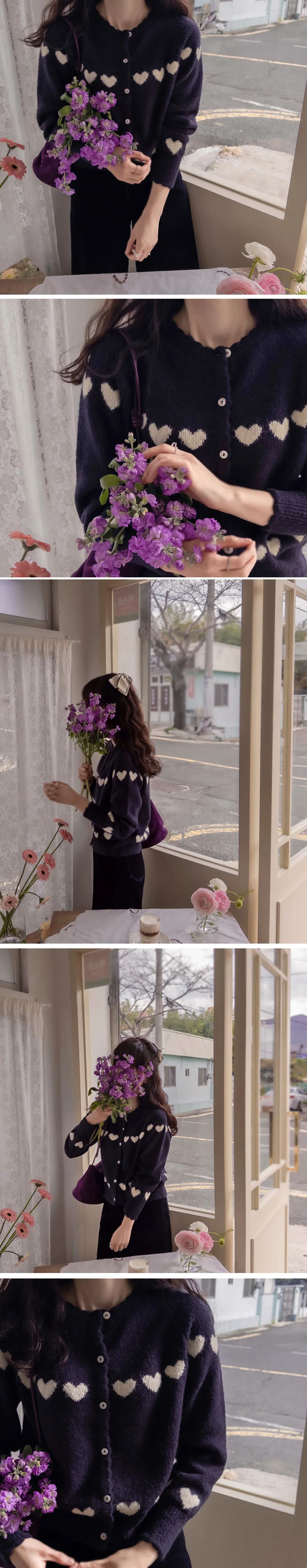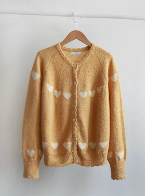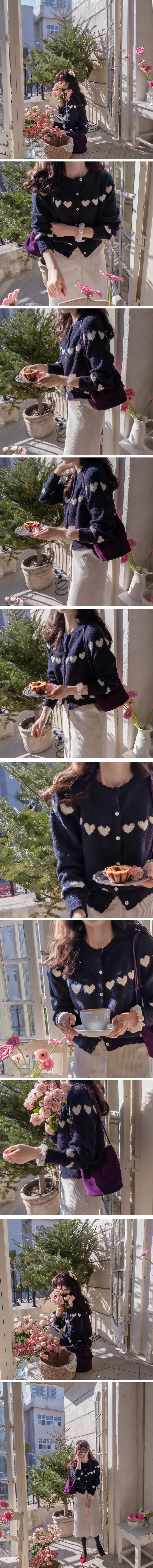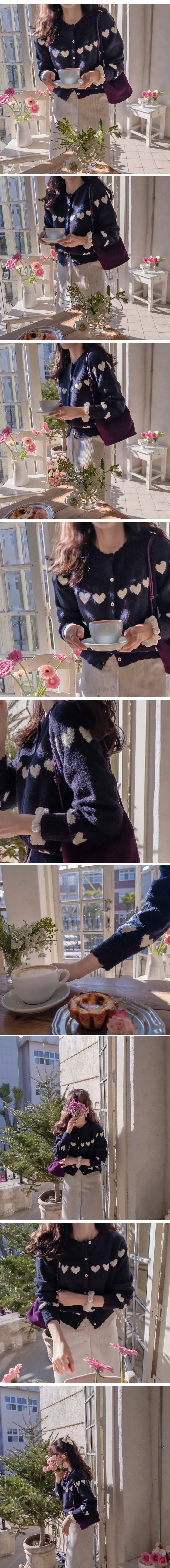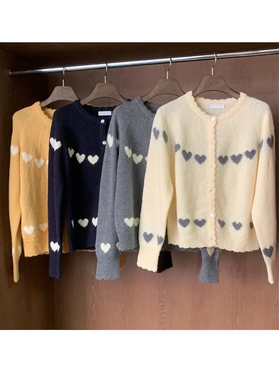 柔和波浪領邊心形圖案針織開衫