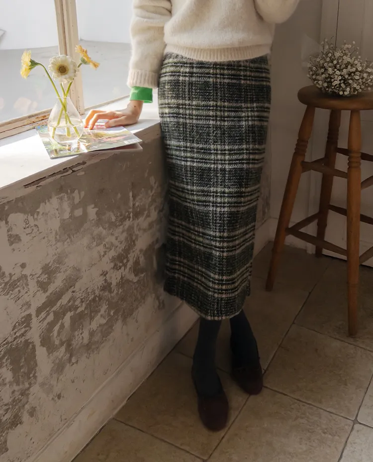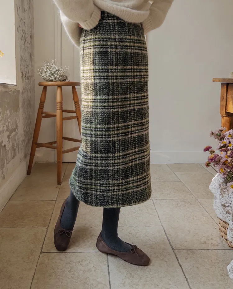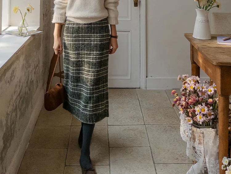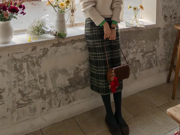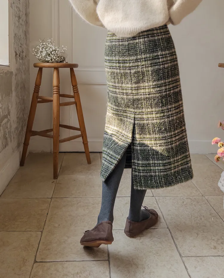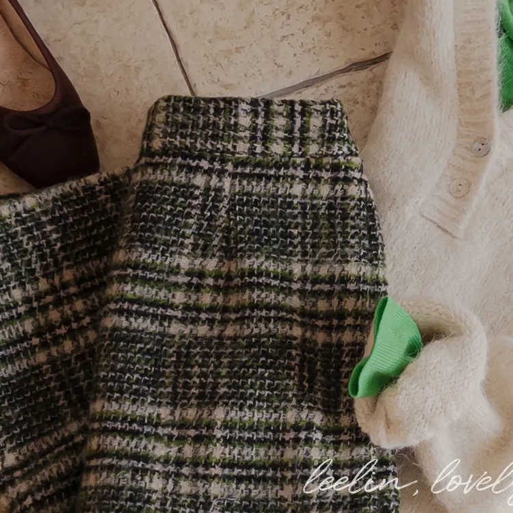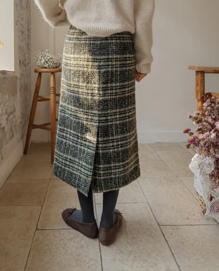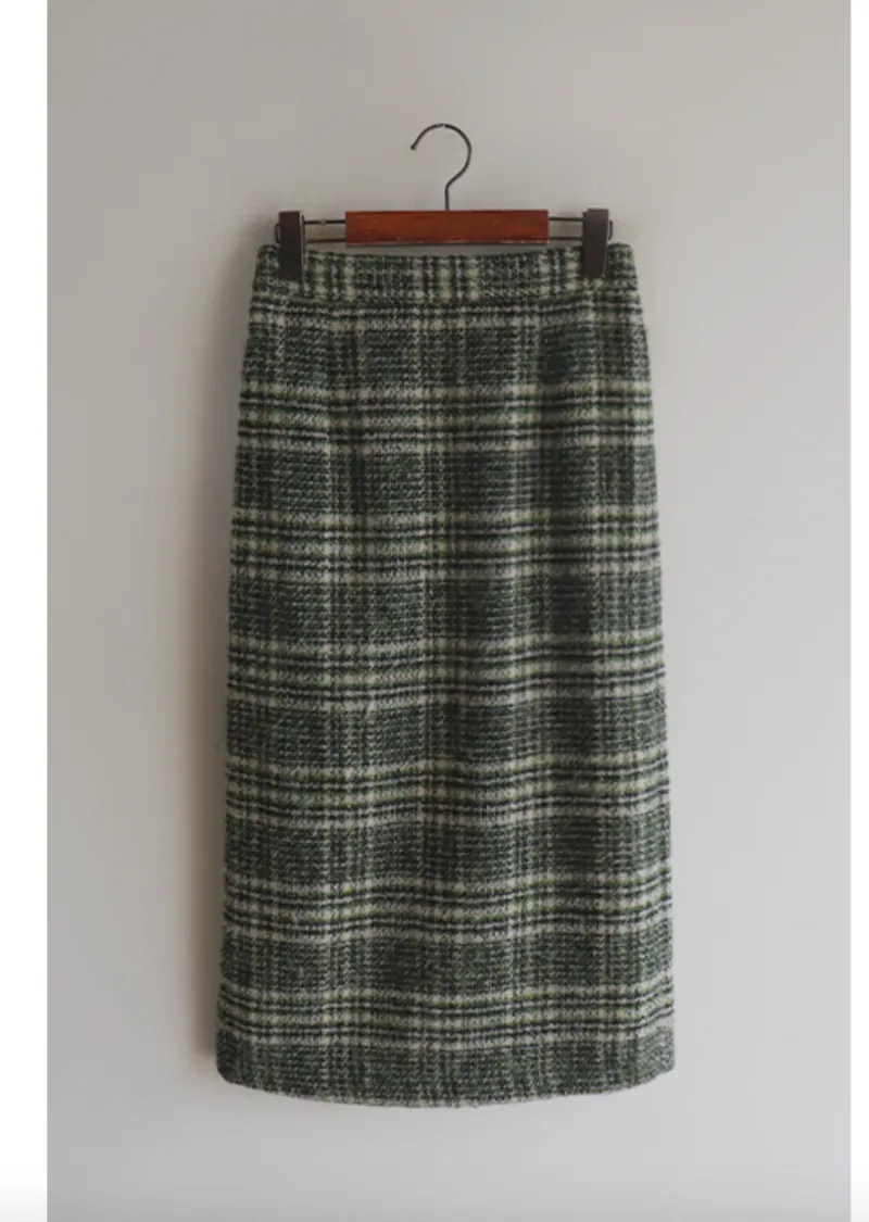【含有20%羊毛的厚重裙子,冬天也能穿】【經典格紋,打造時尚穿搭! 】【H線條顯瘦,增加收藏價值~】 [腰帶和後開衩增加了靈活性]