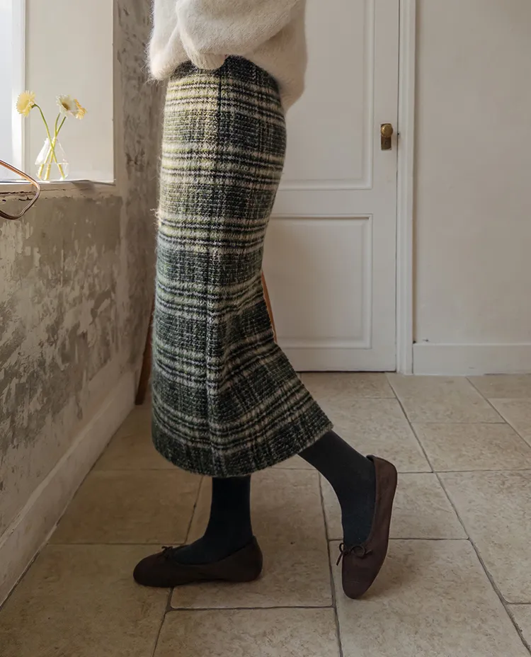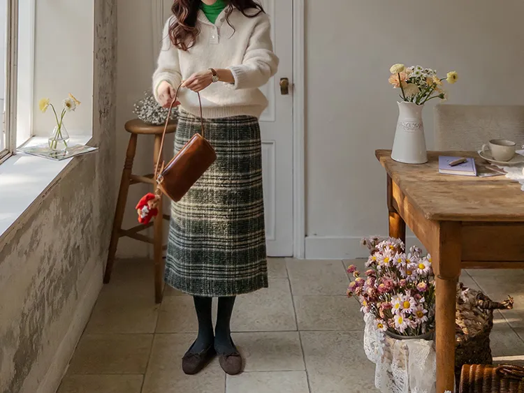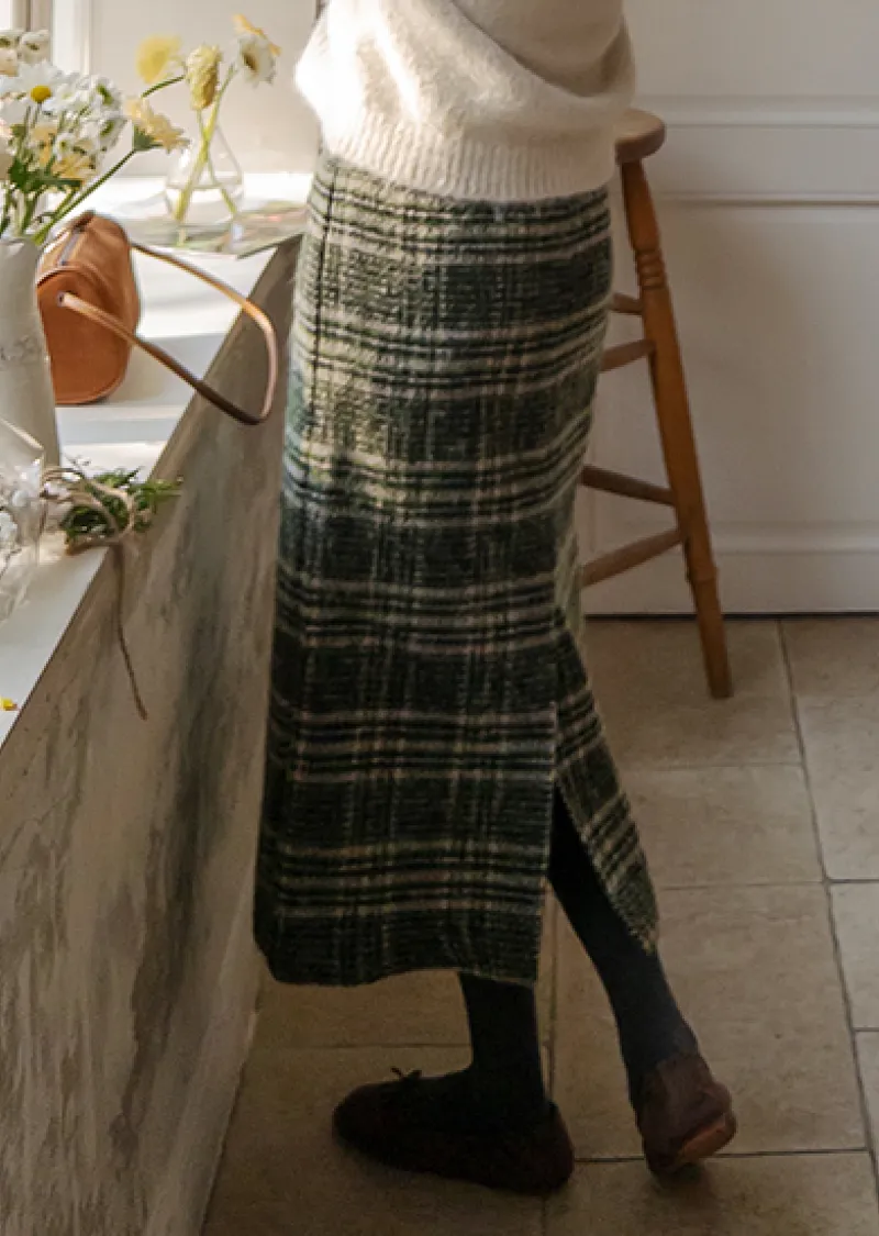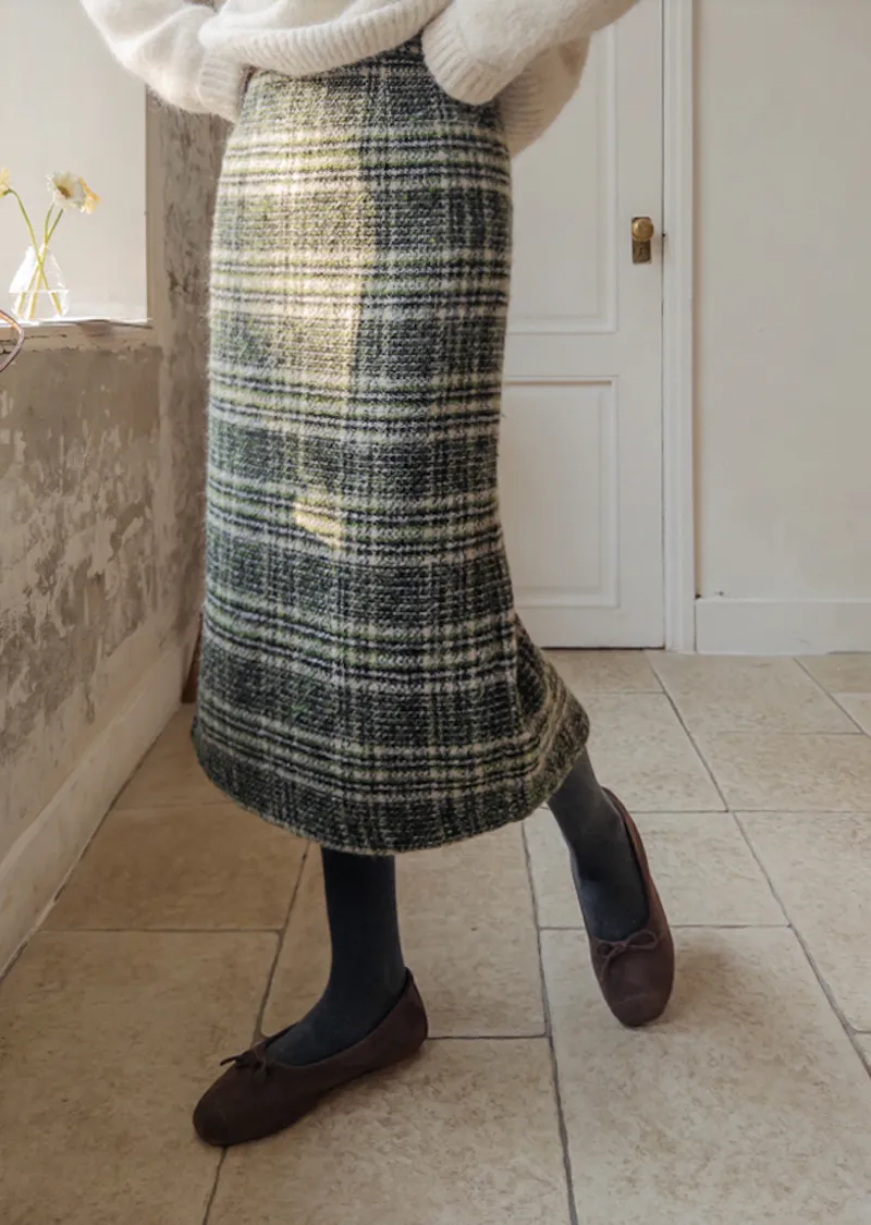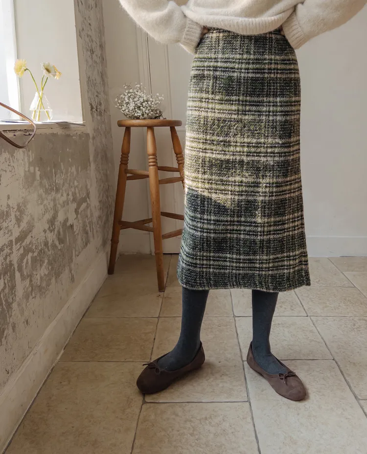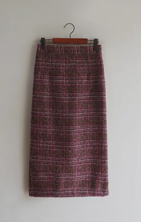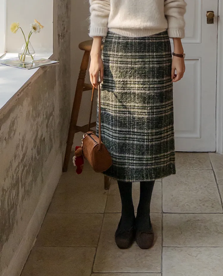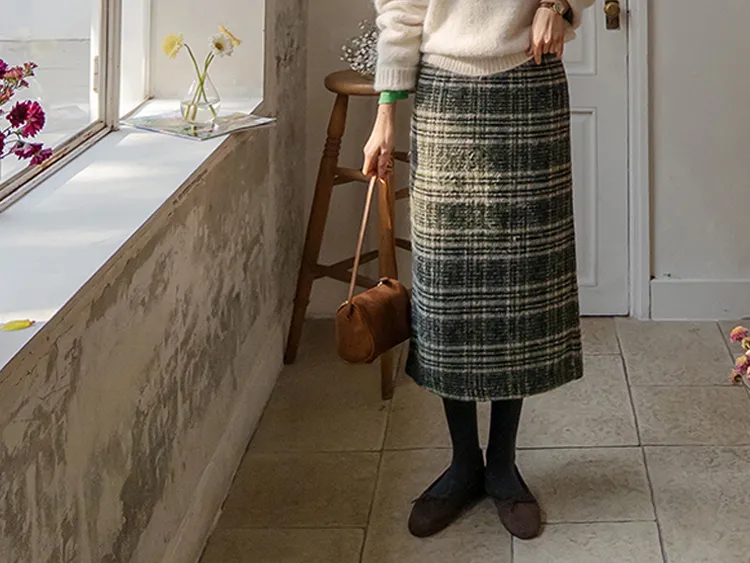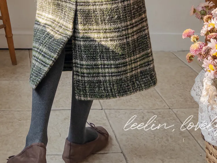 【含有20%羊毛的厚重裙子,冬天也能穿】【經典格紋,打造時尚穿搭! 】【H線條顯瘦,增加收藏價值~】 [腰帶和後開衩增加了靈活性]