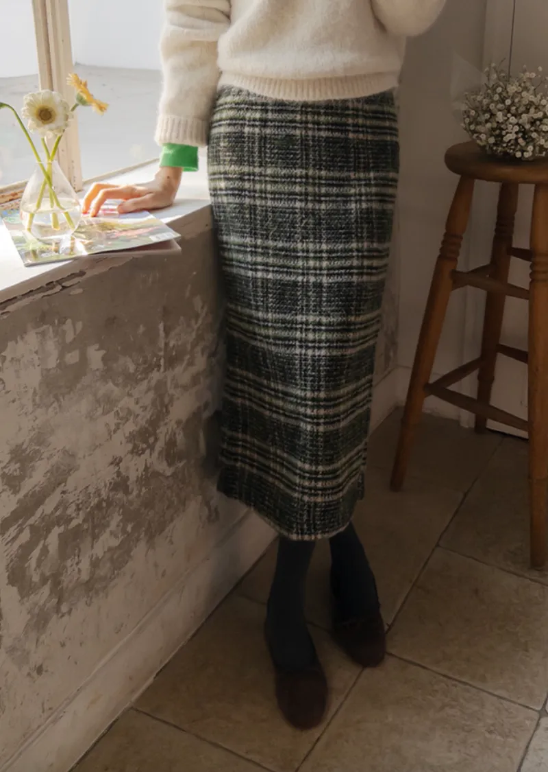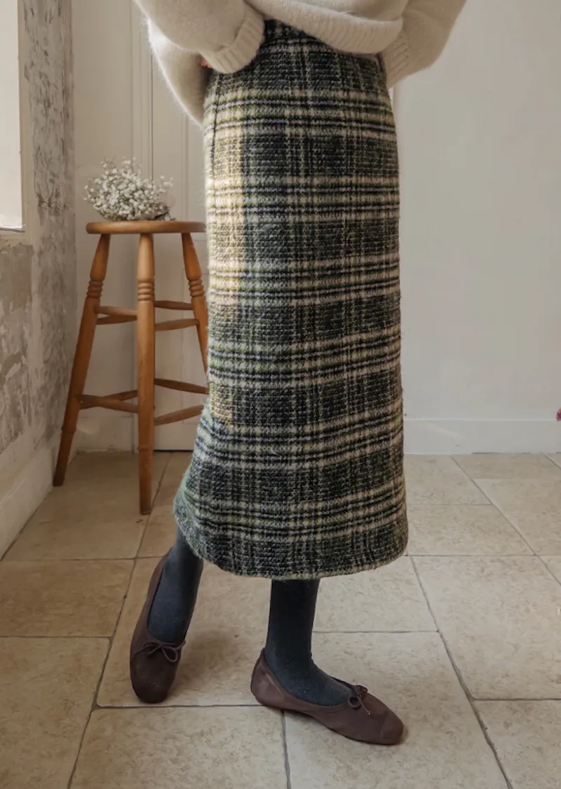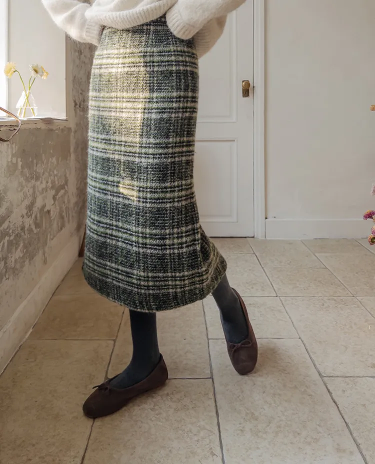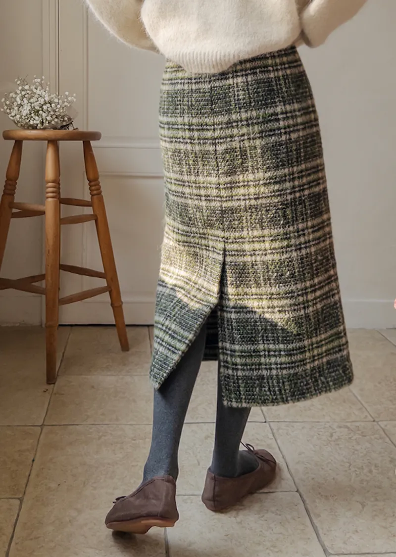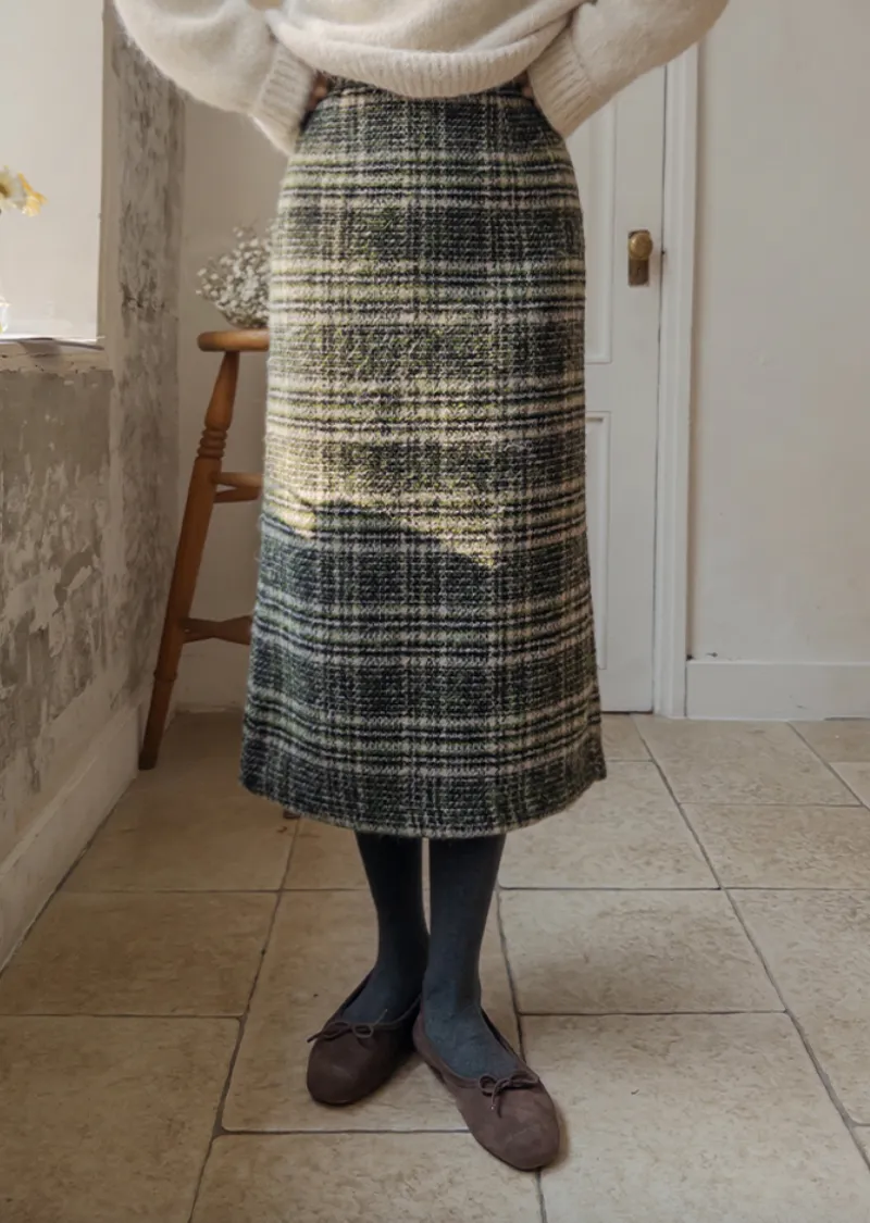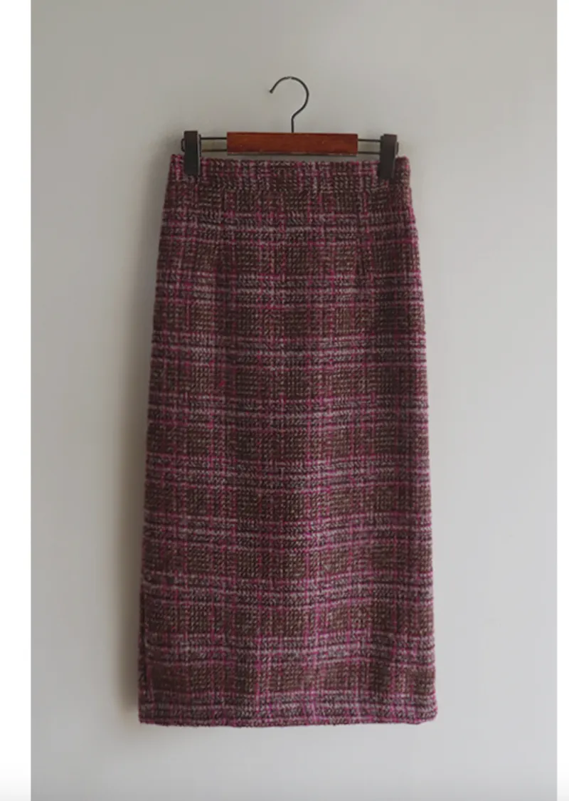 【含有20%羊毛的厚重裙子,冬天也能穿】【經典格紋,打造時尚穿搭! 】【H線條顯瘦,增加收藏價值~】 [腰帶和後開衩增加了靈活性]