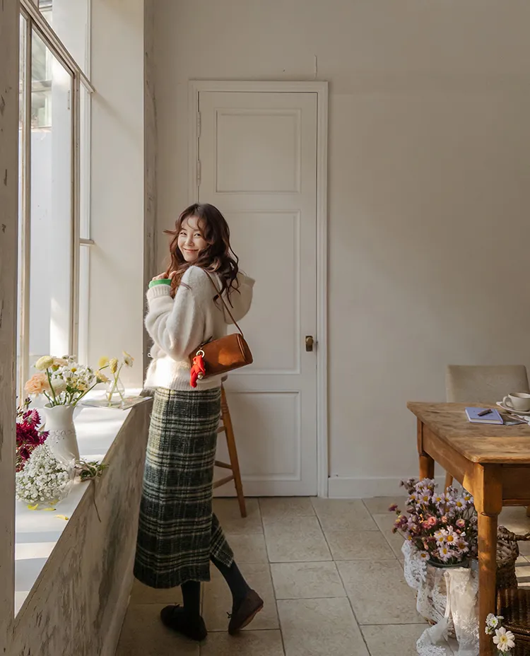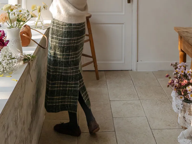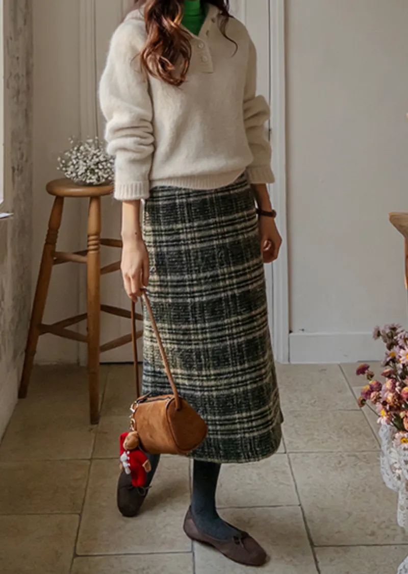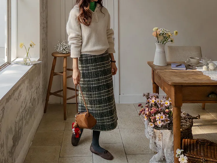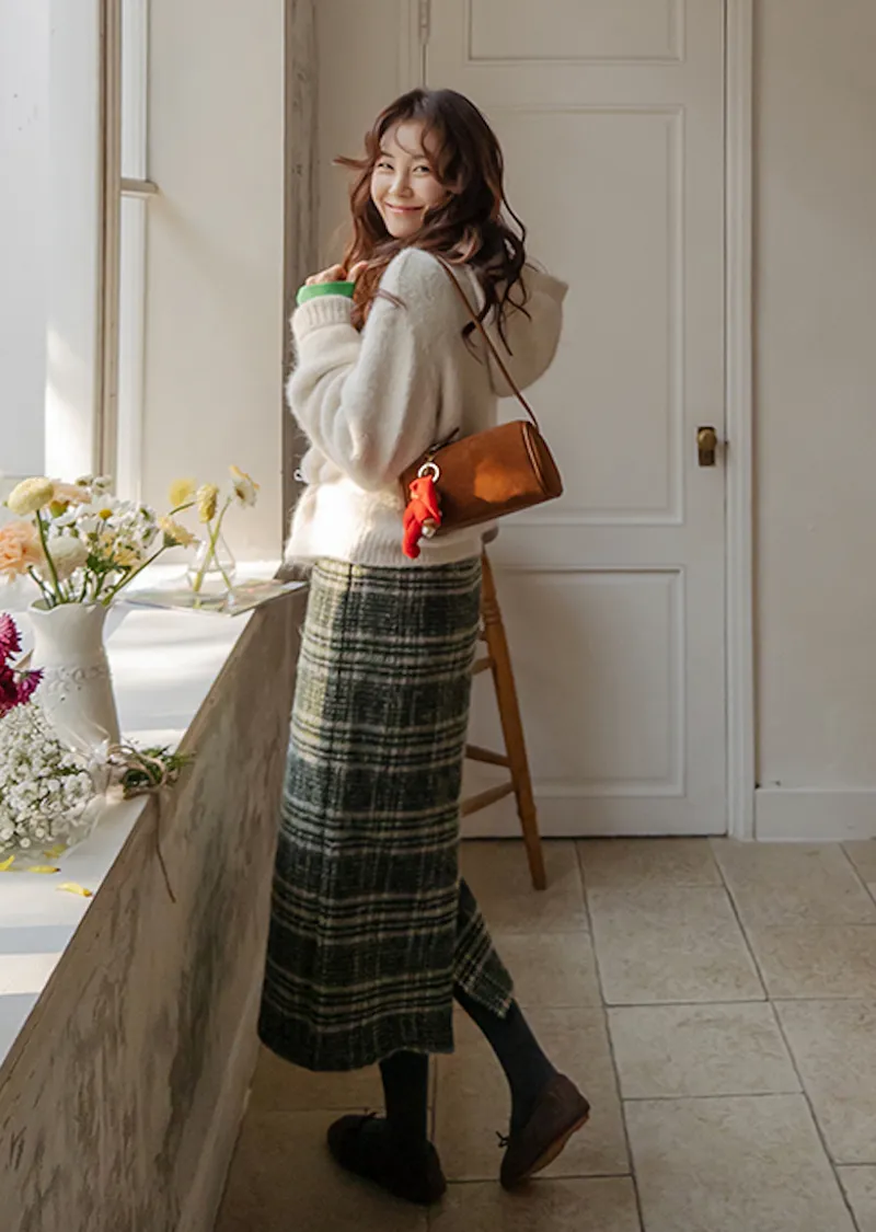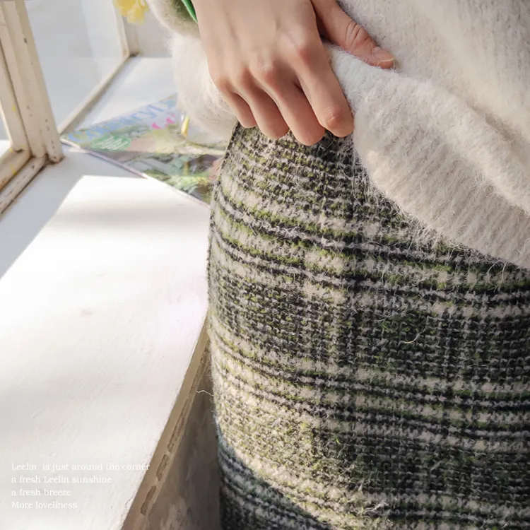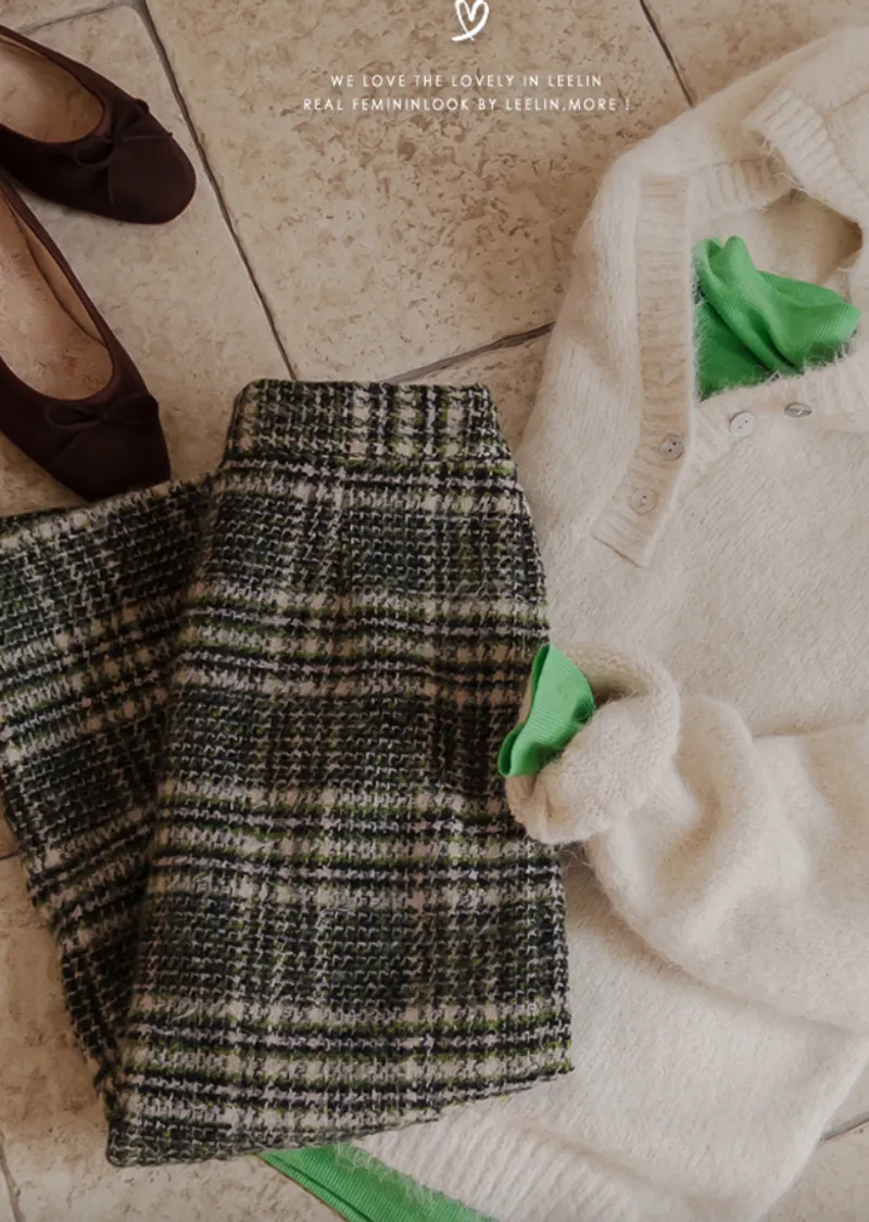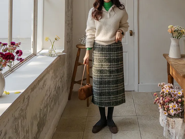 【含有20%羊毛的厚重裙子,冬天也能穿】【經典格紋,打造時尚穿搭! 】【H線條顯瘦,增加收藏價值~】 [腰帶和後開衩增加了靈活性]