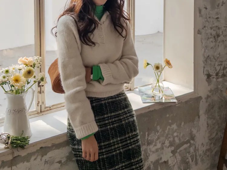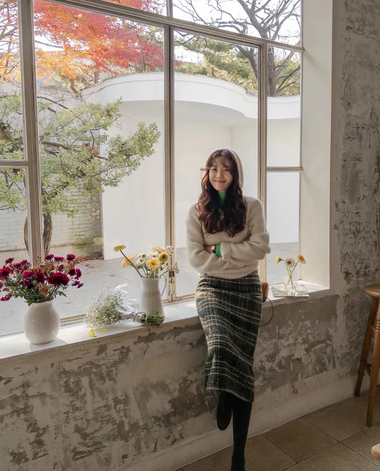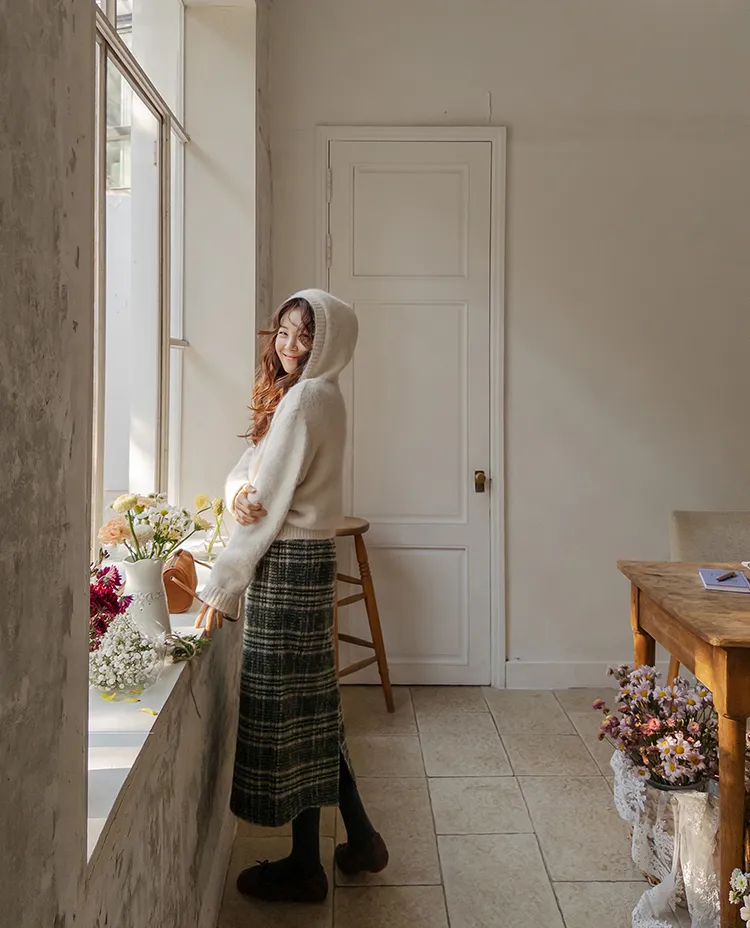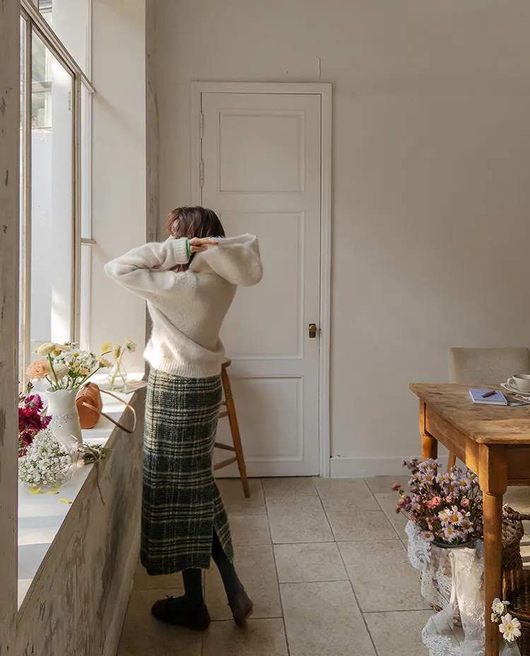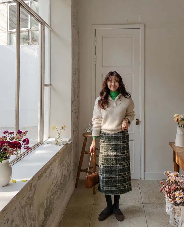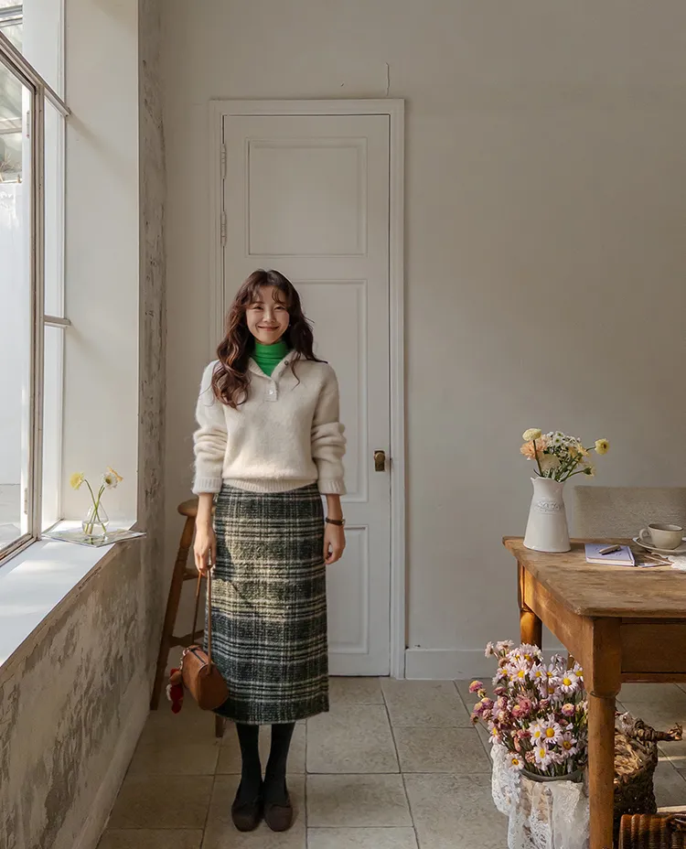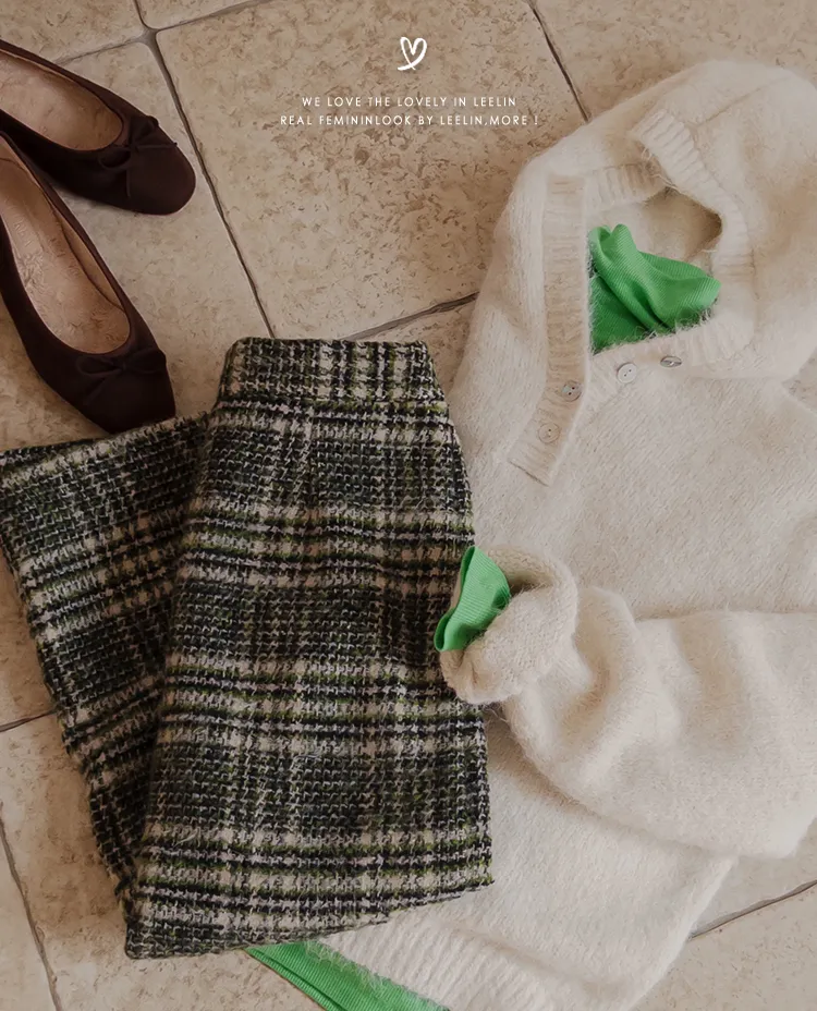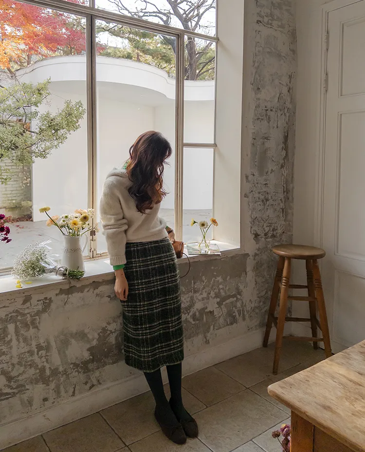 【含有20%羊毛的厚重裙子,冬天也能穿】【經典格紋,打造時尚穿搭! 】【H線條顯瘦,增加收藏價值~】 [腰帶和後開衩增加了靈活性]
