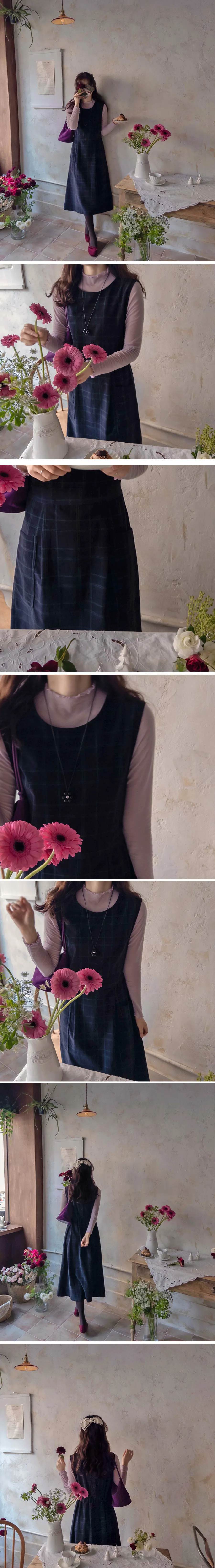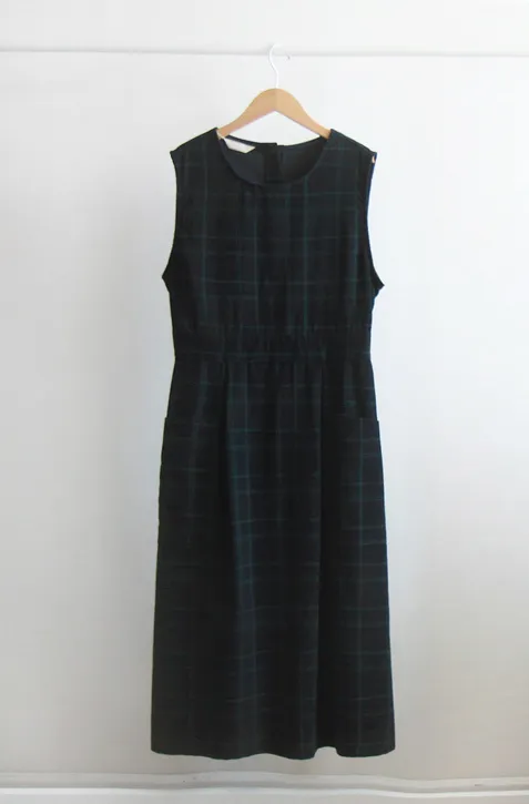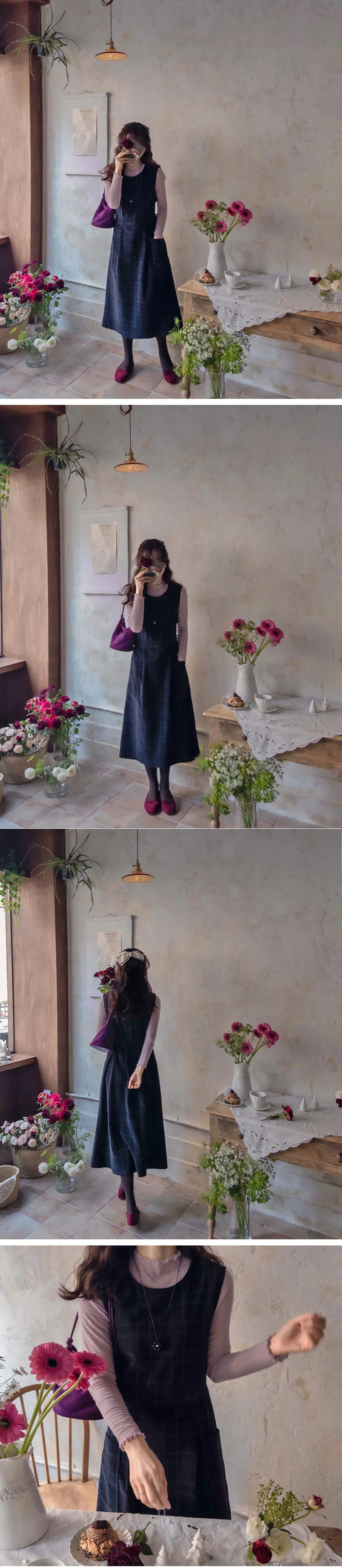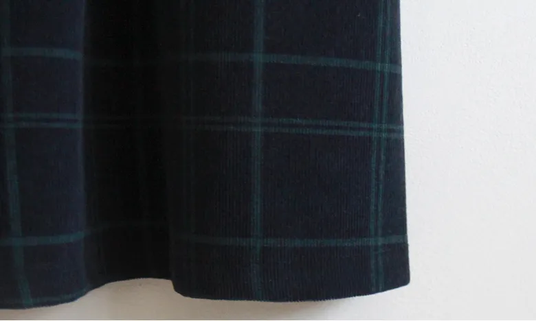 [後背扣環可開閉] [腰部後部:束帶處理] [採用針褶設計,打造時尚線條] [採用柔軟的燈芯絨面料,精緻的設計,微妙而純粹的格紋圖案] [優雅合身,推薦作為燈芯絨季節連身裙]