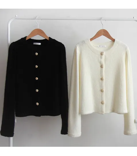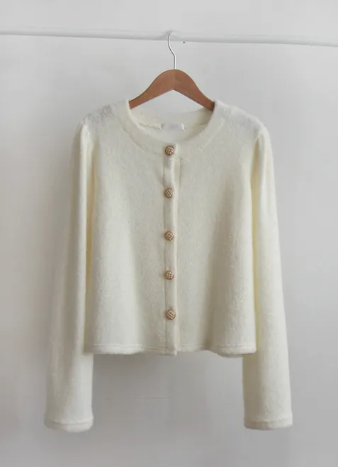 柔和色彩精緻鈕扣柔軟開衫