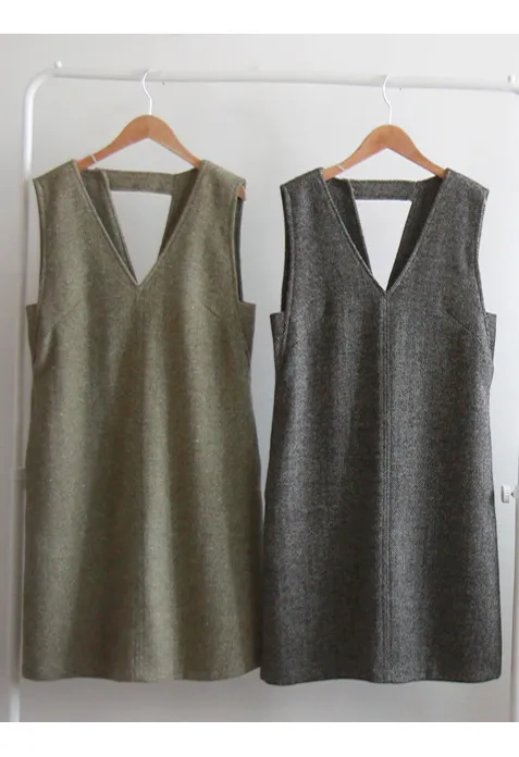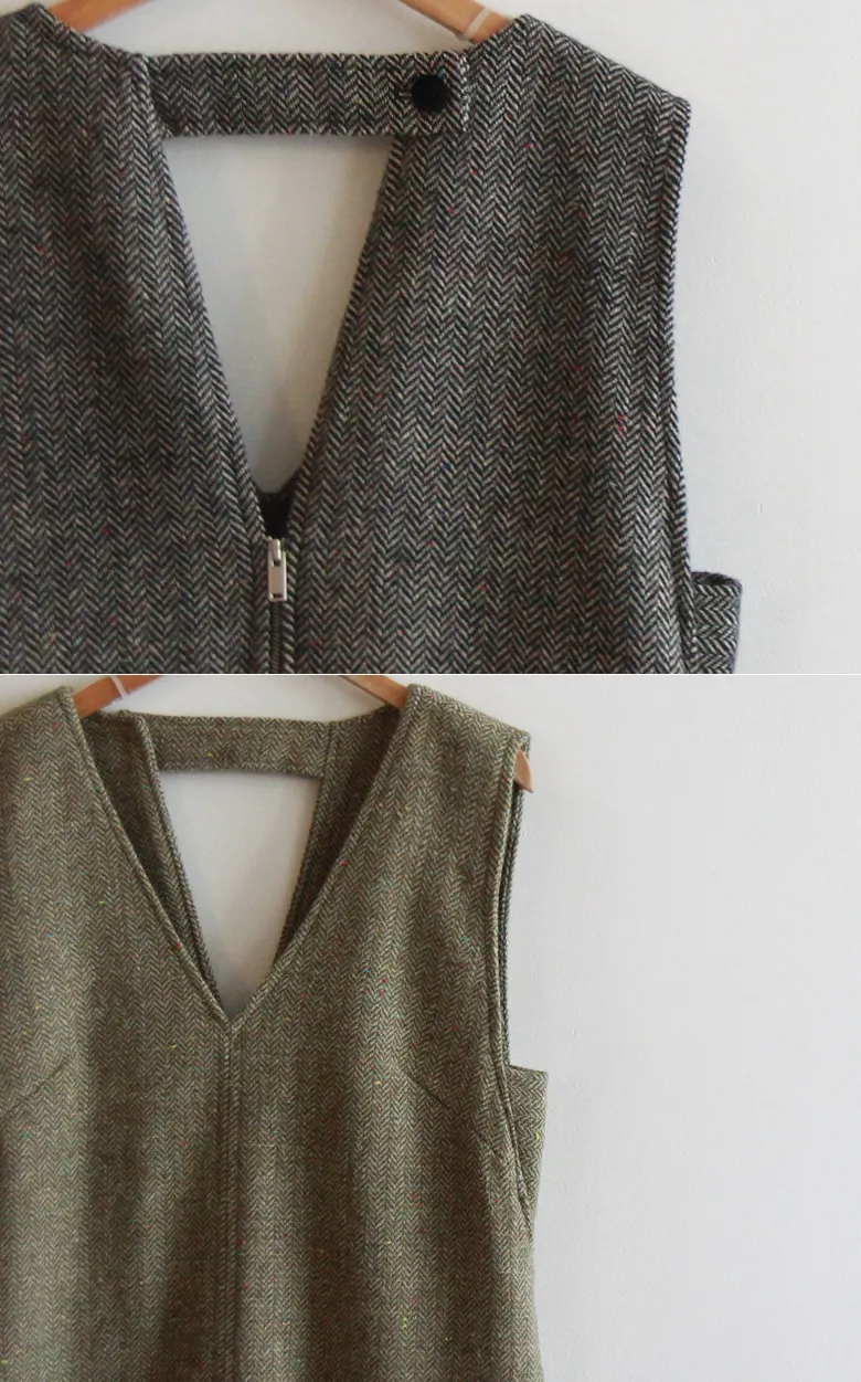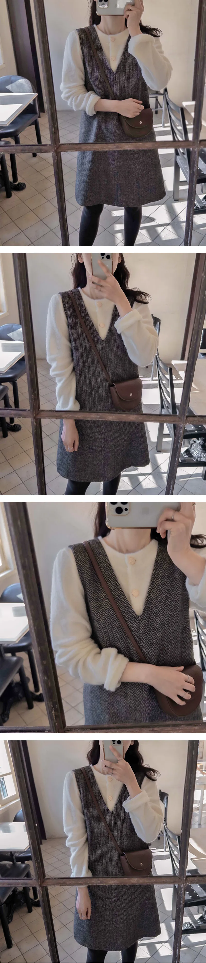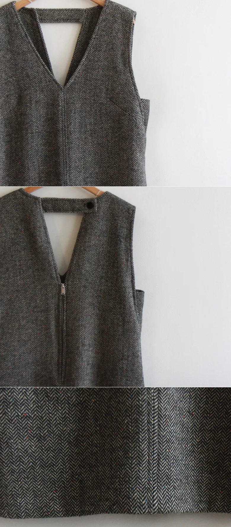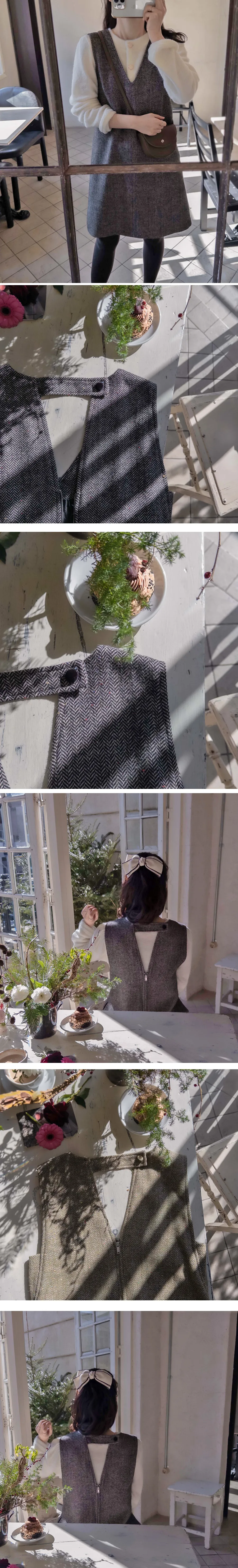[聚酯纖維襯裡][背面拉鍊結構][可愛柔軟的貼合][具有拉絨質感的奢華人字紋面料][優雅可愛的貼合長度][一件具有精緻心情的單品人字紋布料】【背面的鈕扣連結也很可愛】