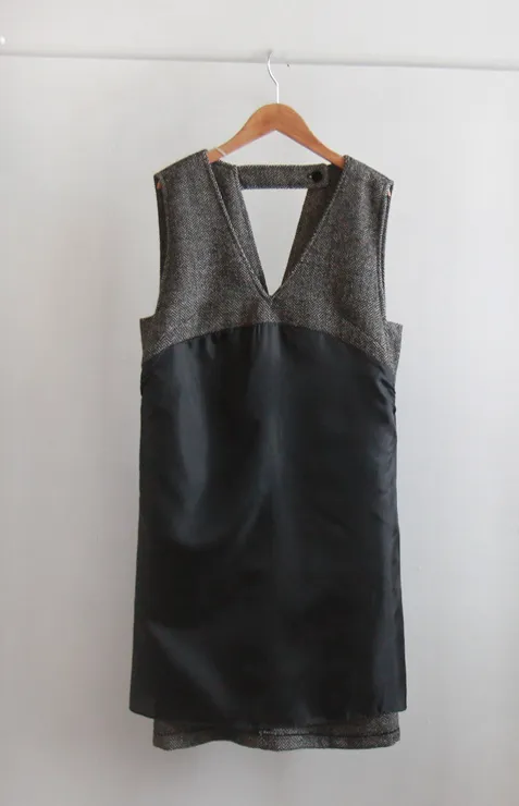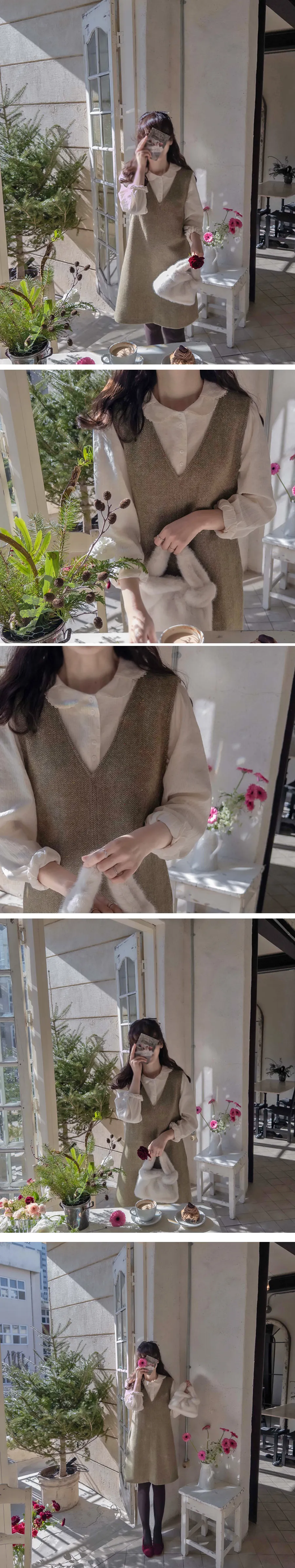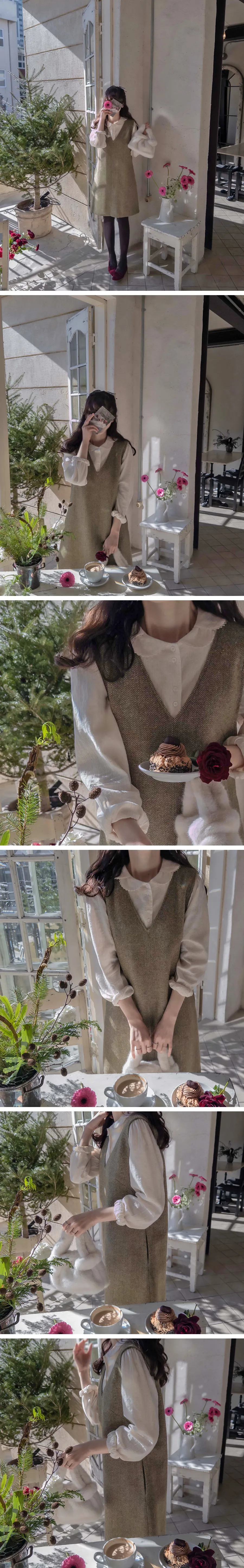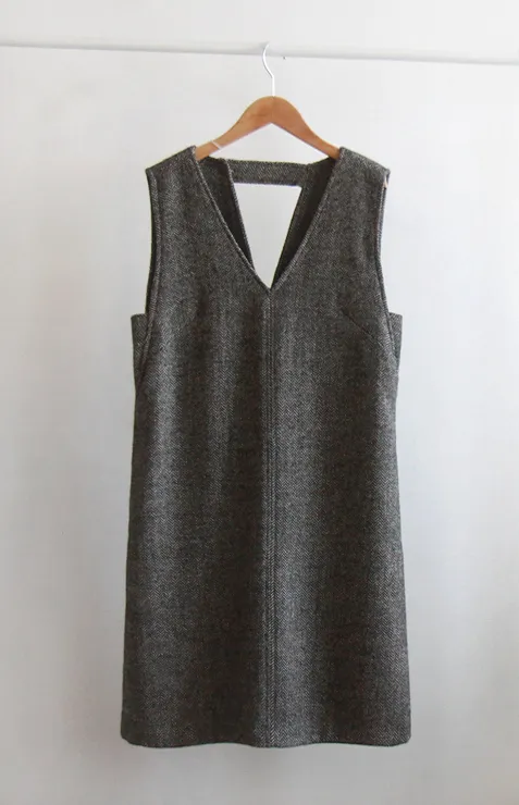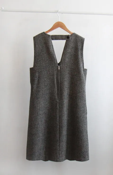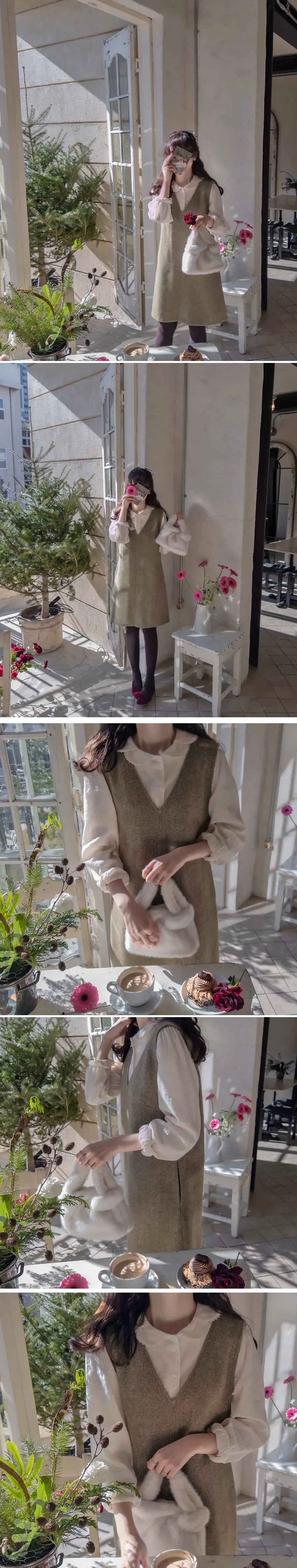 [聚酯纖維襯裡][背面拉鍊結構][可愛柔軟的貼合][具有拉絨質感的奢華人字紋面料][優雅可愛的貼合長度][一件具有精緻心情的單品人字紋布料】【背面的鈕扣連結也很可愛】