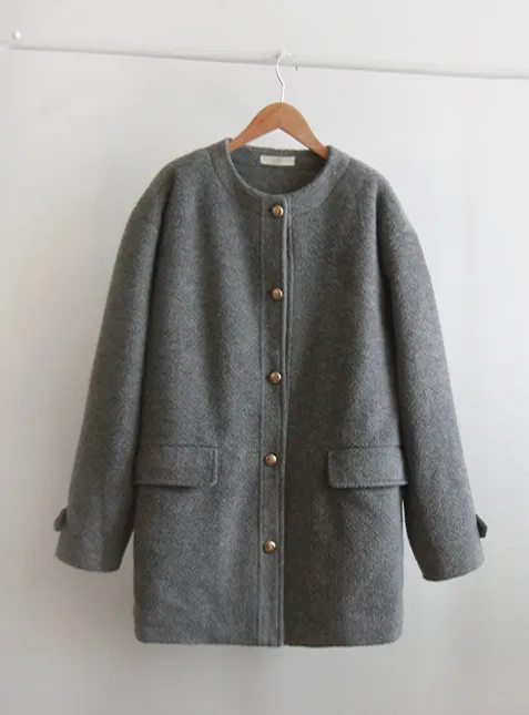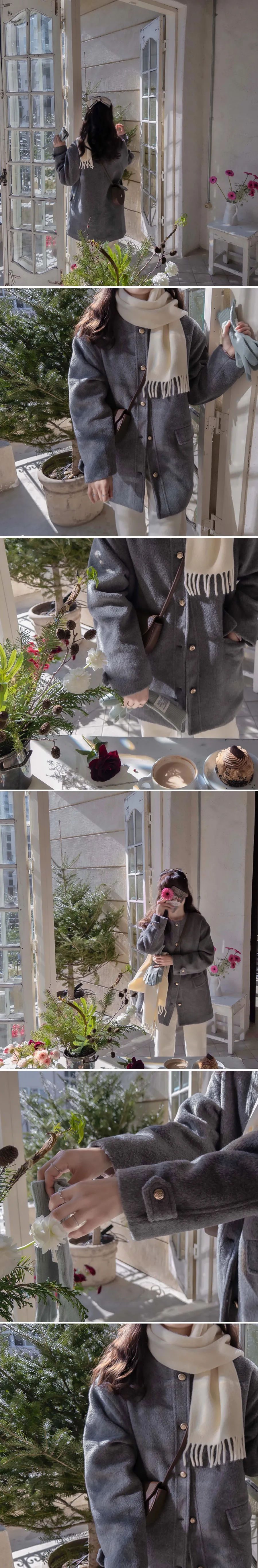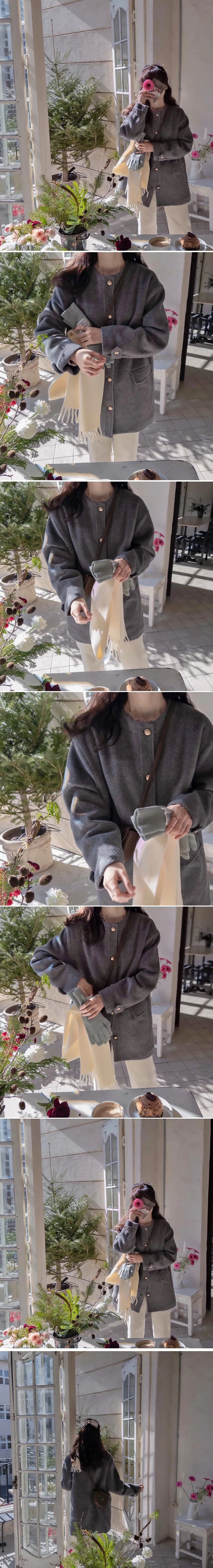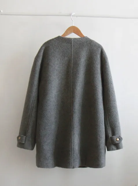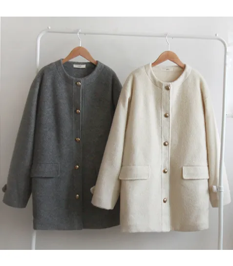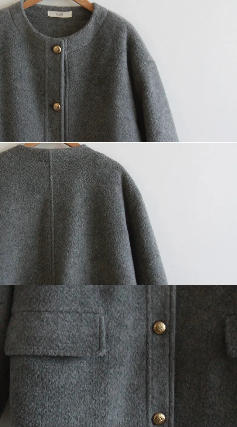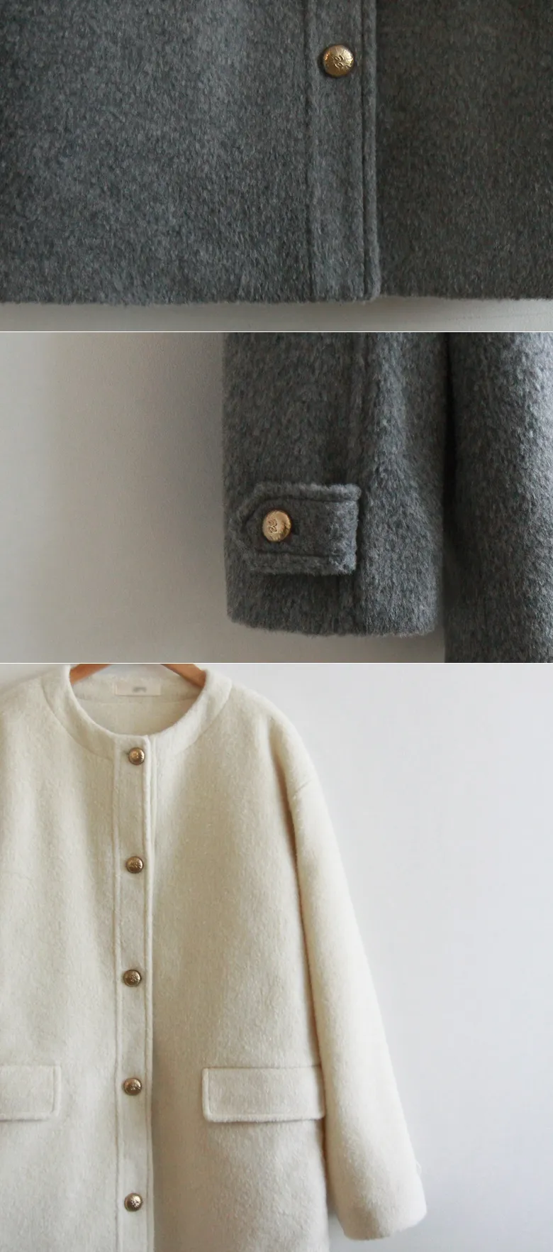 精緻氛圍內襯絎縫金釦保暖羊毛外套