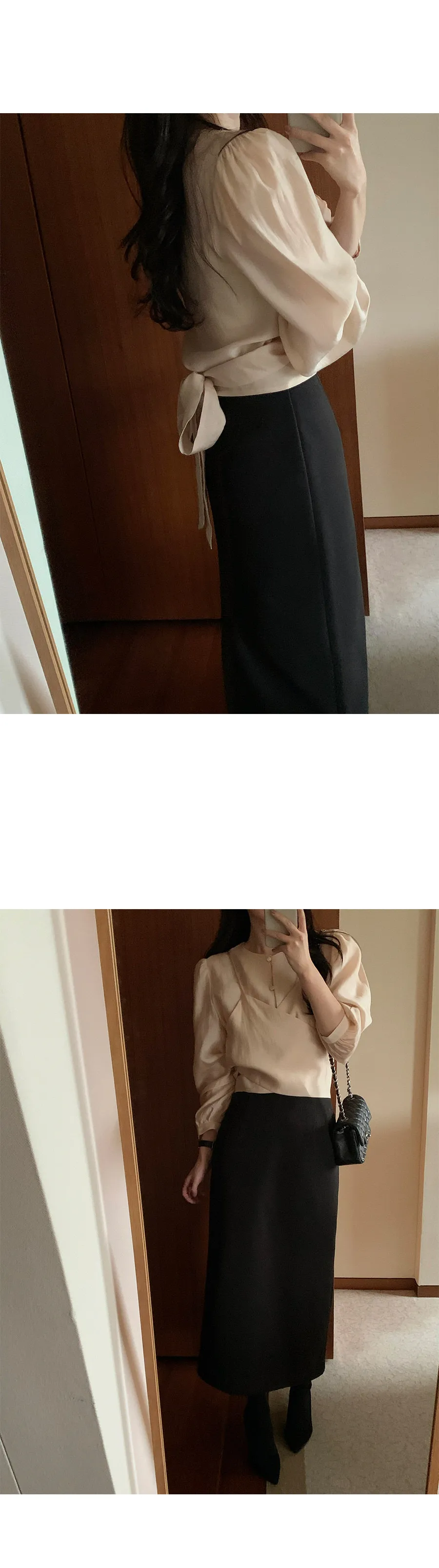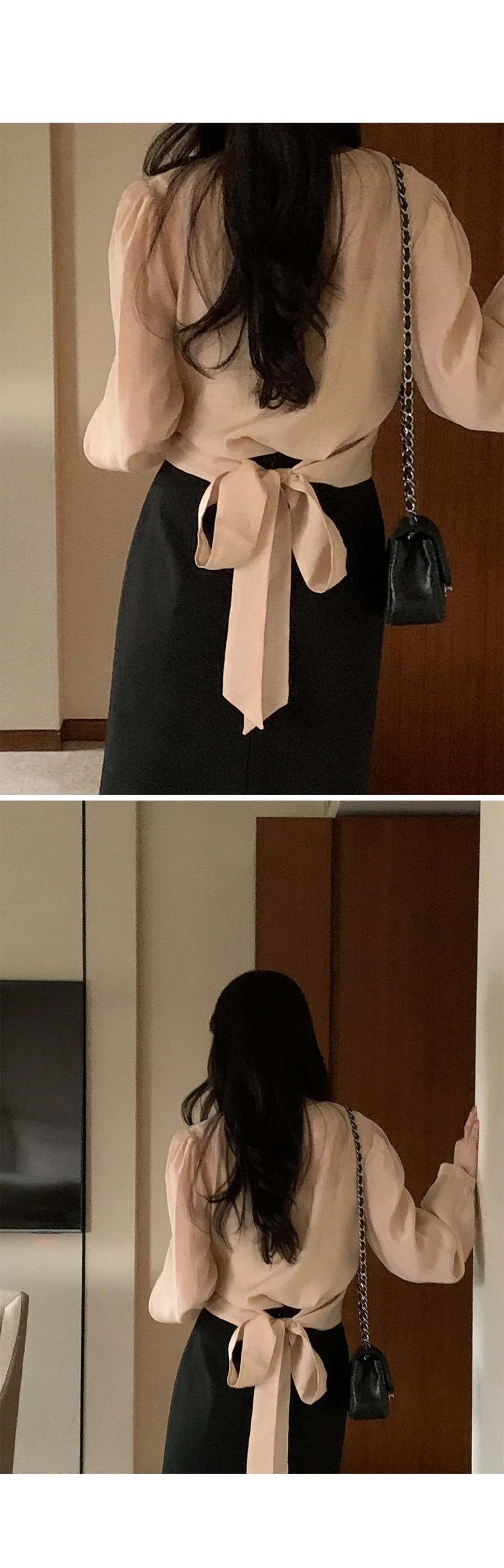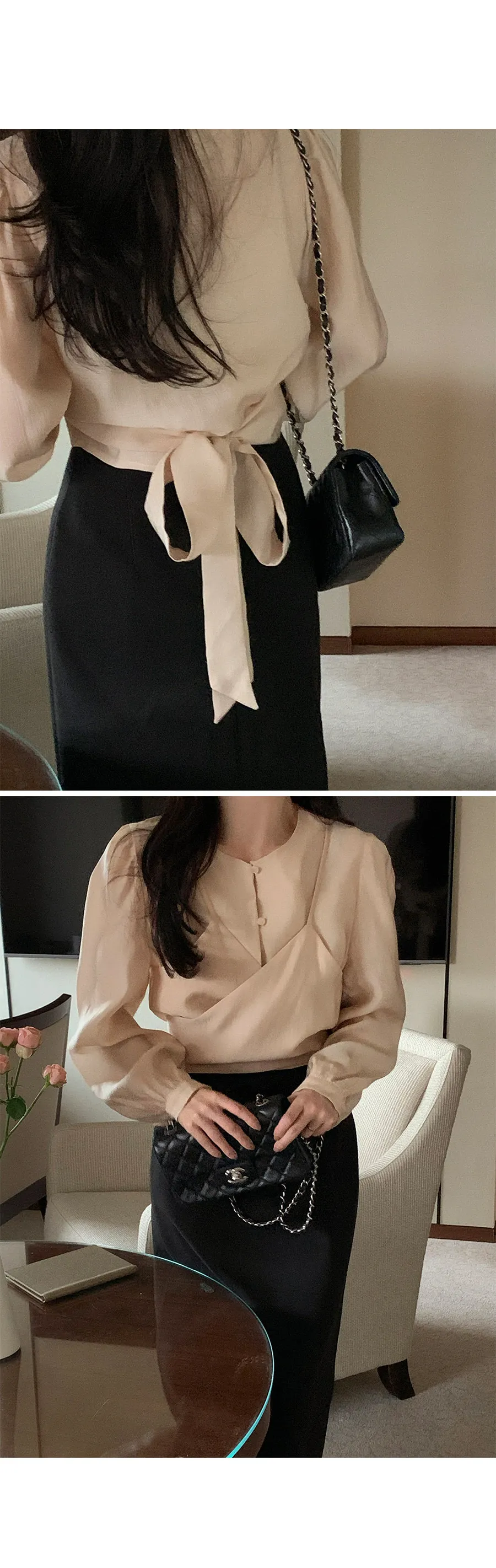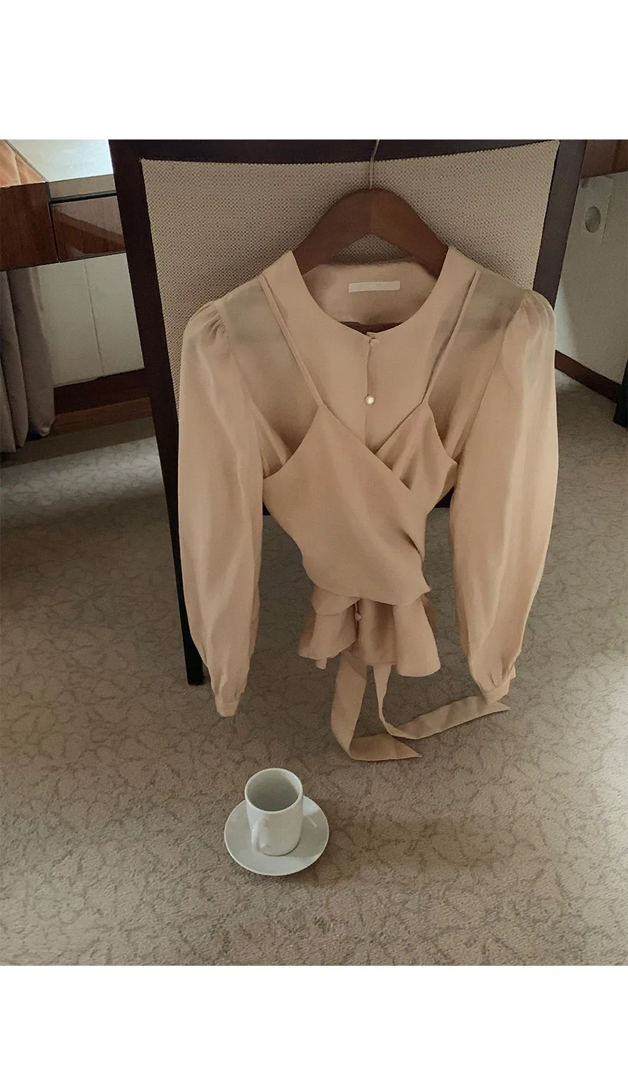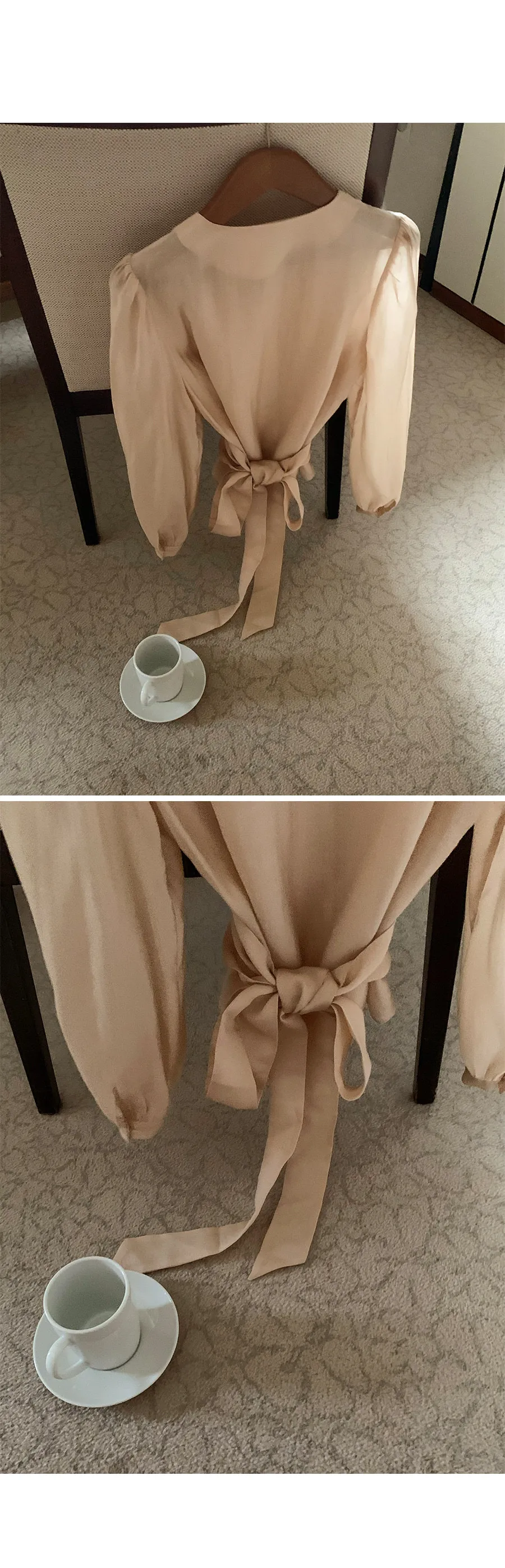 柔美層次感長綁帶絲質排扣上衣