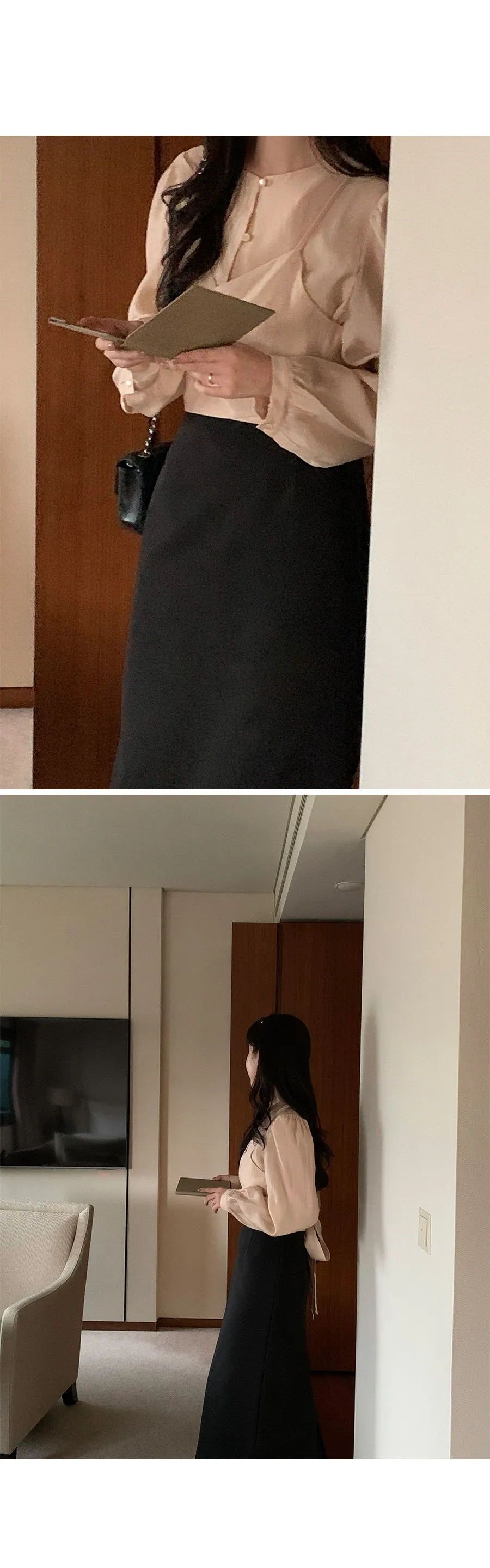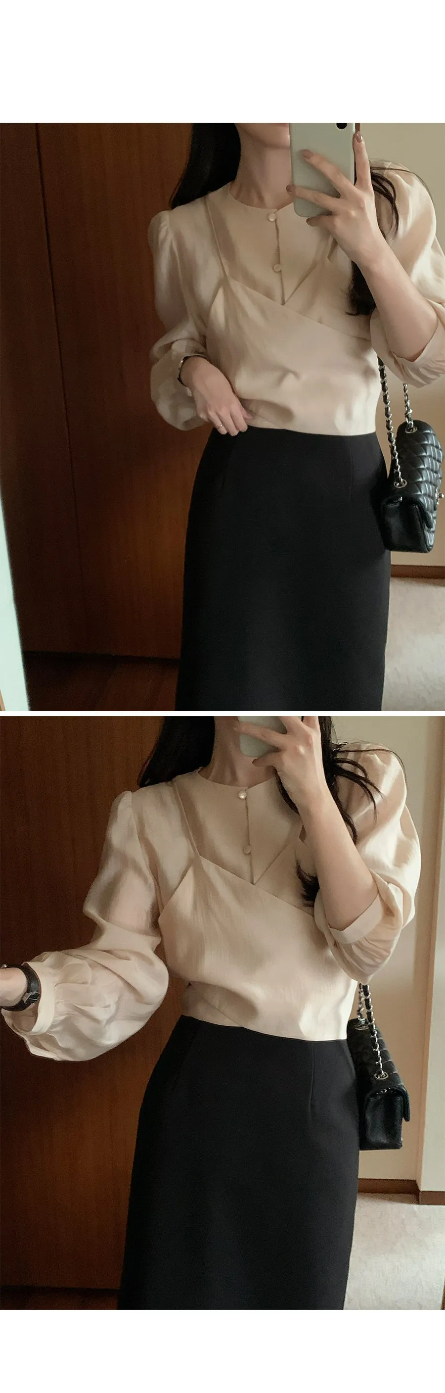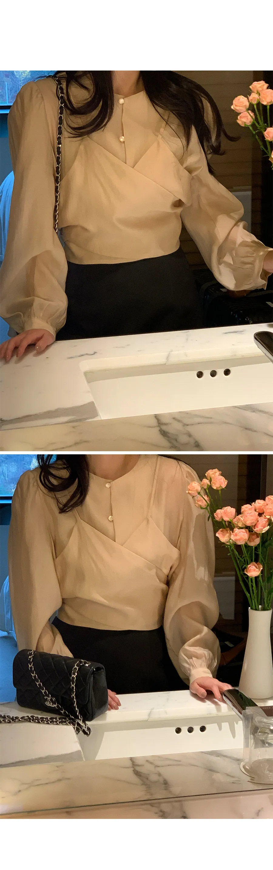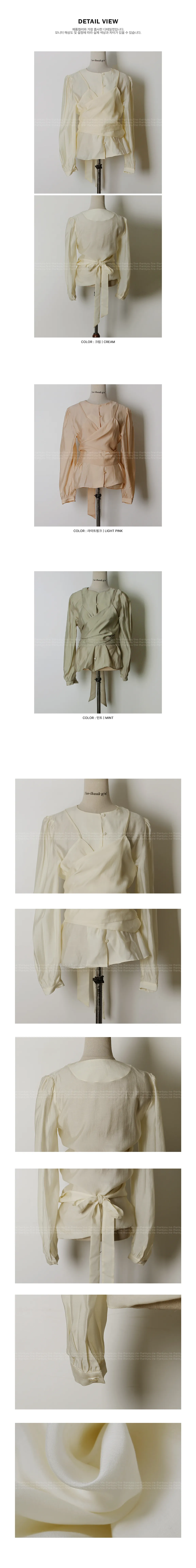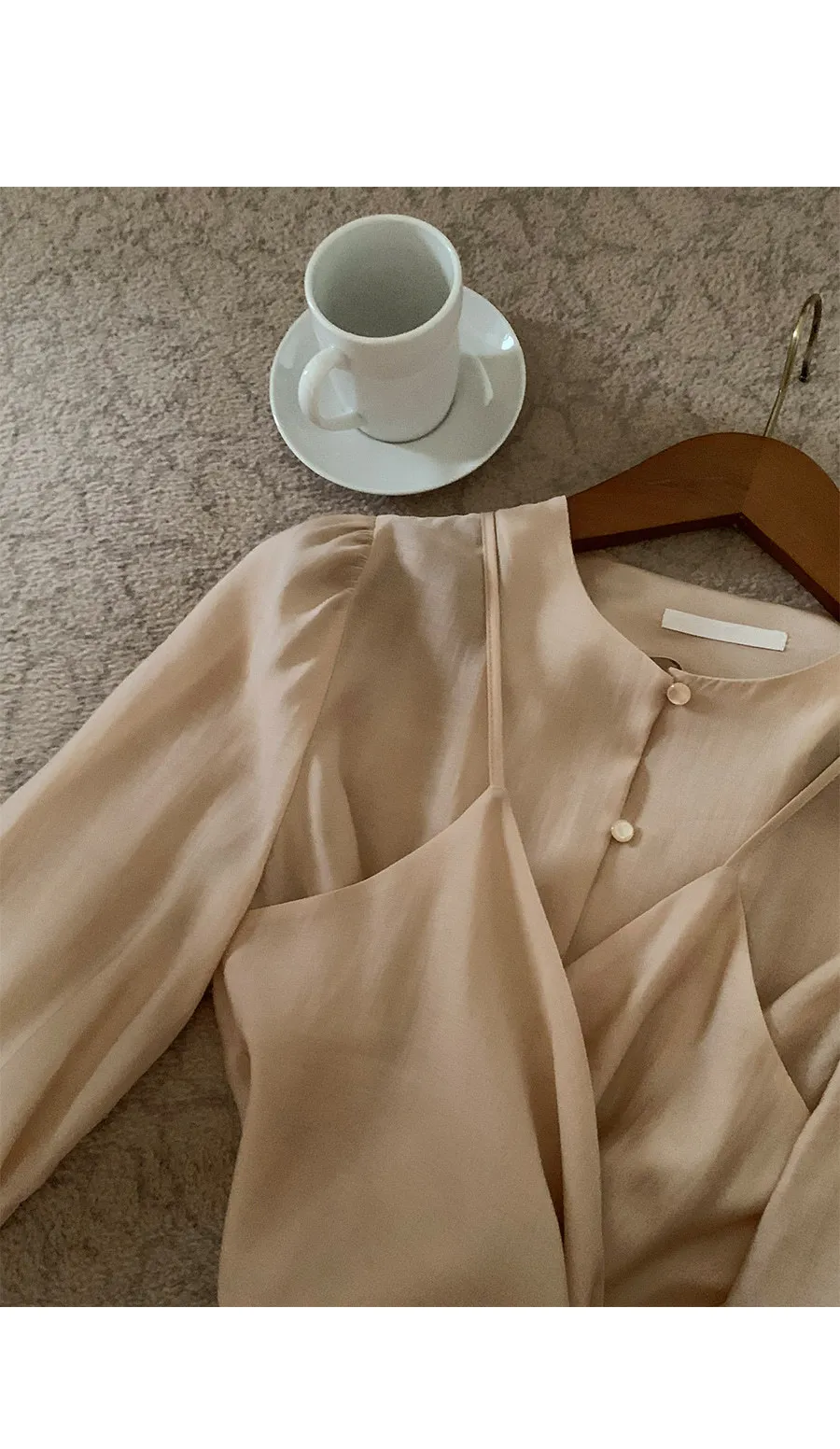 柔美層次感長綁帶絲質排扣上衣