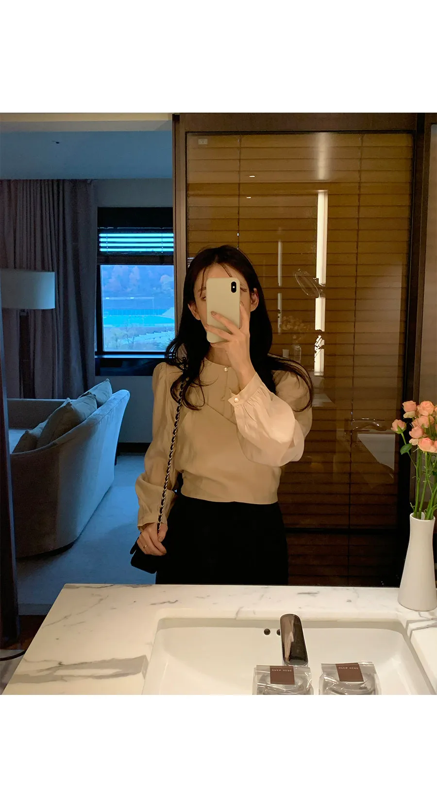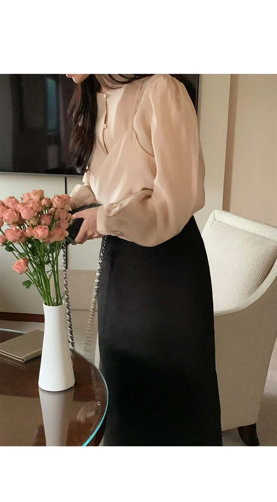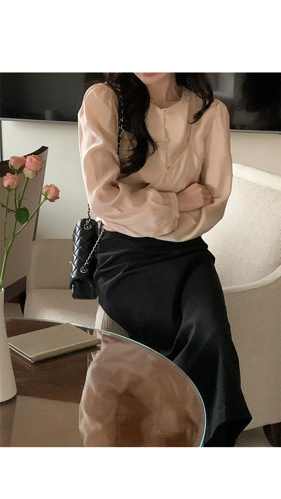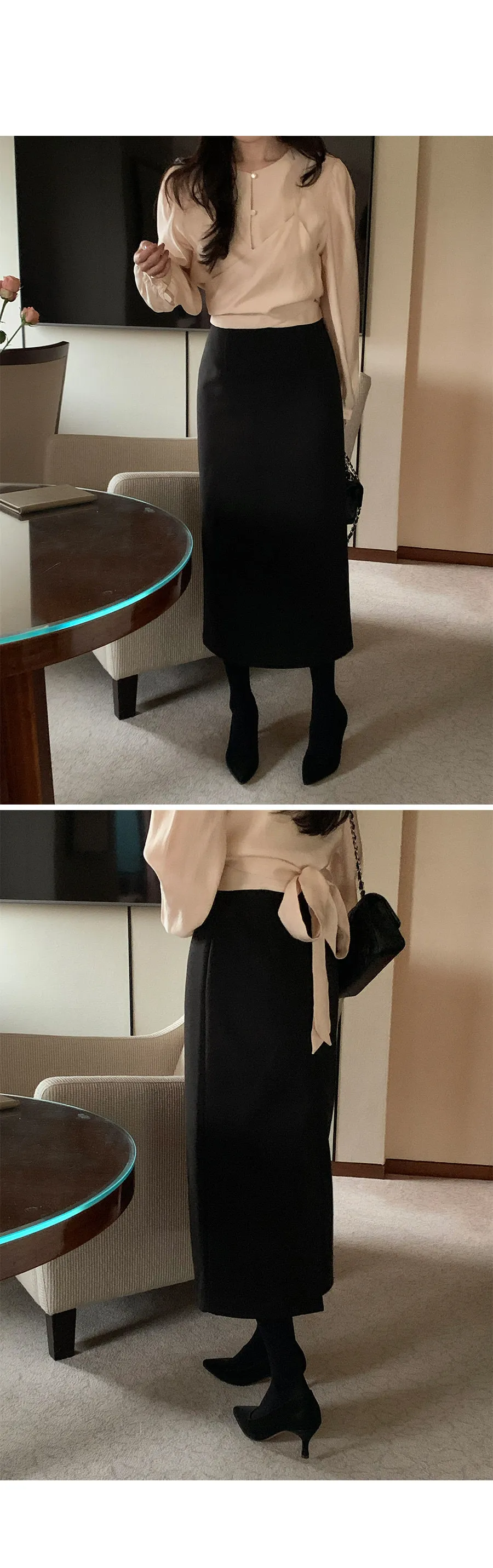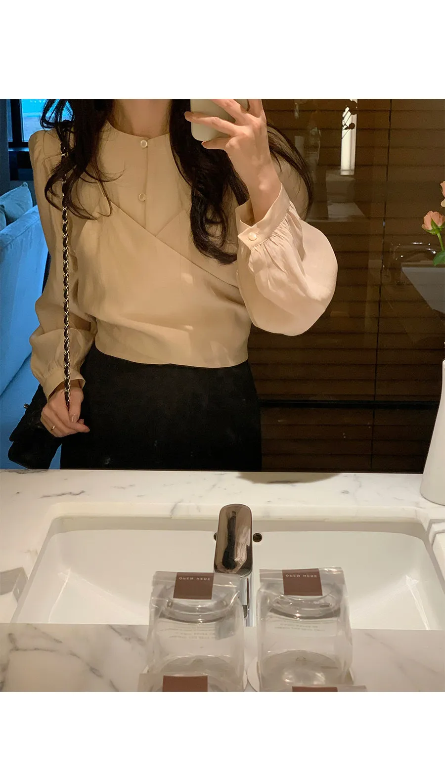 柔美層次感長綁帶絲質排扣上衣