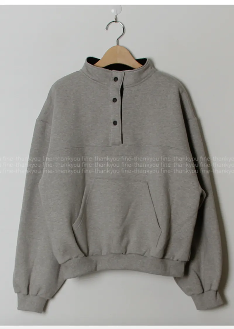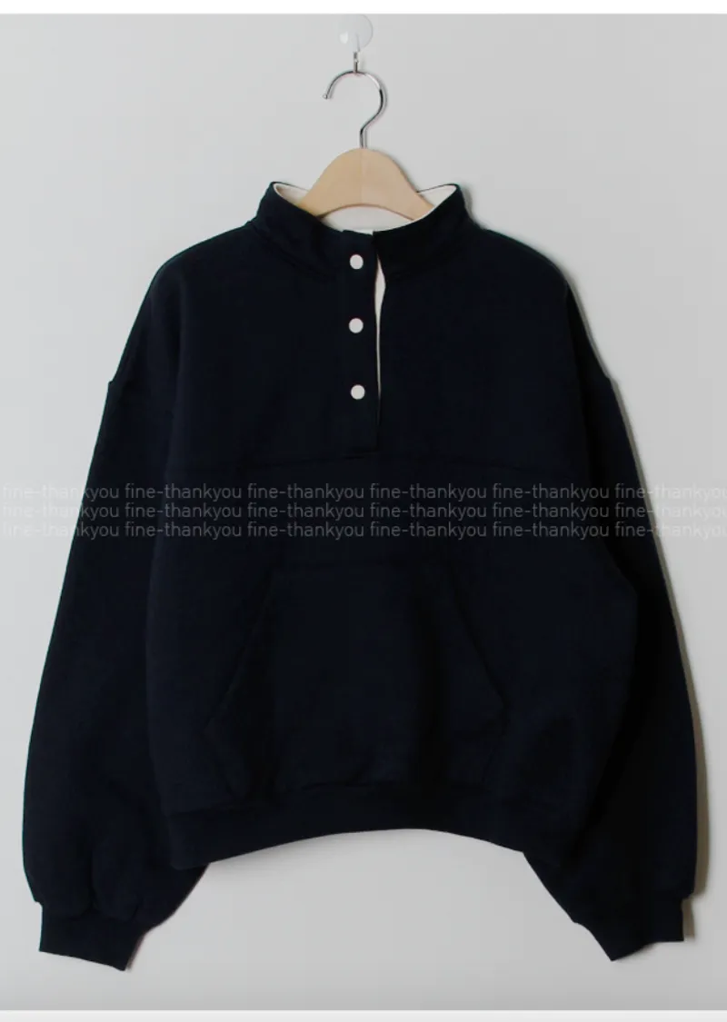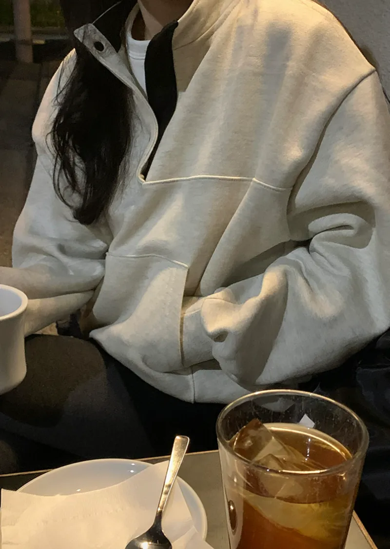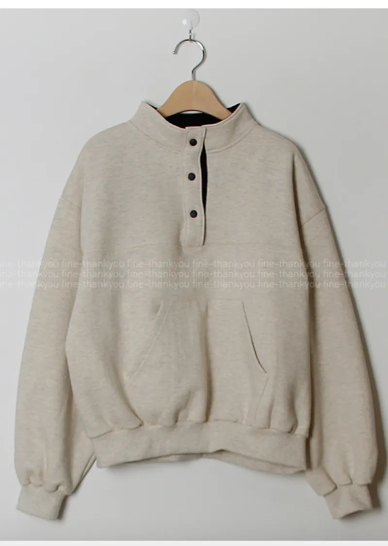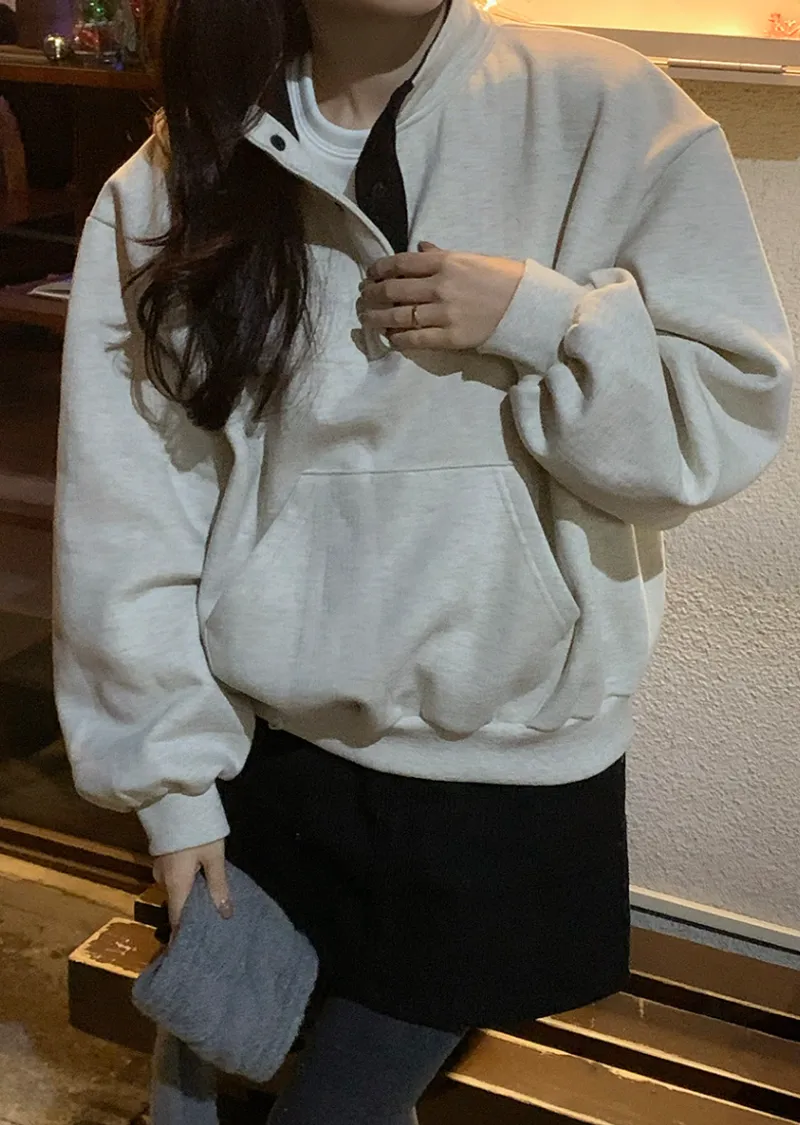 配色襯領口排扣高領刷毛休閒上衣