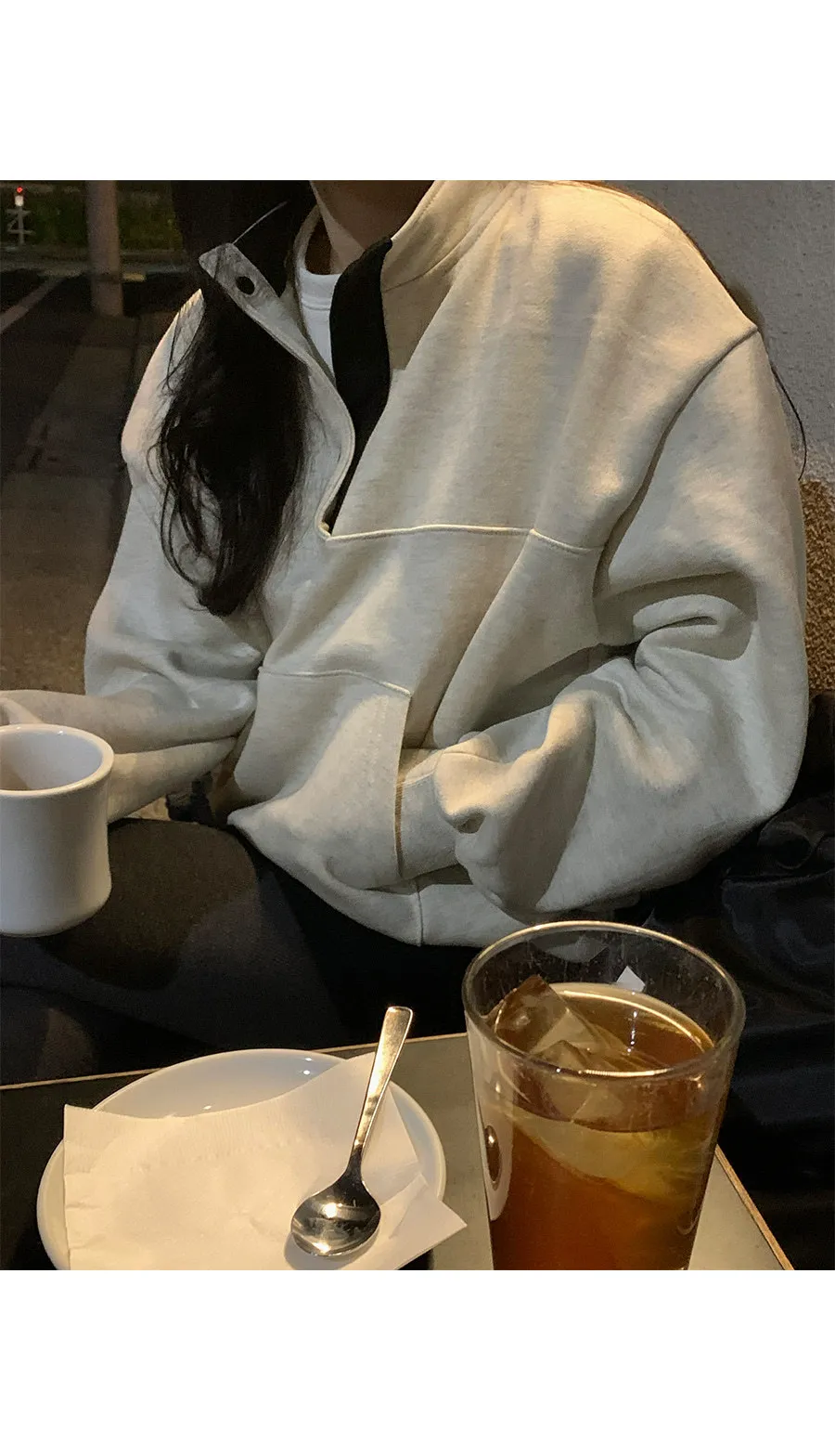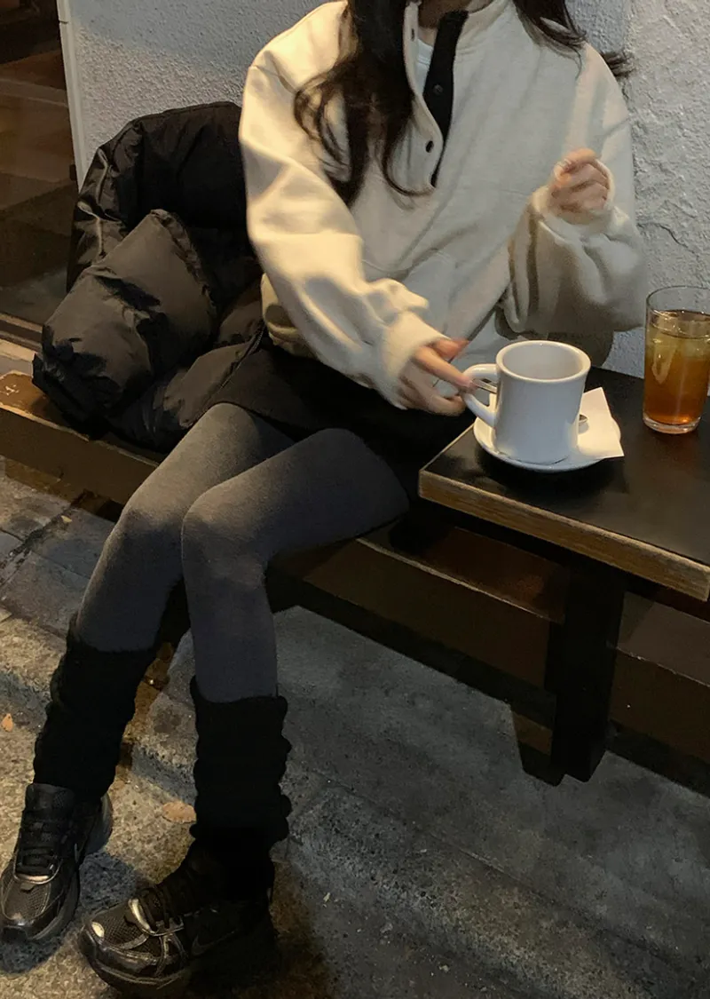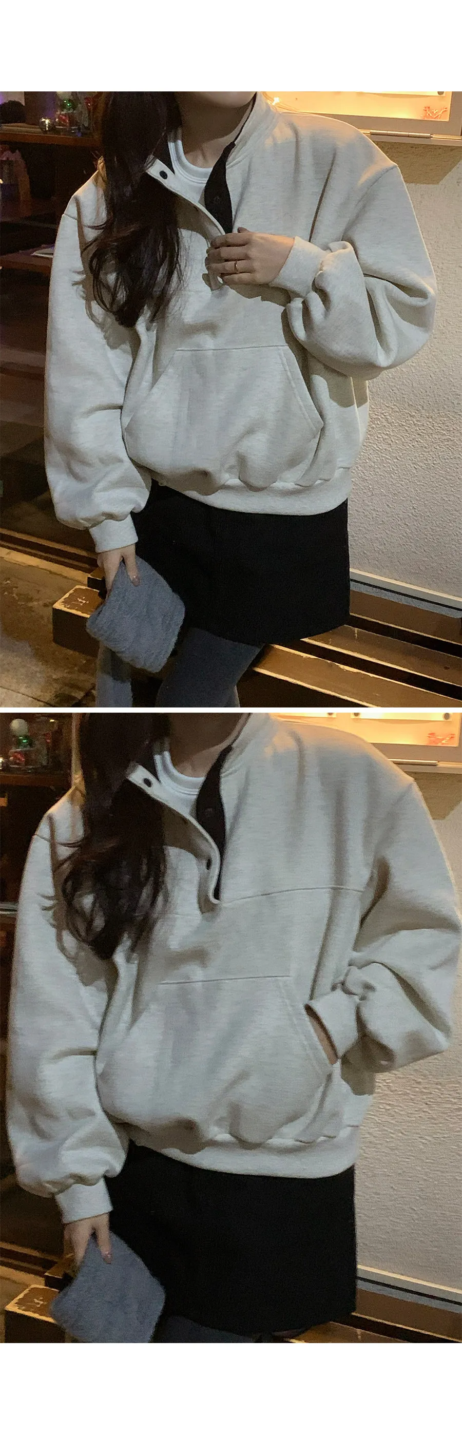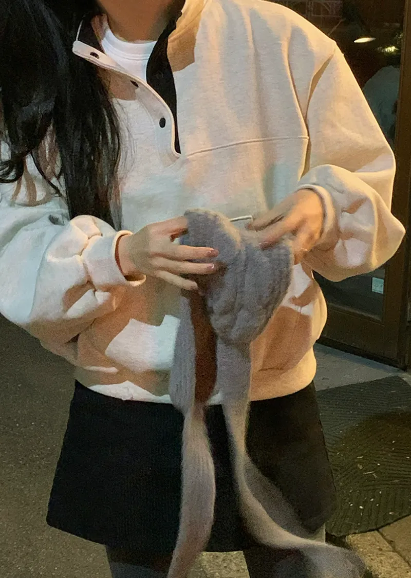 配色襯領口排扣高領刷毛休閒上衣