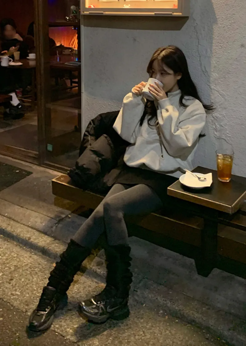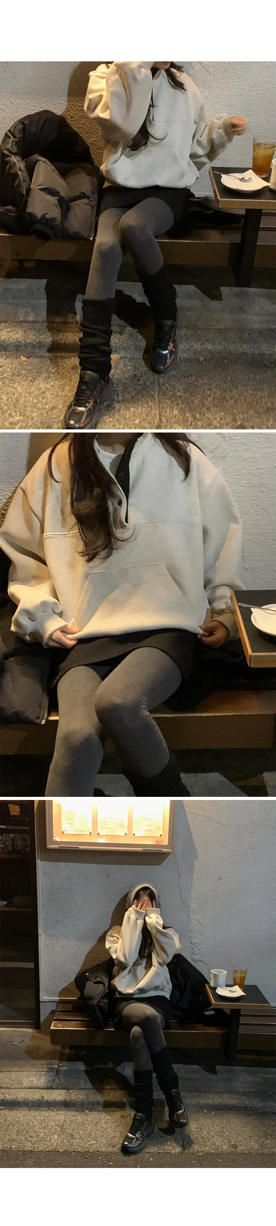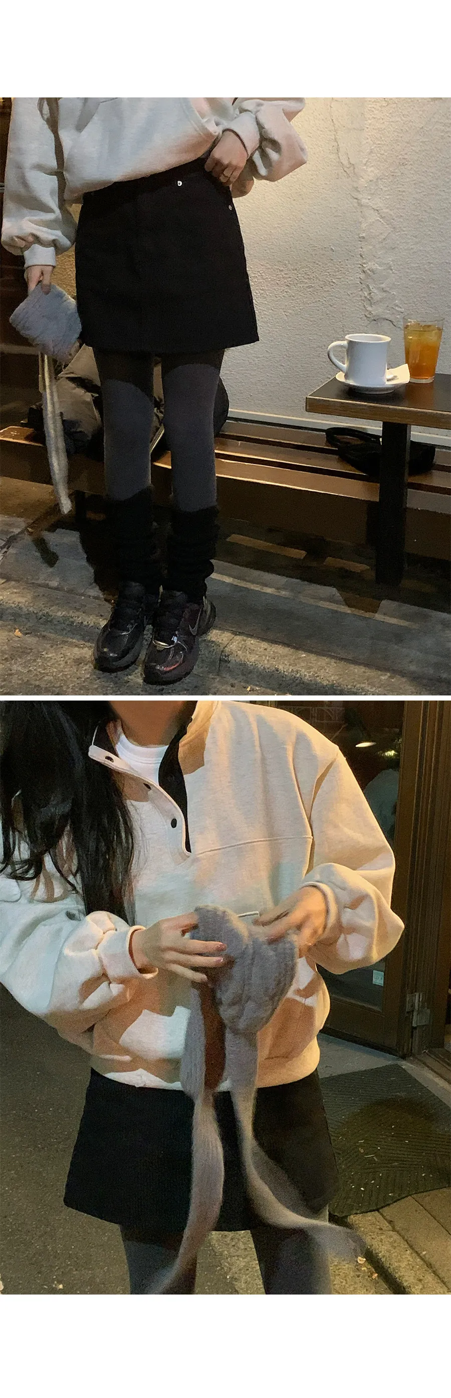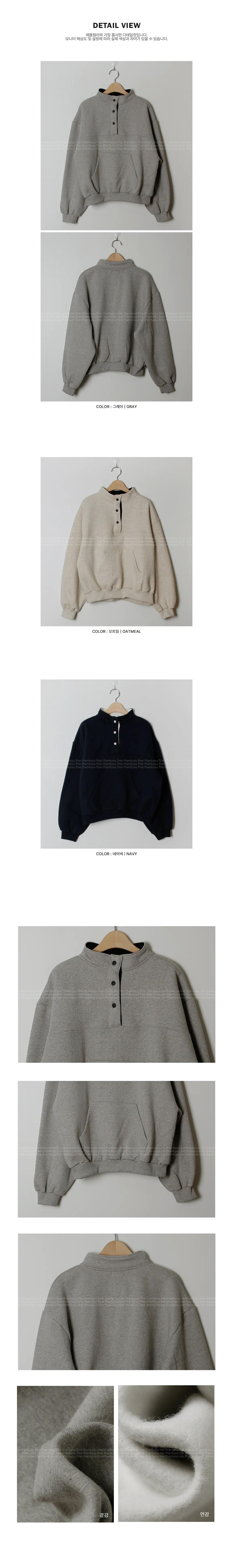 配色襯領口排扣高領刷毛休閒上衣